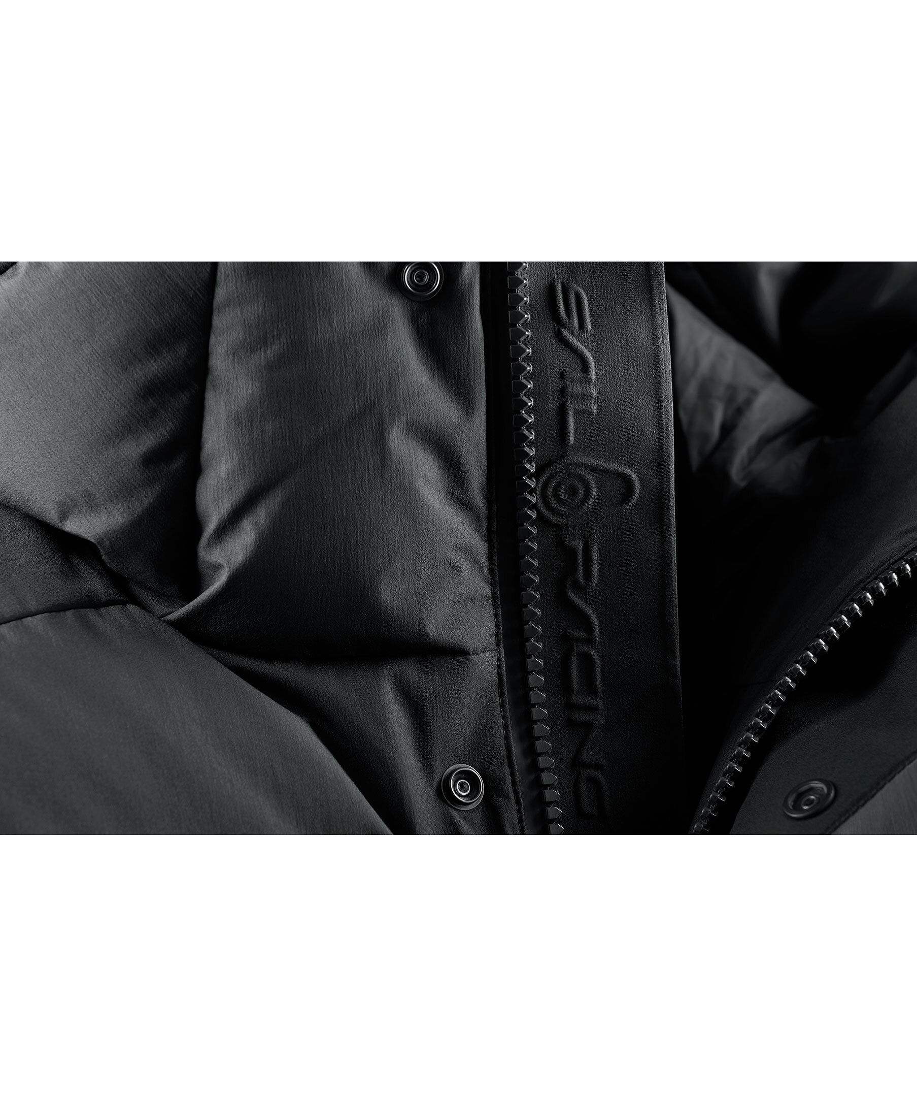 Svart dunjacka från Sail Racing. Gjord med ett vindtät och vattenavvisande yttertyg i nylon. Jackan har stora midjefickor, tre innerfickor och sidopaneler isolerade med Primaloft, vilket bidrar till dess funktionalitet. Lycramuddar vid ärmsluten ger komfort och skydd mot vinden. Logga på toppen av huvan och vid jackans nederkant.