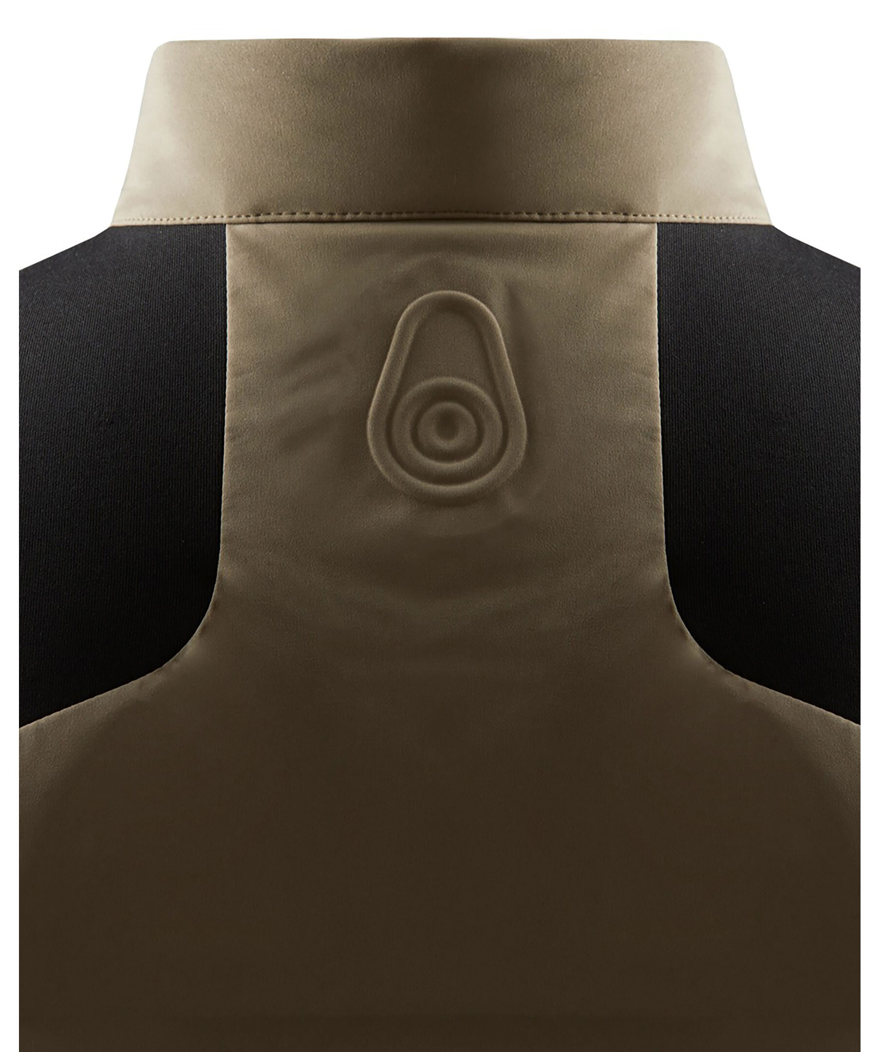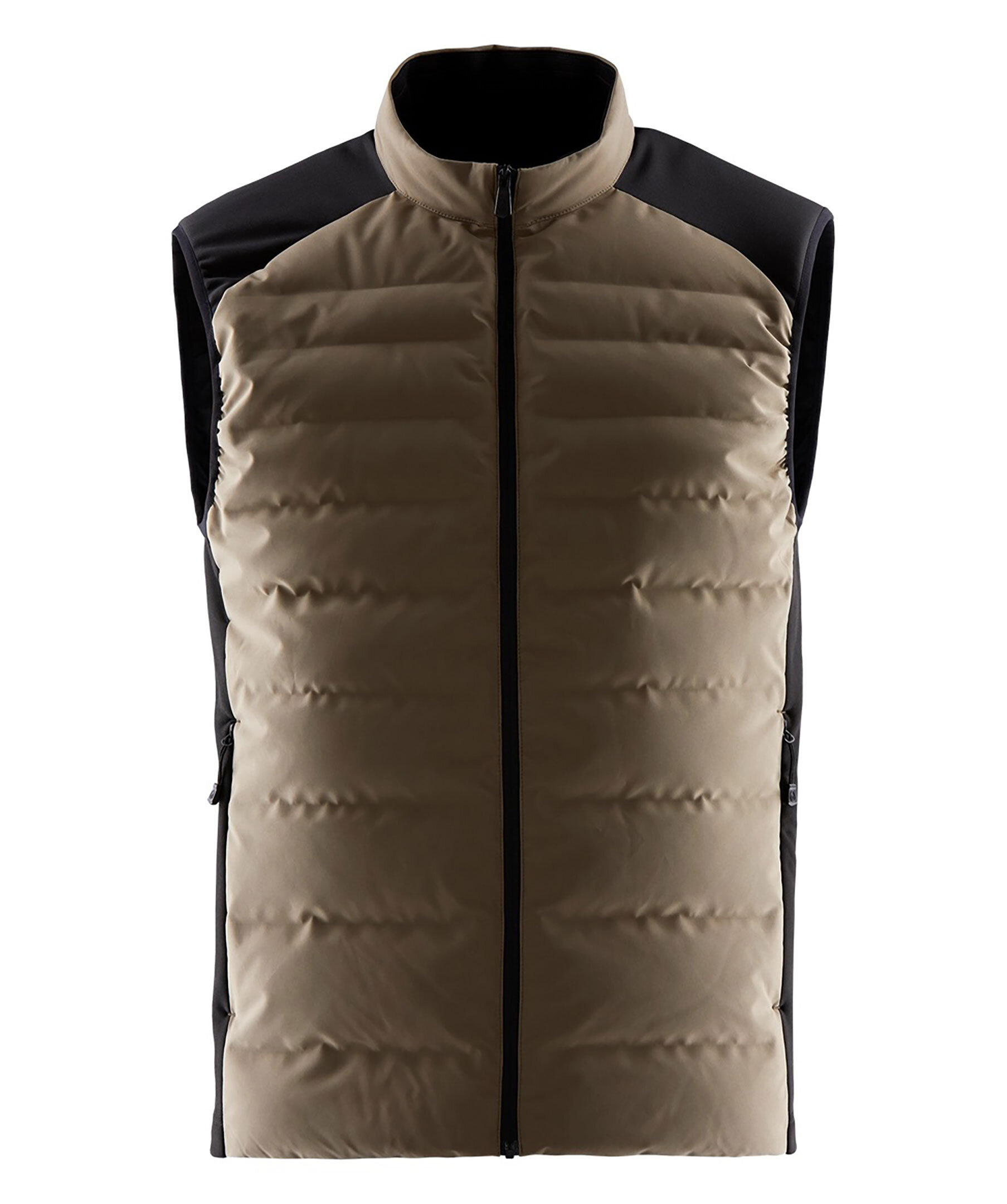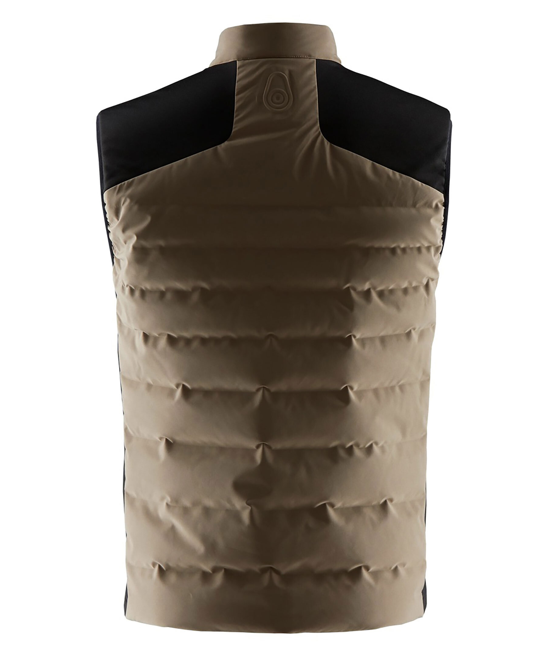 Beige väst tillverkad i ett 2-lagers stretch polyester och spandextyg från Sail Racing. Tyget är vattenavstötande och vindtät med hög andningsförmåga samt är PFC-fri DWR behandlad. Svetsade kanaler fyllda med Blue sign RSD certifierade dun och fjädrar, fillpower: 700. Sidopaneler i power stretch fleecetyg. Handfickor med svarta YKK-dragkedjor och en blocklogga bak i nacken.