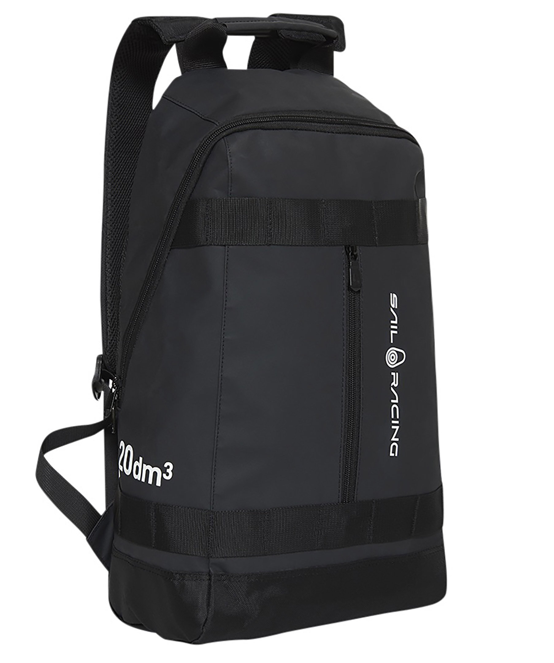 Svart ryggsäck med sportiga detaljer från Sail Racing. Ryggsäck med en storlek på 20L och tillverkad i polyester tarpaulintyg som är ett vattentätt material som skyddar mot lätt fukt. Botten på väskan är förstärkt med nylontyg. Innerficka i meshtyg med YKK dragkedja. Fack och datorfack (13 tum) och justerbara, vadderade och ergonomiskt skurna axelremmar. Vadderad i ryggen för ökad komfort. Huvudfacket har en tvåvägsdragkedja och det finns ett ytterfack med Sail Racing logga. Den har praktiska handtag i webbingtejp samt utrustad med öglor så att du kan fästa seglingsverktyg vid behov. Handtag upptill. 20dm3 tryck på utsidan. Mått: L: 50 cm H: 27 cm D: 16 cm. Datorfack: 25 cm x 34 cm.