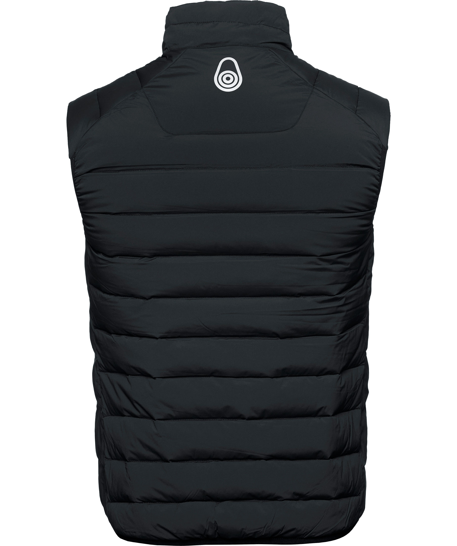 Svart dunväst från Sail Racing. Logotyp tryckt på bröstet och i nacken, två fleecefodrade framfickor med dragkedja och en innerficka. Stängs med dragkedja fram.