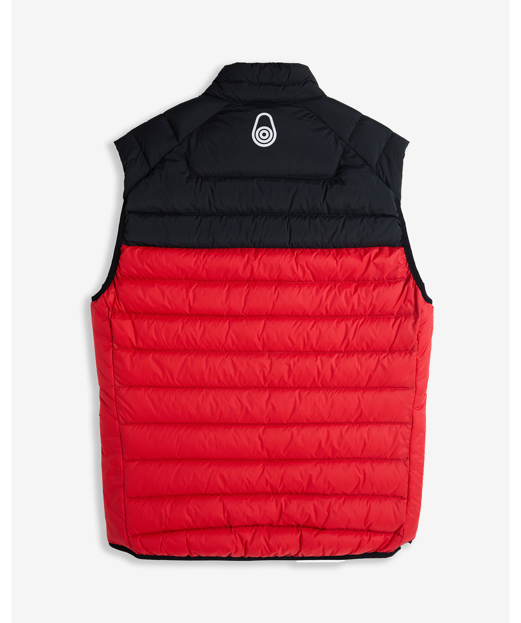 Röd och svart, vind- och vattenavvisande dunväst från Sail Racing. Logotyp tryckt på bröstet och i nacken, två fleecefodrade framfickor med dragkedja och en innerficka. Stängs med dragkedja fram. Konstruerad i ett lättviktstyg av återvunnen nylon och insida i Graphene-tyg som optimerar temperaturreglering. Västen har en PFC-fri DWR-behandling för att förhindra att tyget blir blött och är fylld med 90/10 Blue Sign och RDS certifierat dun och fjädrar. Fillpower 700. Sidopanelerna konstruerade i stretch för bättre flexibilitet och fyllda med Primaloft® Black Eco för optimerad värmeförmåga och funktion.