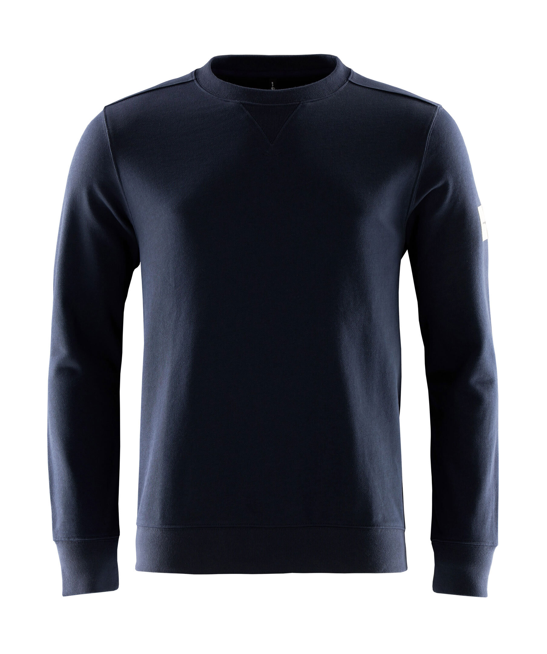 Marinblå tröja från Sail Racing. Tröjan har ribbade muddar i ärm- och tröjslut, rund halsringning och patch med logotyp på ärmen, samt block-logotyp i nacken. Tillverkad av bomull.