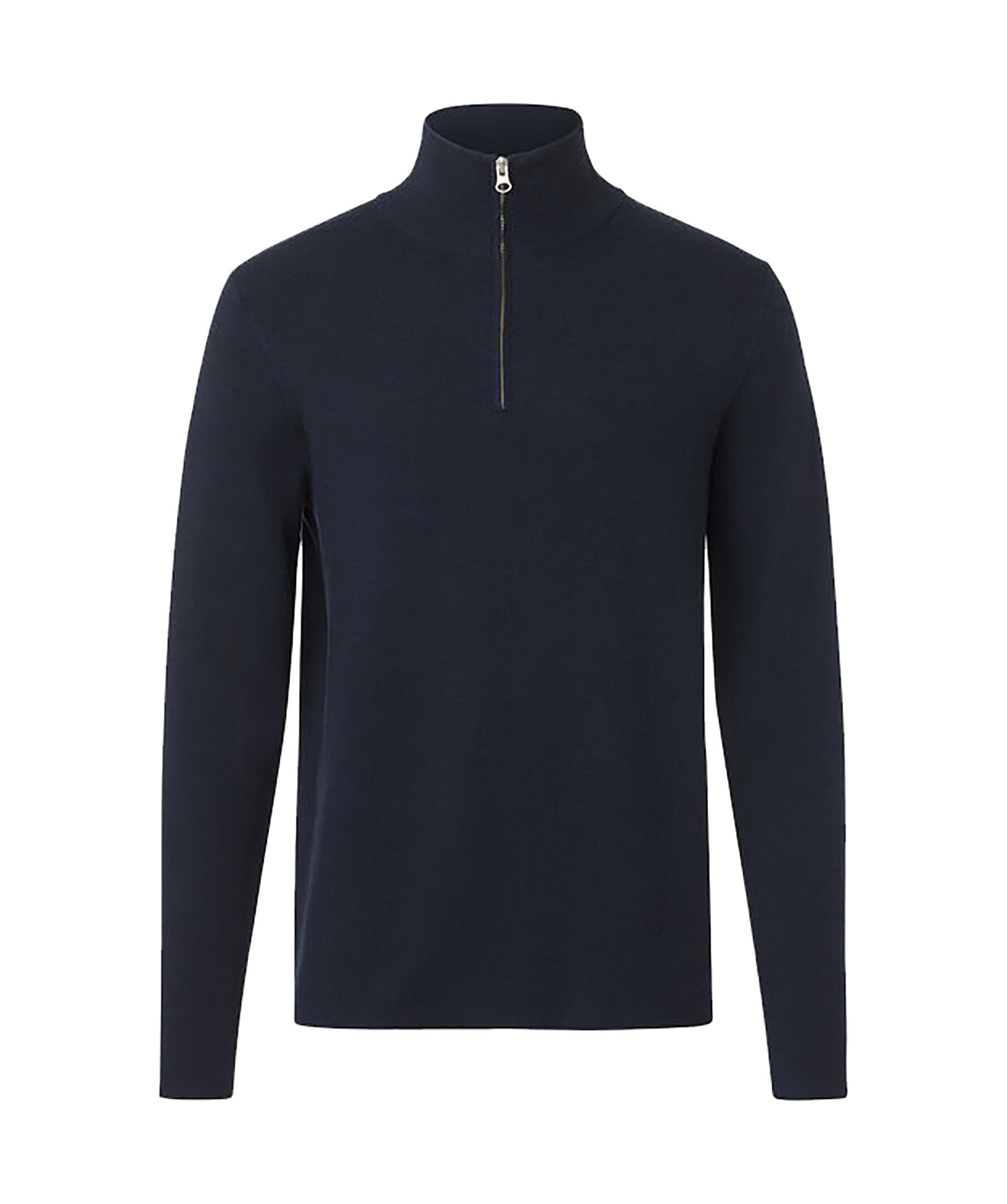 Himmelsblå polotröja från Samsøe Samsøe. Hög krage och en dragkedja som går ner från halsen. Tröjan är tillverkad av en mjuk och bekväm ull- och polyamidblandning.