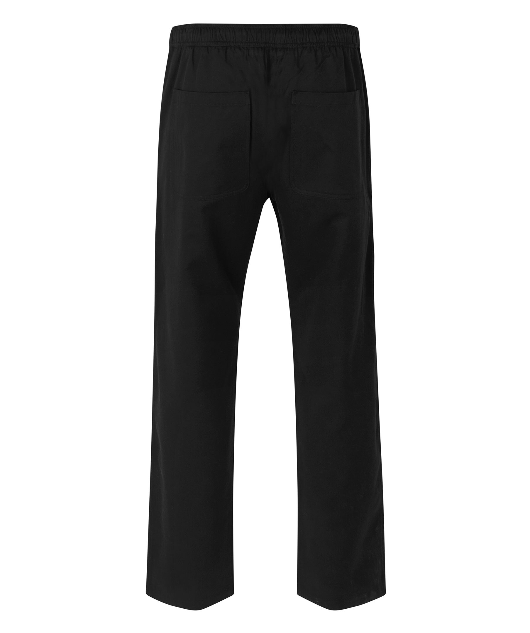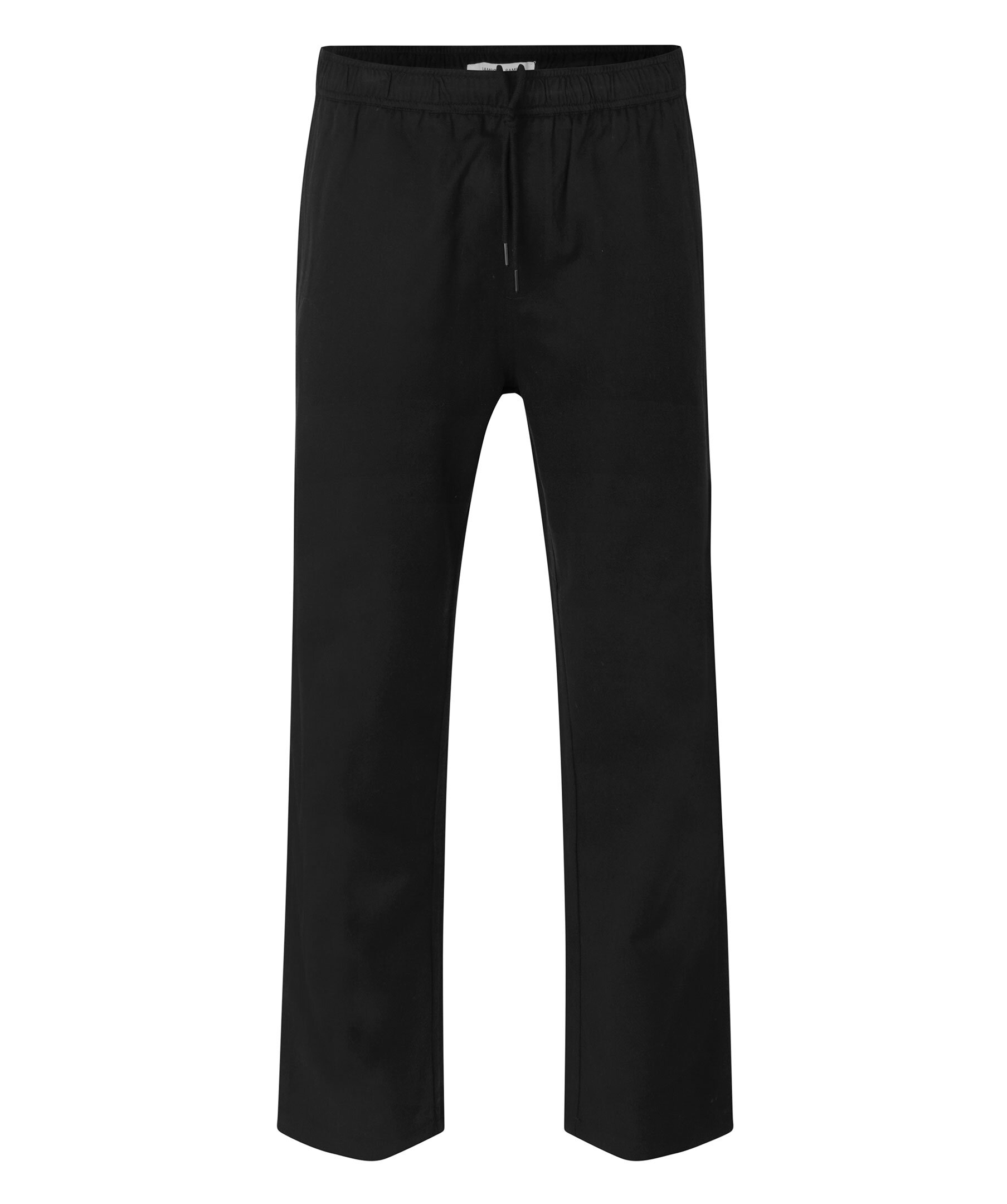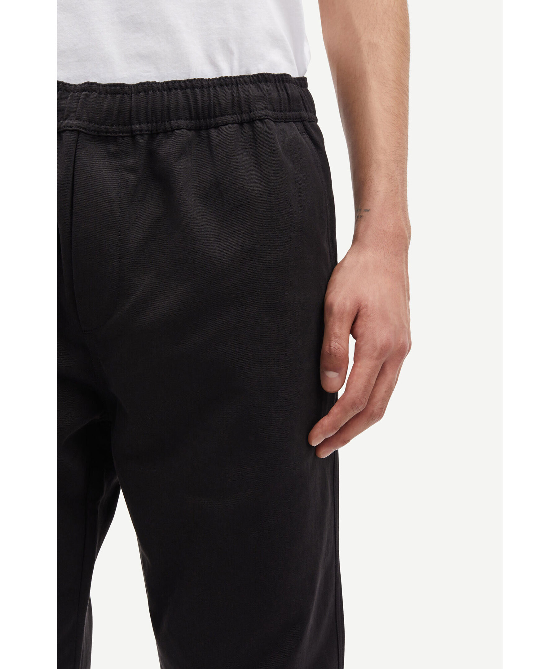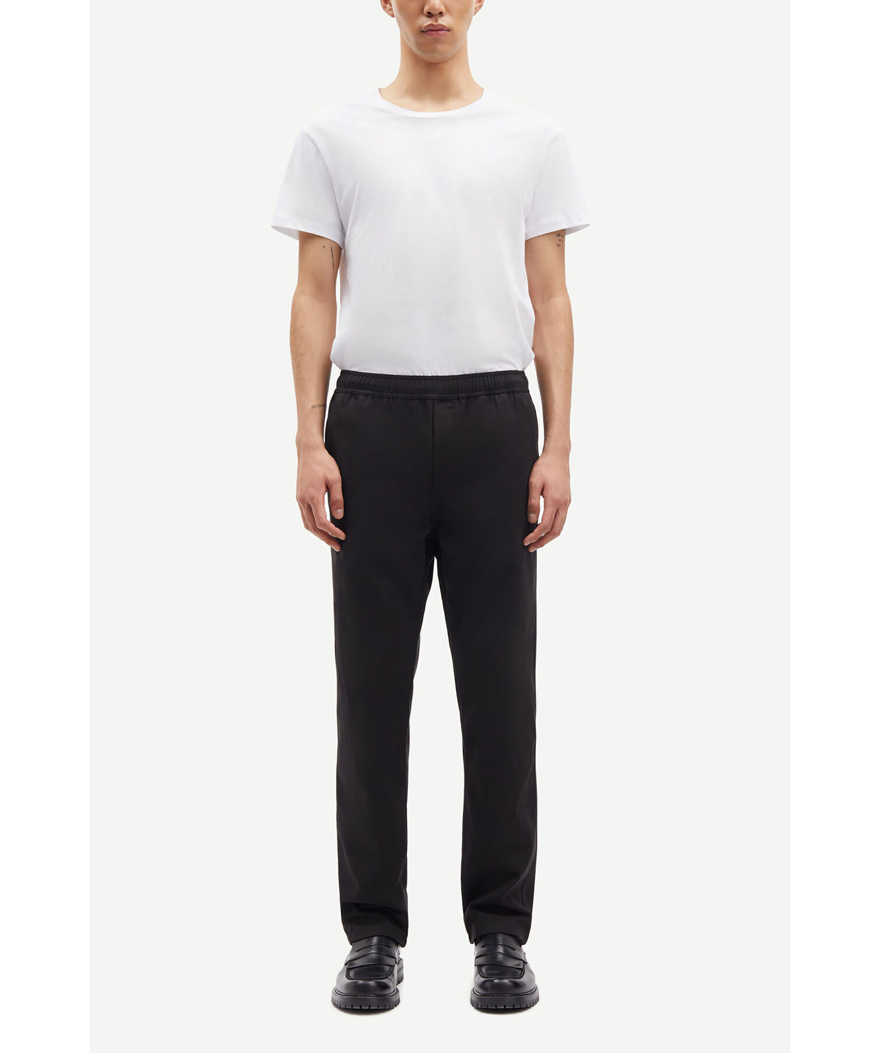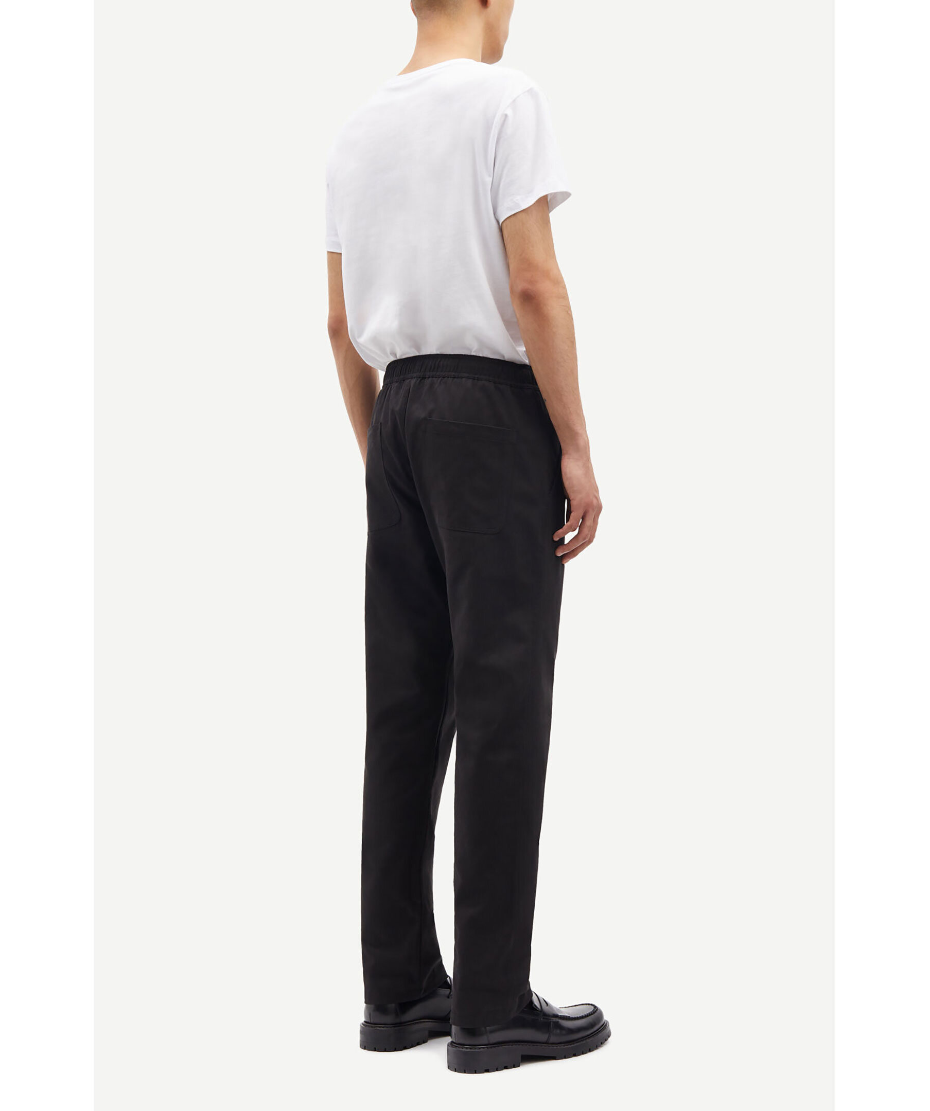 Svarta byxor från Samsoe Samsoe. Byxorna har resår i midjan med dragsko, två sidfickor samt två påsydda fickor baktill. Raka ben. Tillverkade i en lyocell- och bomullsblandning.