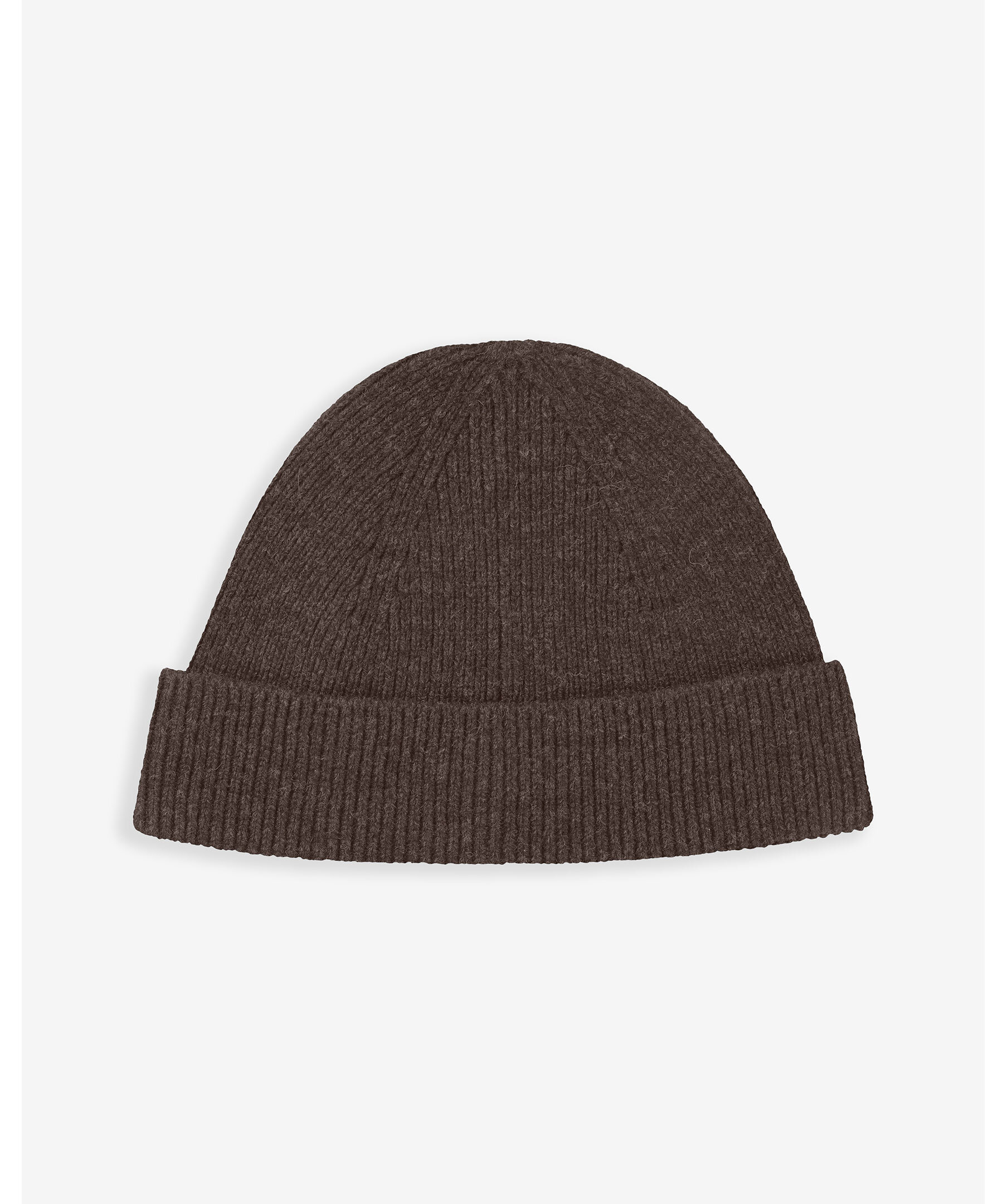 Mörkbrun, ribbstickad mössa från Samsoe Samsoe. Mössan har en bred, uppvikt kant samt subtil logotyp. Tillverkad av 100 % merinoull. Denna produkt är RWS-certifierad. RWS beskriver och certifierar djurskydd och markförvaltningsmetoder vid ullfiberproduktion och spårar det certifierade materialet från gård till slutprodukt.