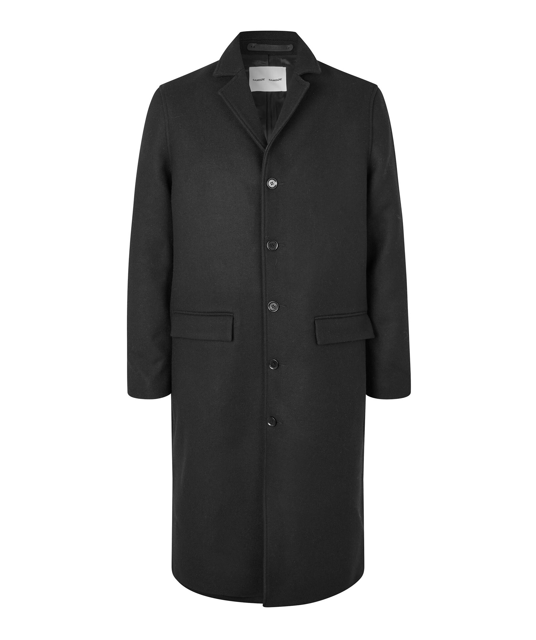 Svart ullrock från Samsoe Samsoe. Rocken är enkelknäppt framtill och har ärmslut med knäppning, två weltfickor med lock och en passpoalficka på insidan. Den är helfodrad och har sprund baktill. Tillverkad i en ullblandning.
