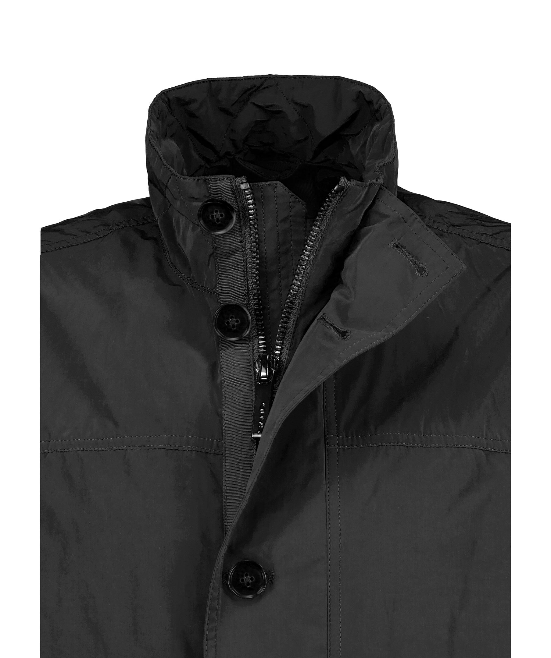 Svart, tunn jacka från Sand. Stängs med dold dragkedja och knappar framtill och har två fickor med knapp samt dragkedjedetaljer. Dragsko i midjan och två innerfickor med dragkedja. Tillverkad i en polyesterblandning.