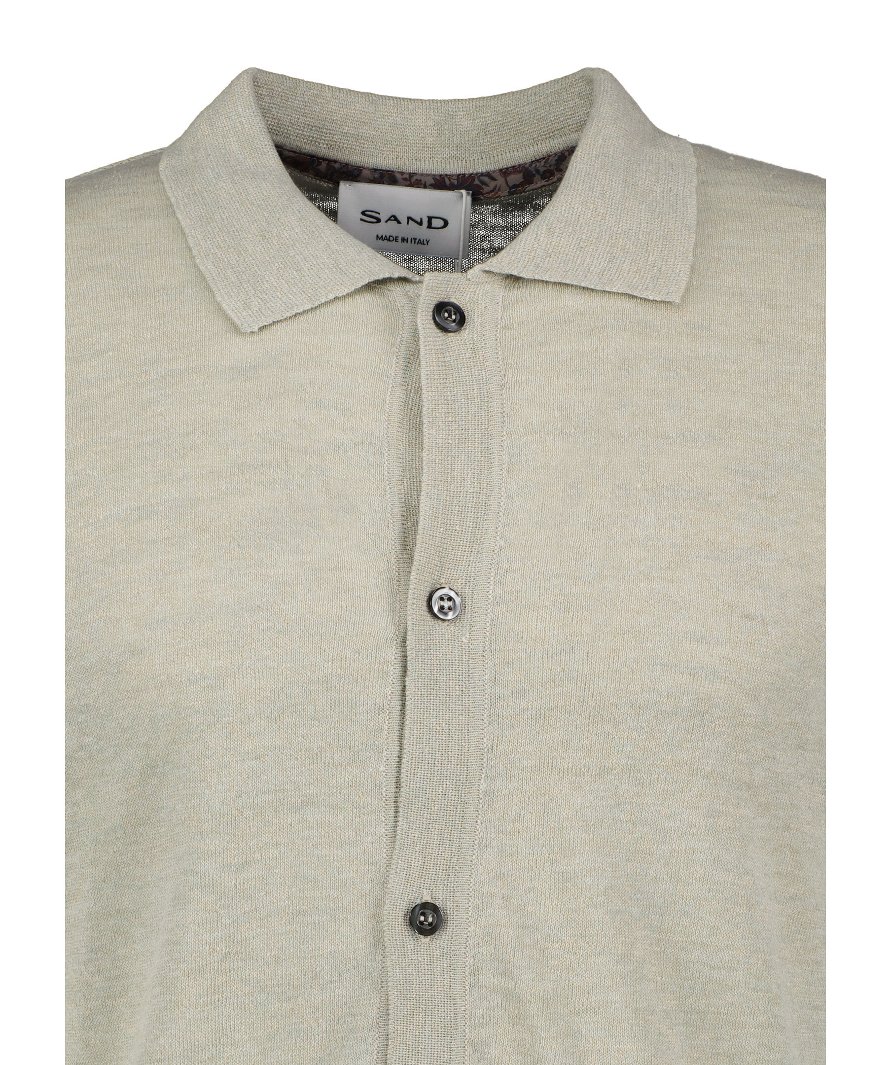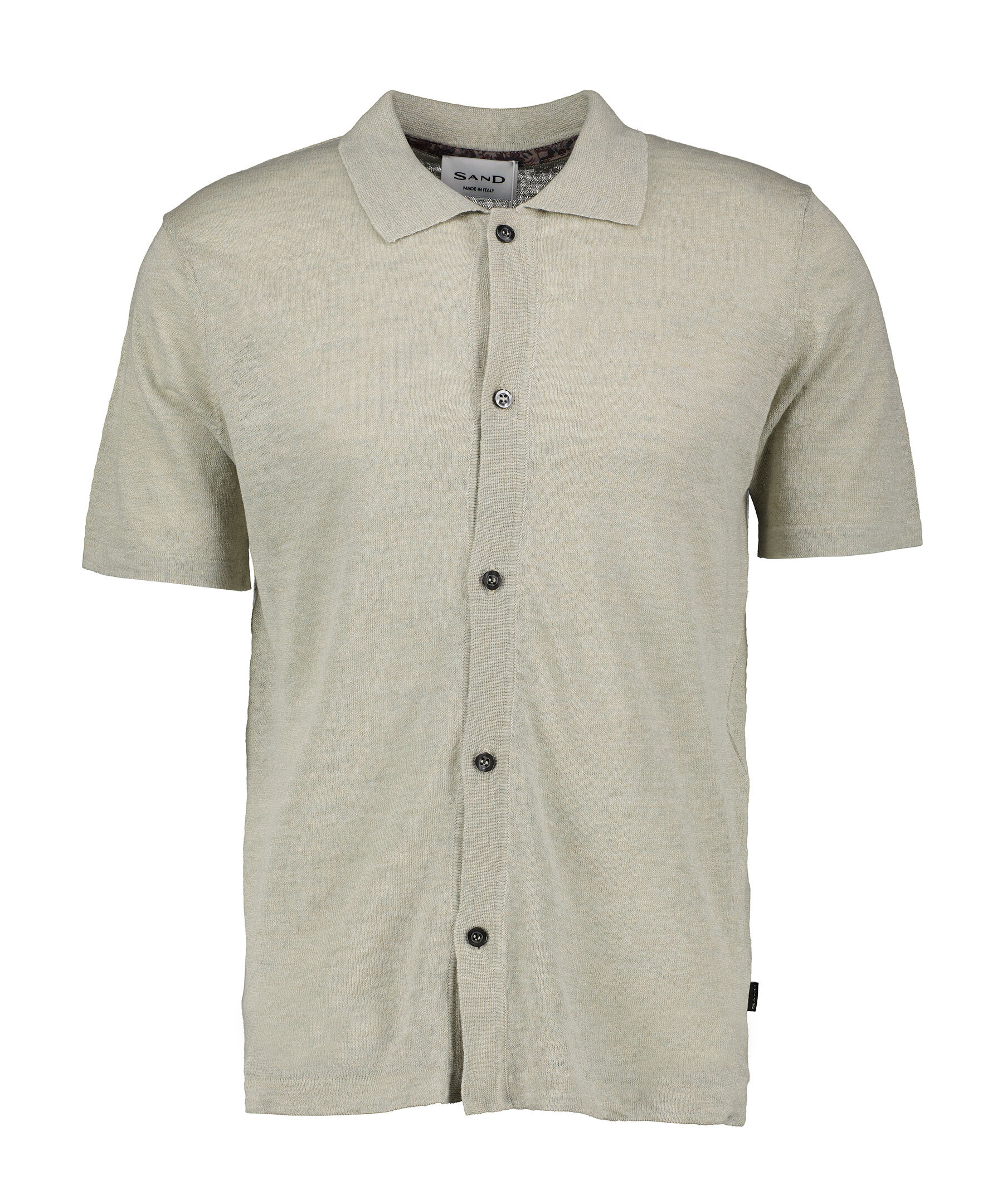 Ljusgrön, kortärmad skjorta från Sand med ribbstickade detaljer. Tillverkad i en linblandning.