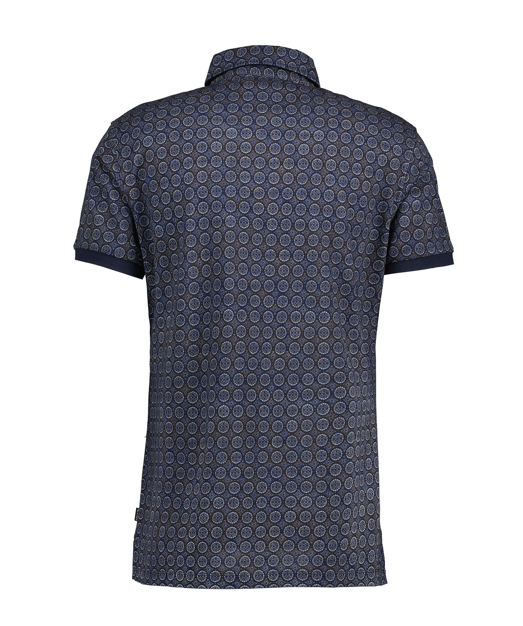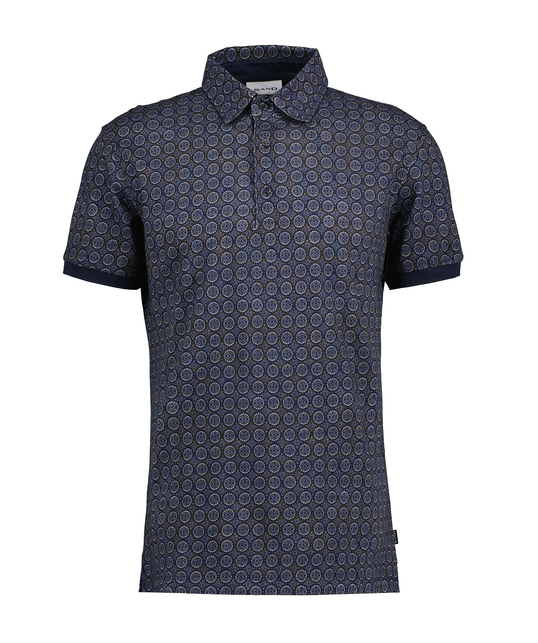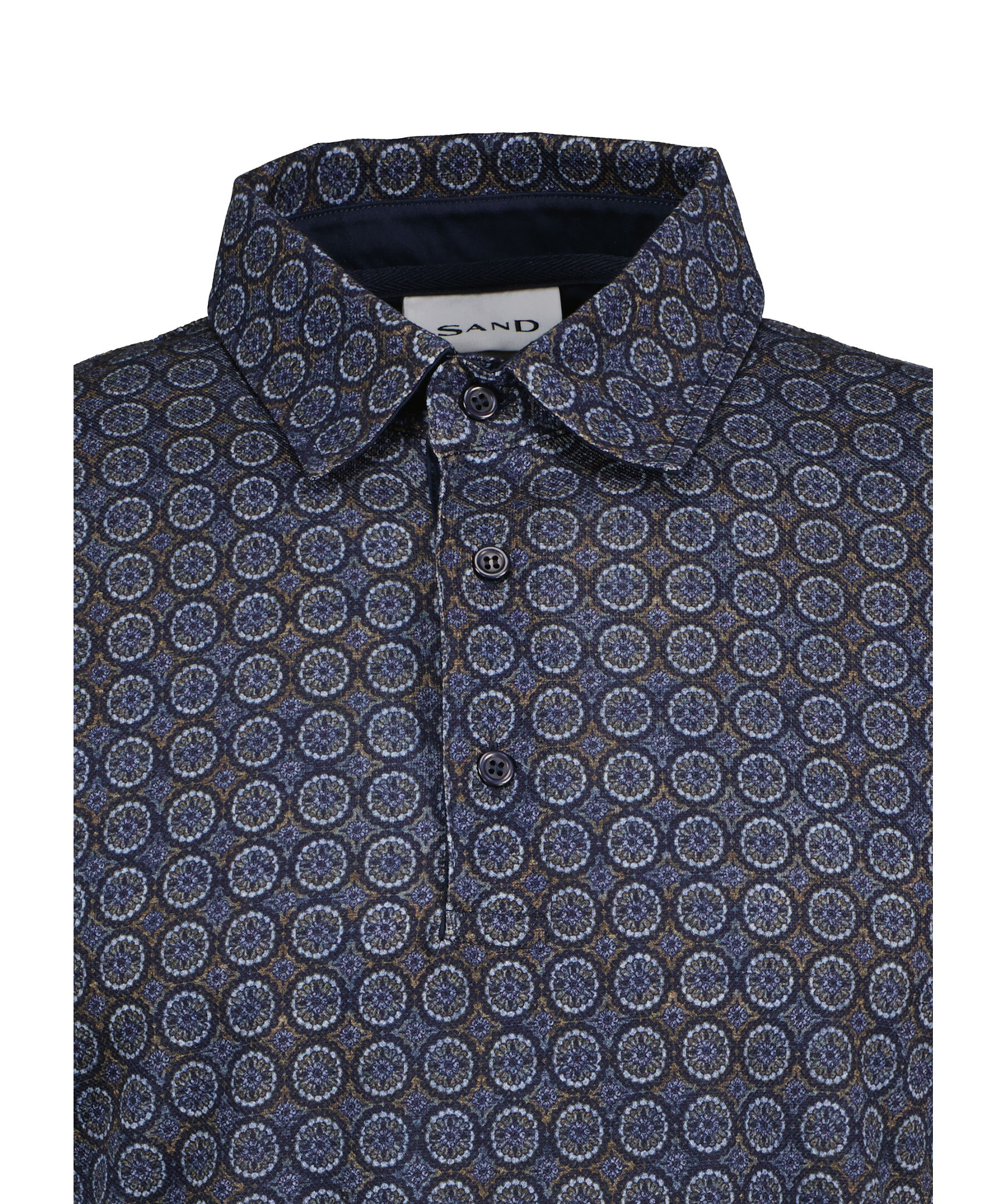 Blåmönstrad piké från Sand. Pikén har korta ribbstickade ärmslut och är tillverkad av 100% bomull.
