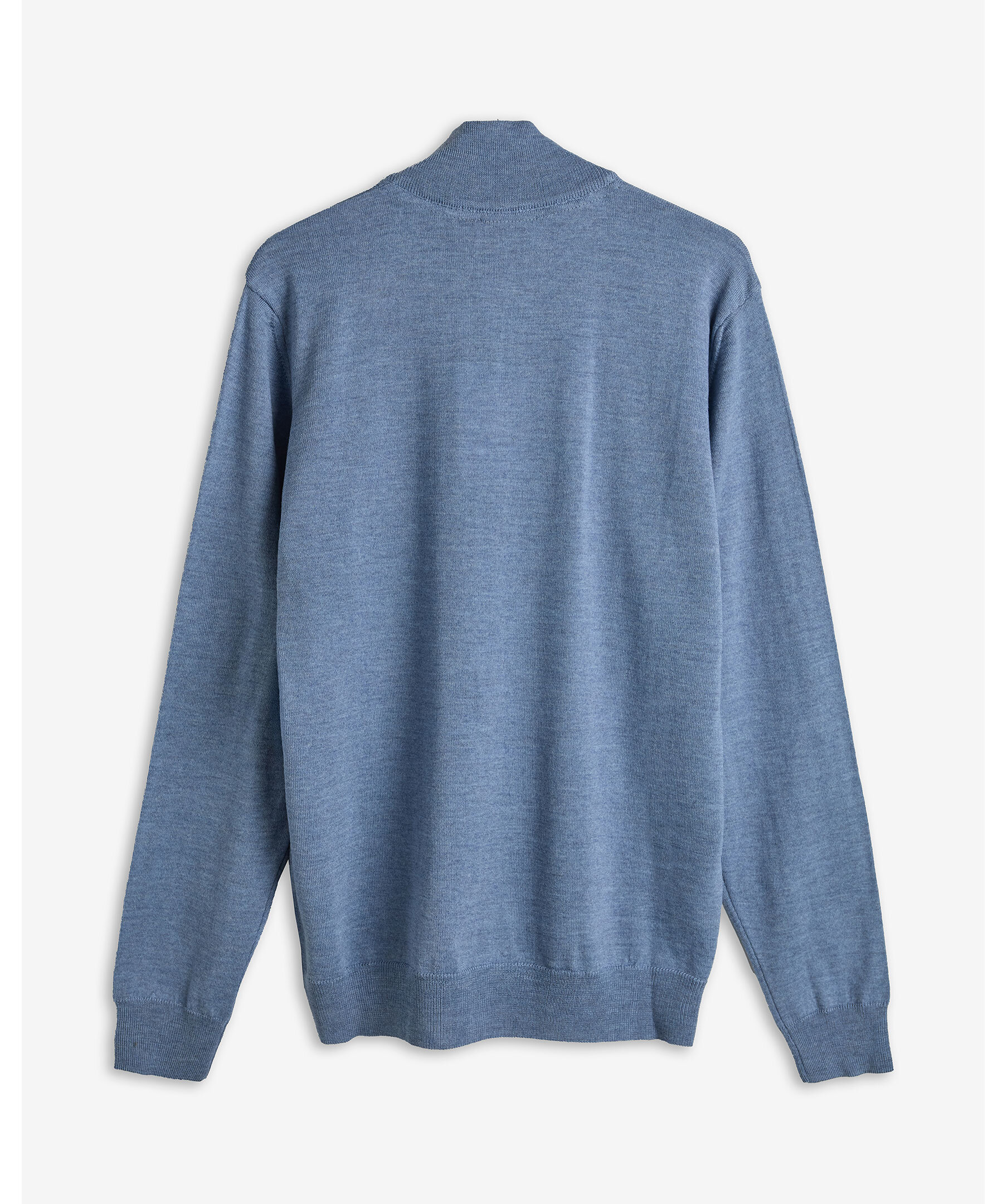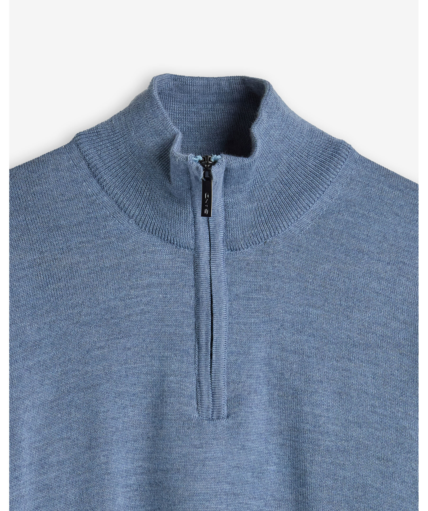 Ljusblå långärmad tröja från SAND, tillverkad i 100% extra fin merinoull från Zegna Baruffa. Tröjan har hög hals, ribbade detaljer vid hals, ärmslut och nederkant samt en modern passform. Stickad i 12 gauge, vilket ger en lätt och smidig känsla. Designad och tillverkad i Italien.