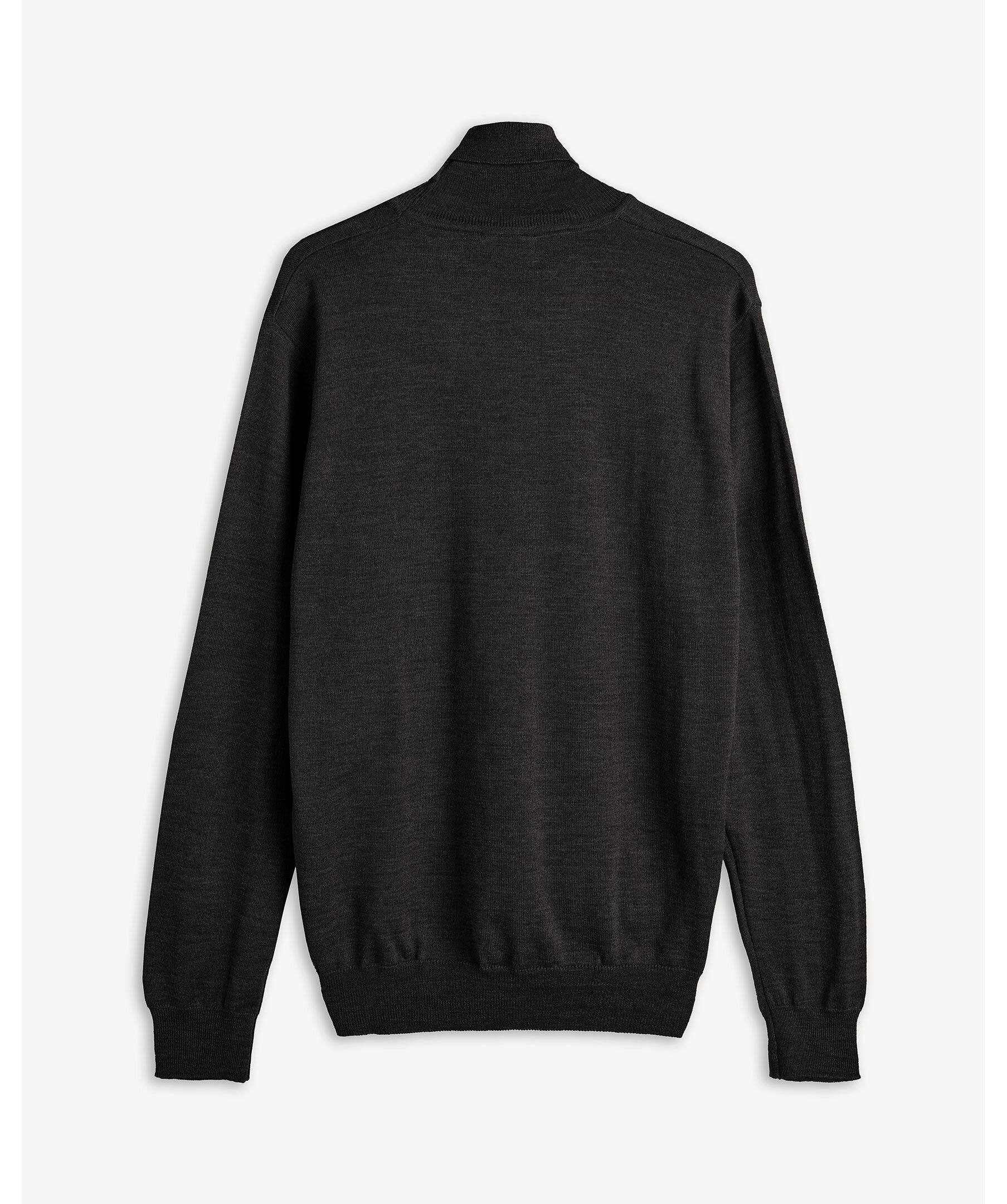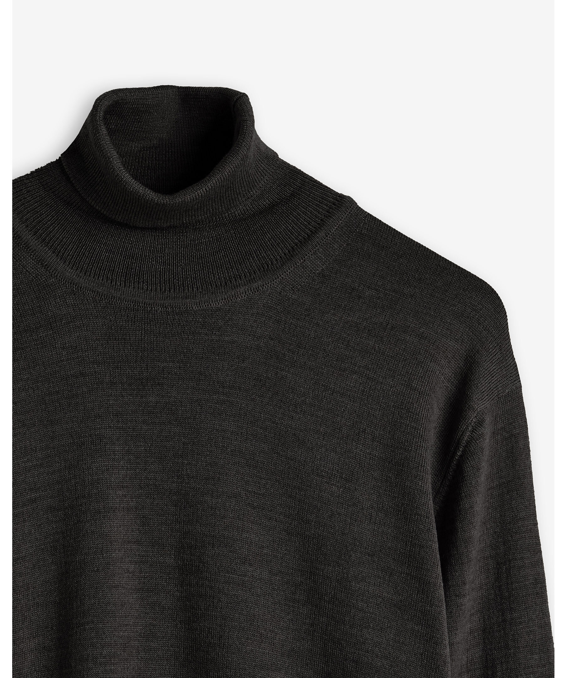 Turtleneck-tröja i färgen svart från SAND. Tröjan har ribbstickning vid hals, ärmslut och nederkant samt en modern passform med vi turtleneck-hals som värmer. Stickad med 12 Gauge-tjocklek, vilket ger en mjuk men tät struktur. Tillverkad i 100 % extra fin merinoull från Zegna Baruffa i Italien. En stilfull och mångsidig tröja som passar både till vardags och finare tillfällen.