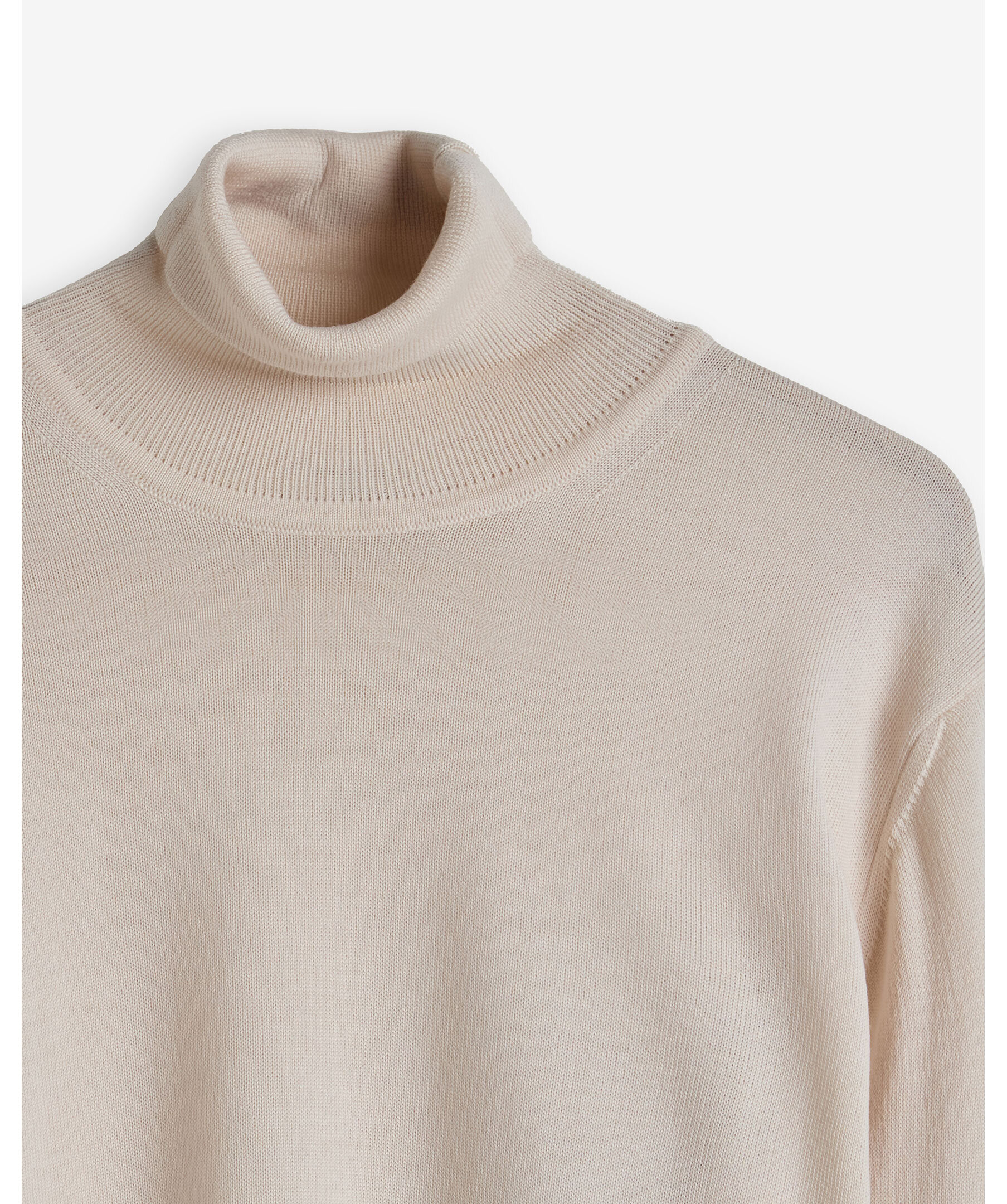 Turtleneck-tröja i färgen Off White från SAND. Tröjan har ribbstickning vid hals, ärmslut och nederkant samt en modern passform med vi turtleneck-hals som värmer. Stickad med 12 Gauge-tjocklek, vilket ger en mjuk men tät struktur. Tillverkad i 100 % extra fin merinoull från Zegna Baruffa i Italien. En stilfull och mångsidig tröja som passar både till vardags och finare tillfällen.