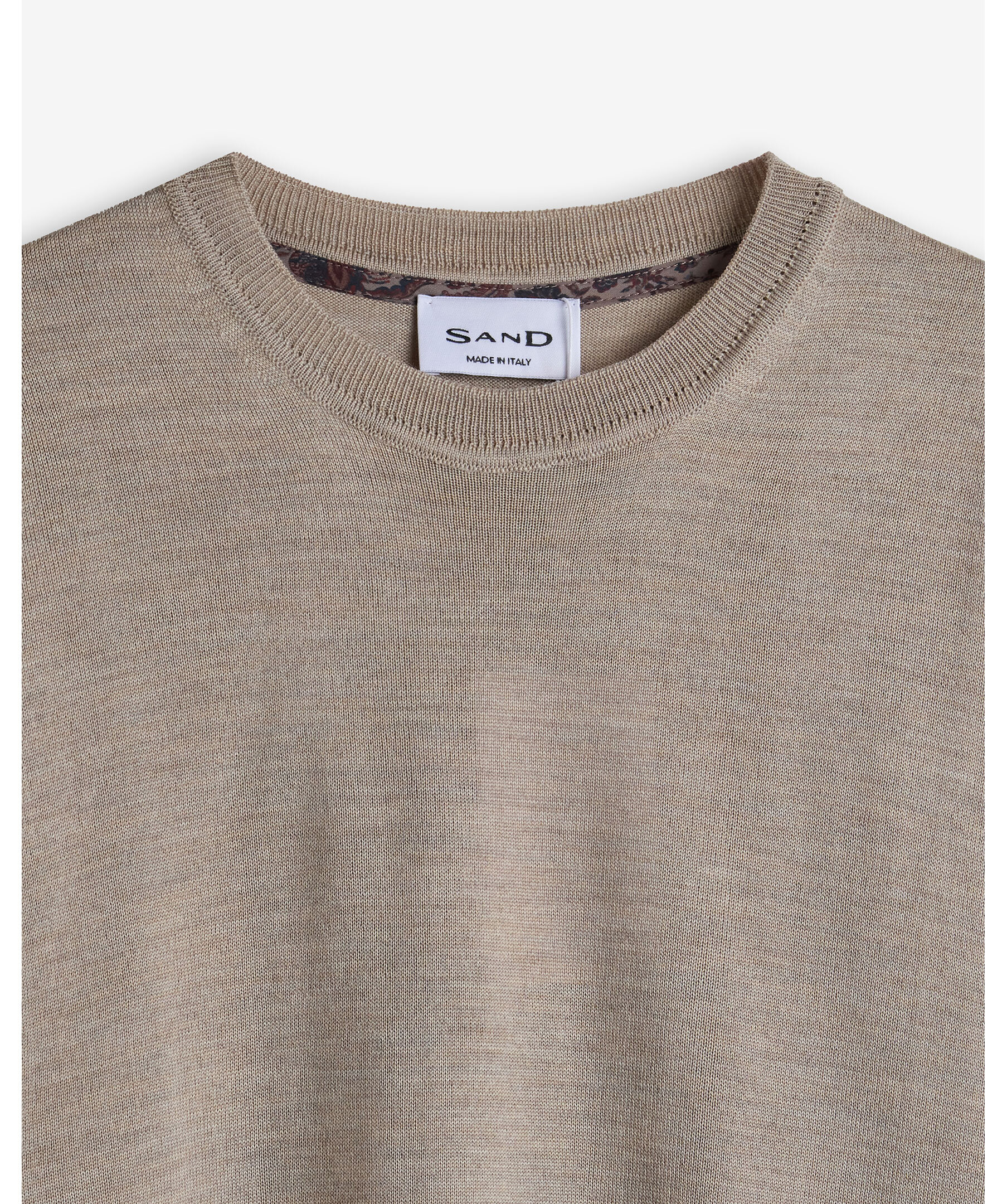 Sandfärgad långärmad tröja från SAND tillverkad i 100% extra fin merinoull från Zegna Baruffa. Tröjan har rund halsringning, ribbade detaljer vid hals, ärmslut och nederkant samt en modern passform. Stickad i 12 gauge, vilket ger en lätt och smidig känsla. Designad och tillverkad i Italien.