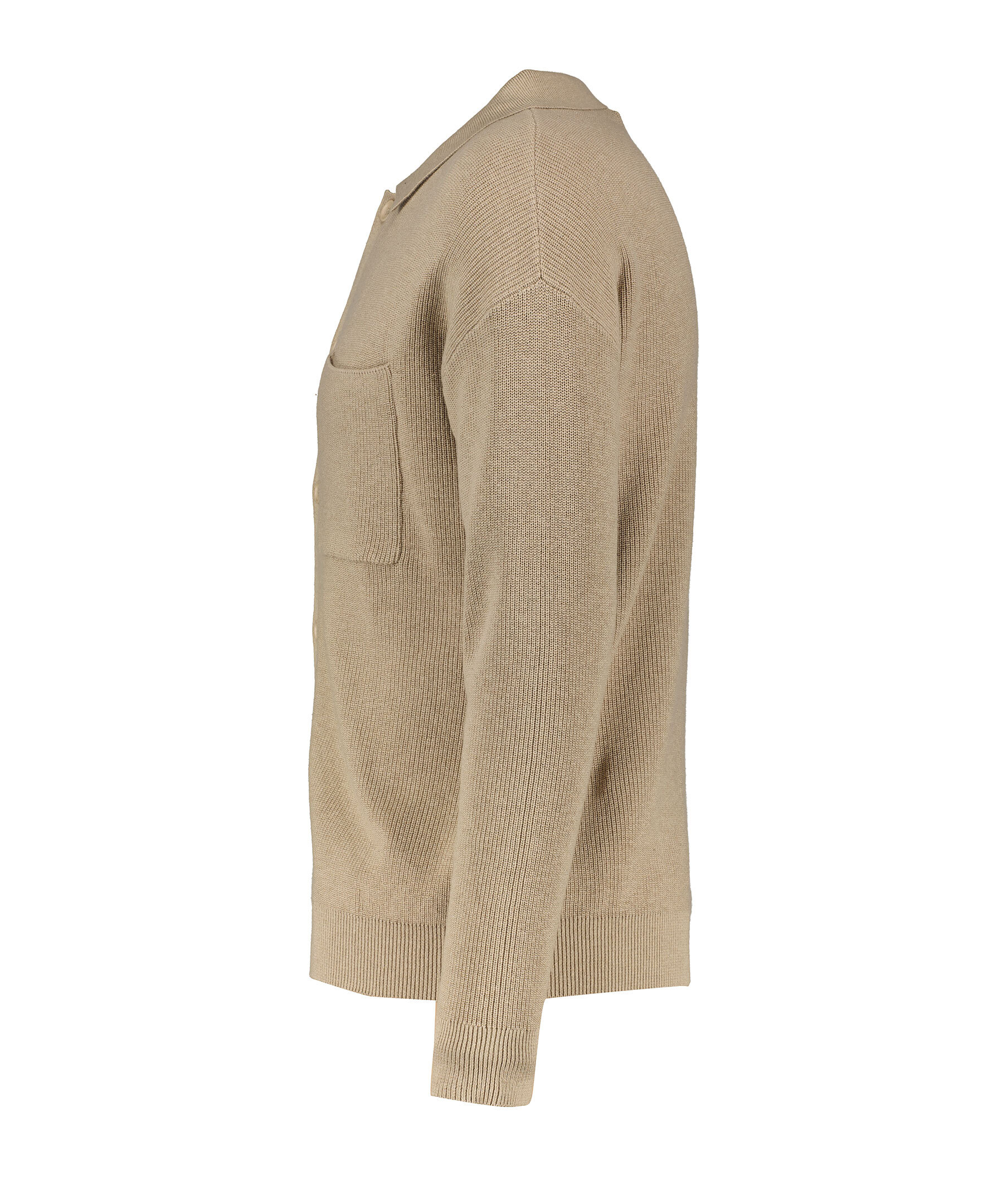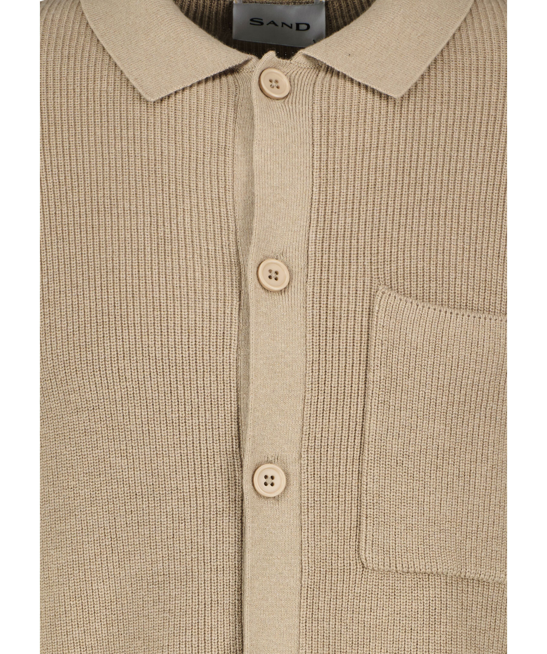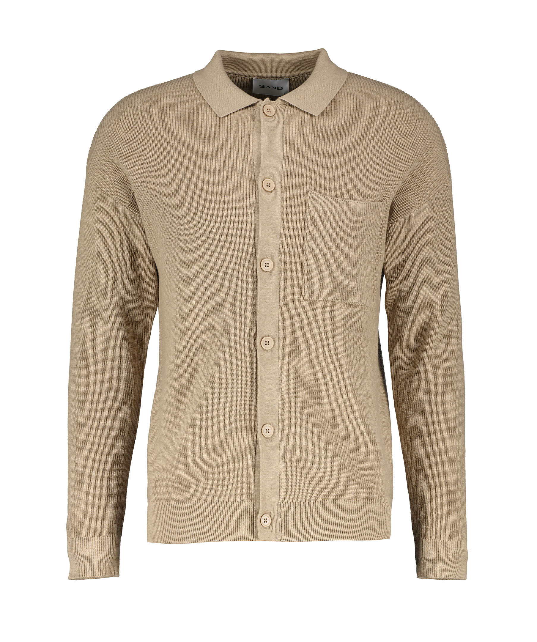 Beige, ribbstickad kofta från Sand. Koftan stängs med knappar framtill och har en påsydd bröstficka. Tillverkad i en bomull- och kashmirblandning.