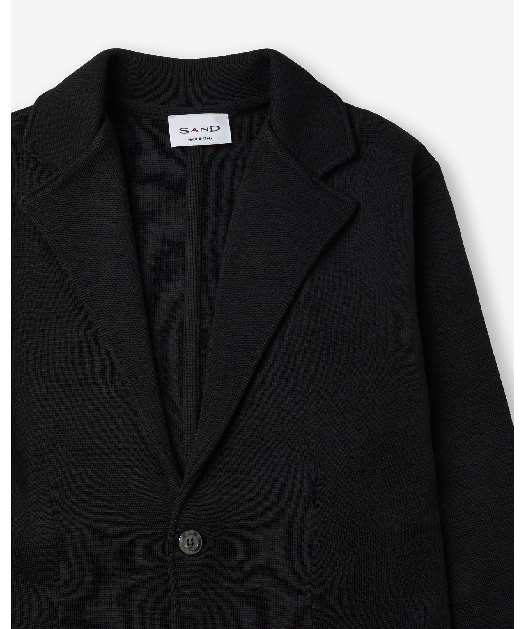Svart, stickad kofta från Sand som ser ut som en kavaj. Stängs med knappar och har två påsydda fickor. Tillverkad i en ullblandning.