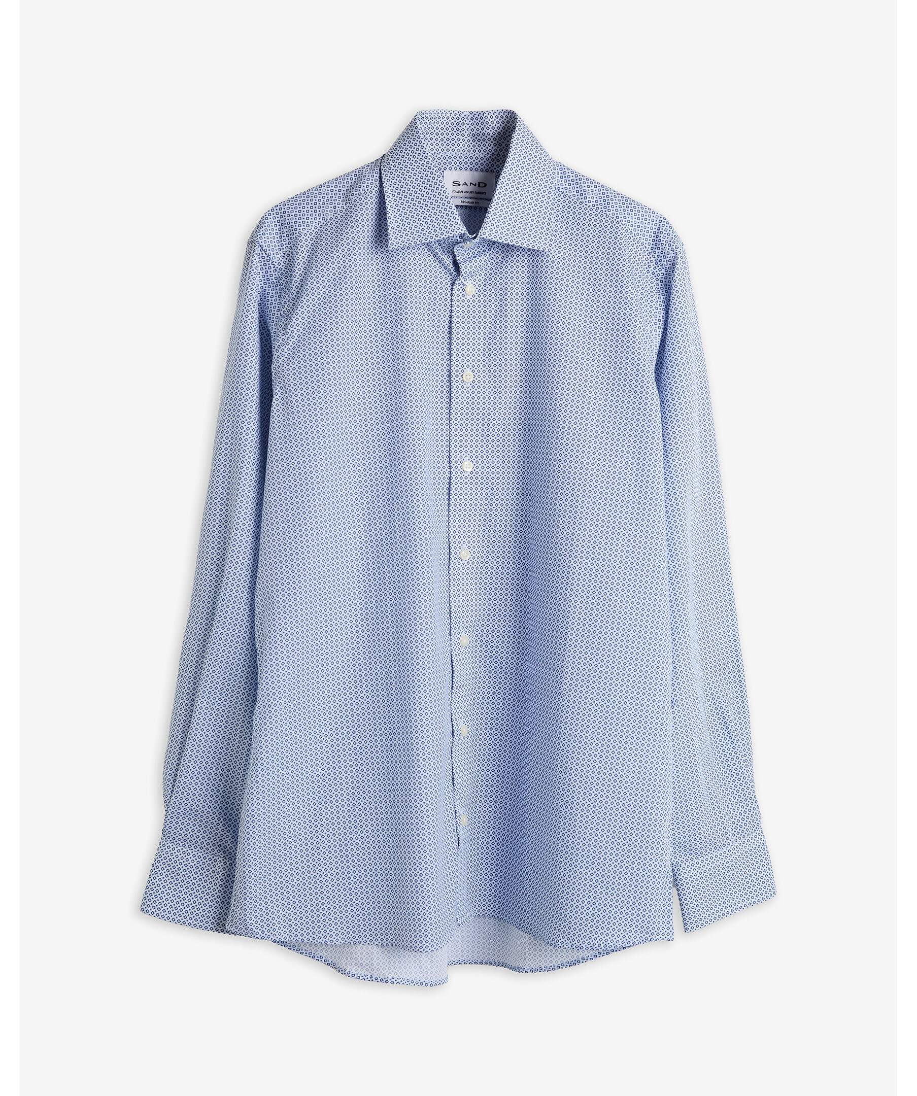* Regular fit Blå mönstrad skjorta från SAND. Skjortan har två veck (darts) baktill för bättre passform och manschett som kan justeras med en knapp. Tillverkad av 100 % bomull i ett italienskt lyxtyg. Stilren skjorta som passar både till vardags och under kavaj.