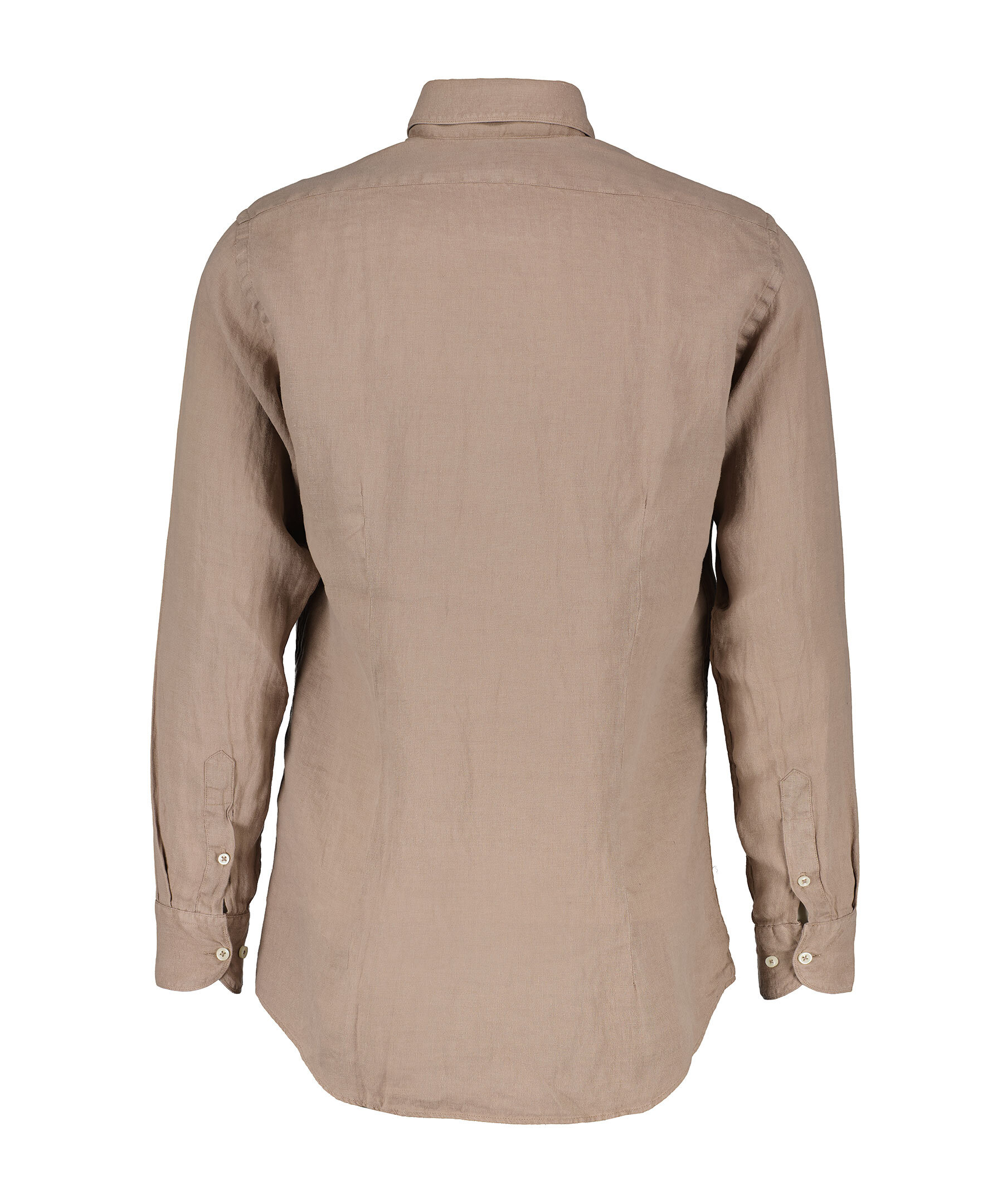 Brun skjorta från Sand. Skjortan är längre baktill där den har ett rundat avslut, tillverkad av 100% lin.