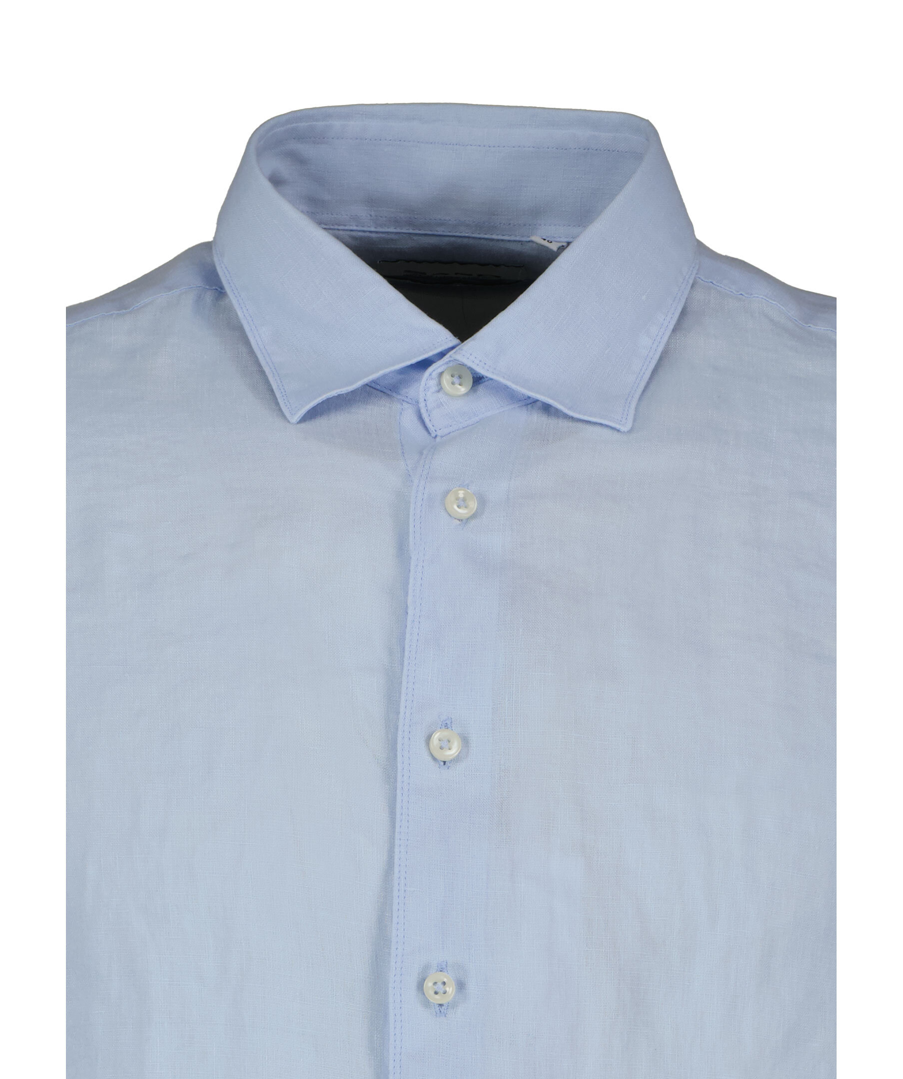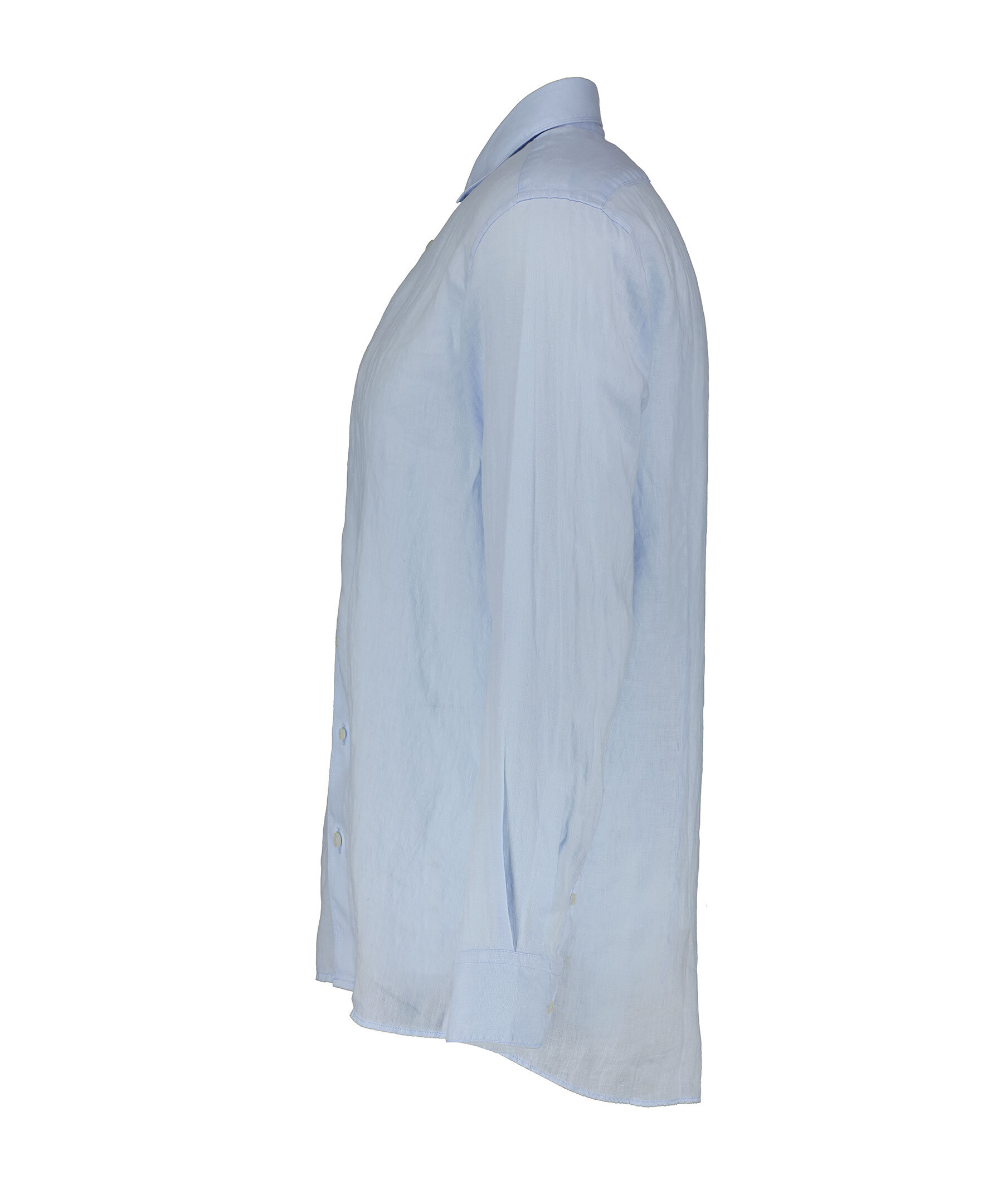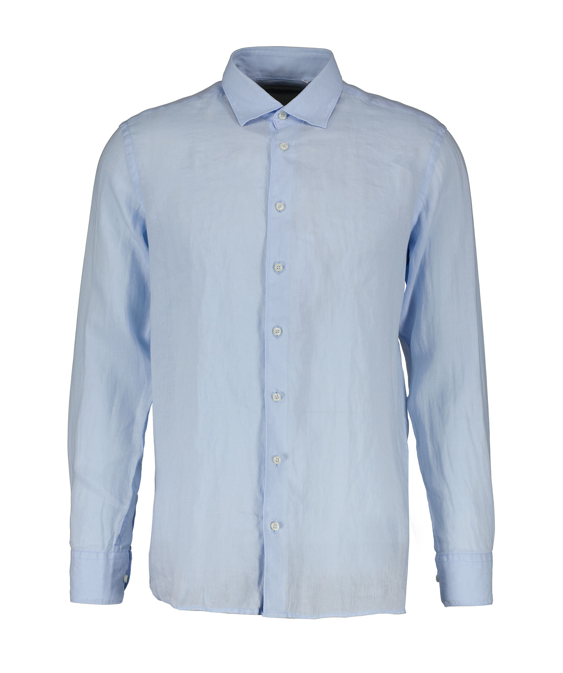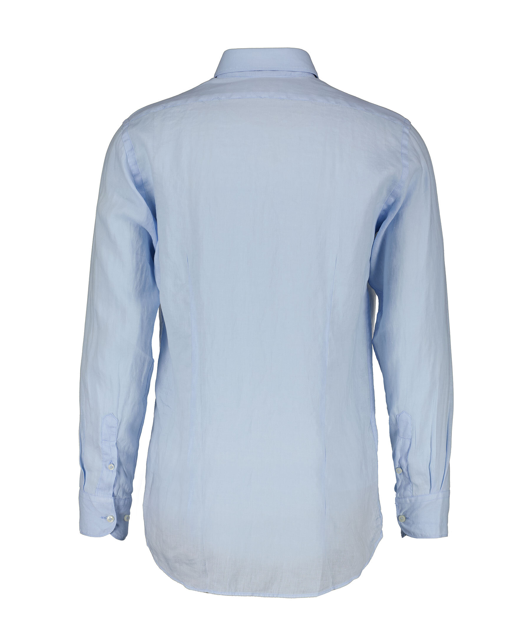 Ljusblå skjorta från Sand. Skjortan är längre baktill där den har ett rundat avslut, tillverkad av 100% lin.