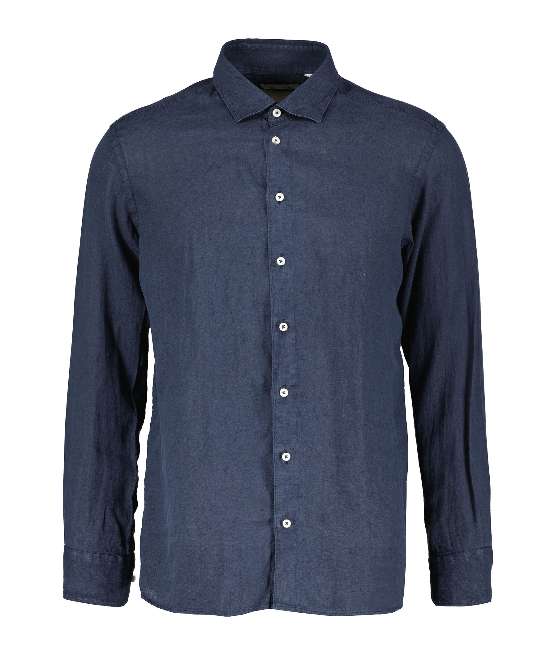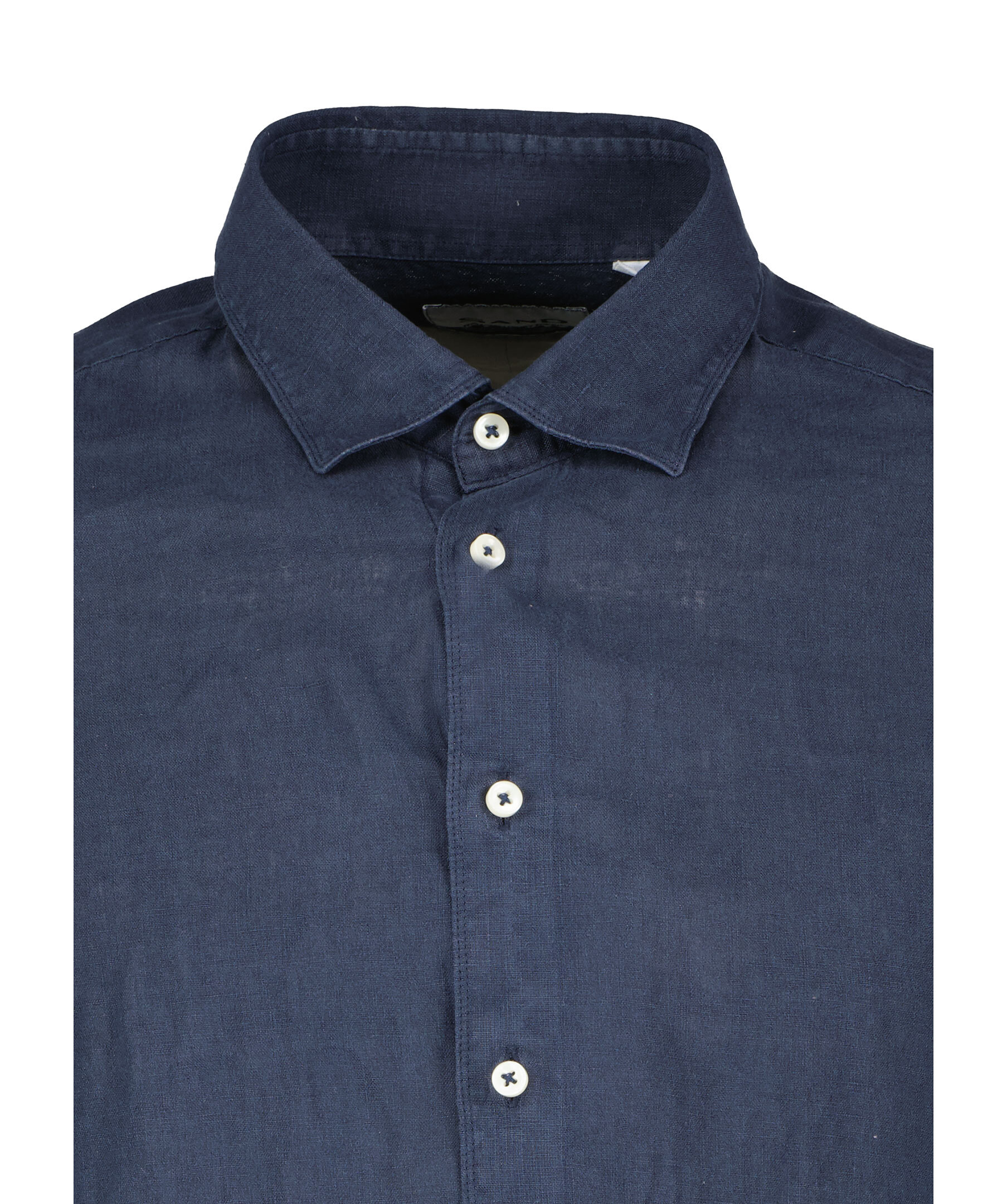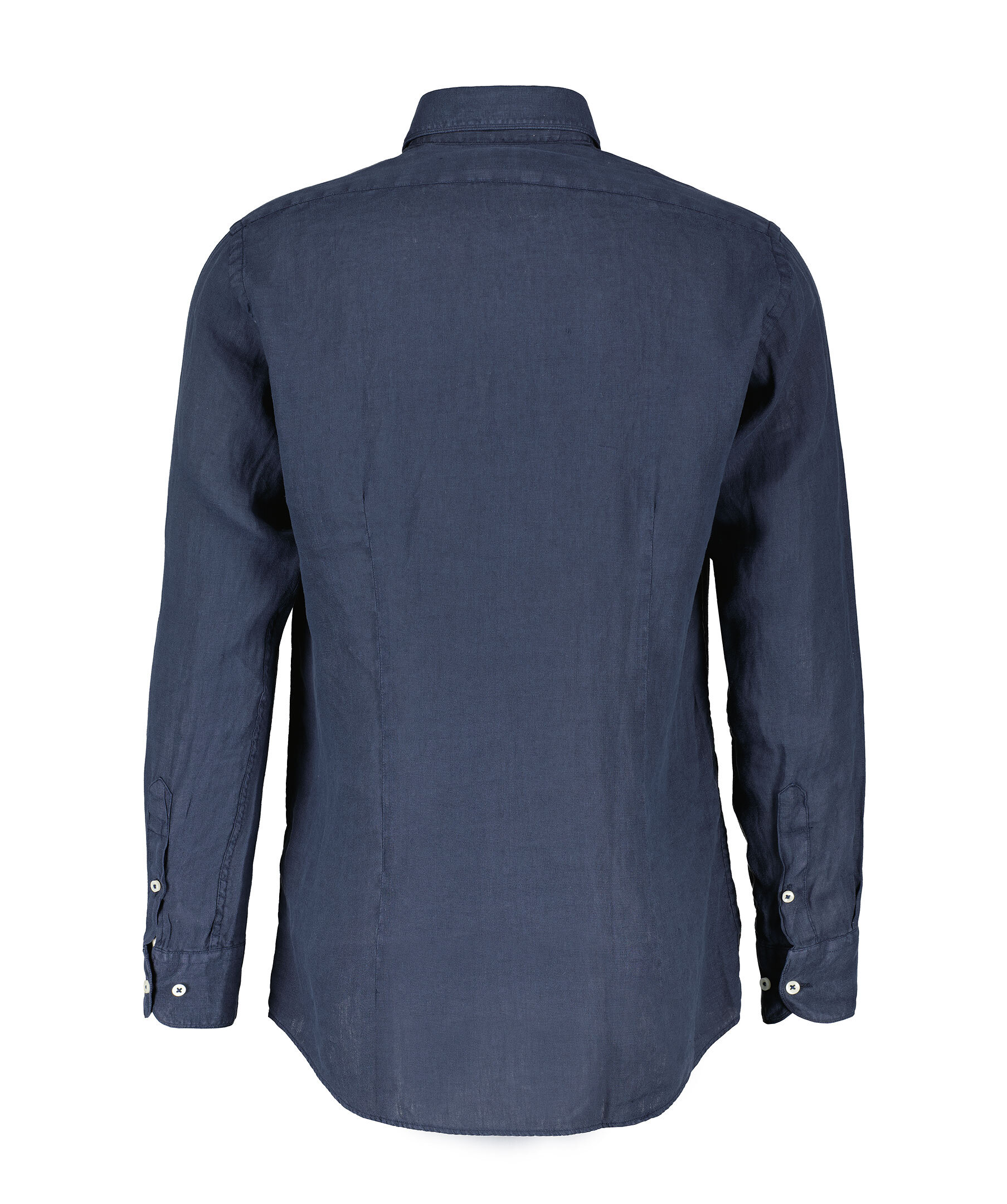 Mörkblå skjorta från Sand. Skjortan är längre baktill där den har ett rundat avslut, tillverkad av 100% lin.
