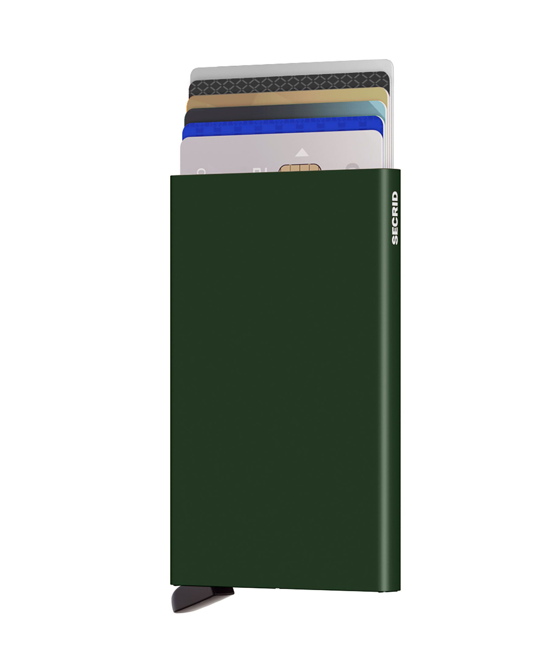 Cardprotector i färgen Green från Secrid. Den mest minimala plånboken och hjärtat av alla Secrid-produkter. Den patenterade mekanismen gör att du kan dra ut dina kort med en enkel rörelse, redo för omedelbar användning. Aluminiumhöljet skyddar från böjning, brott och oönskad trådlös kommunikation (RFID säker). Håller 4 präglade eller 6 platta kort. Tillverkad i anodiserad aluminium, plast och rostfritt stål och är ogenomtränglig för vatten. Mått: B: 6,3cm, H: 10,2cm, D: 0,8cm.