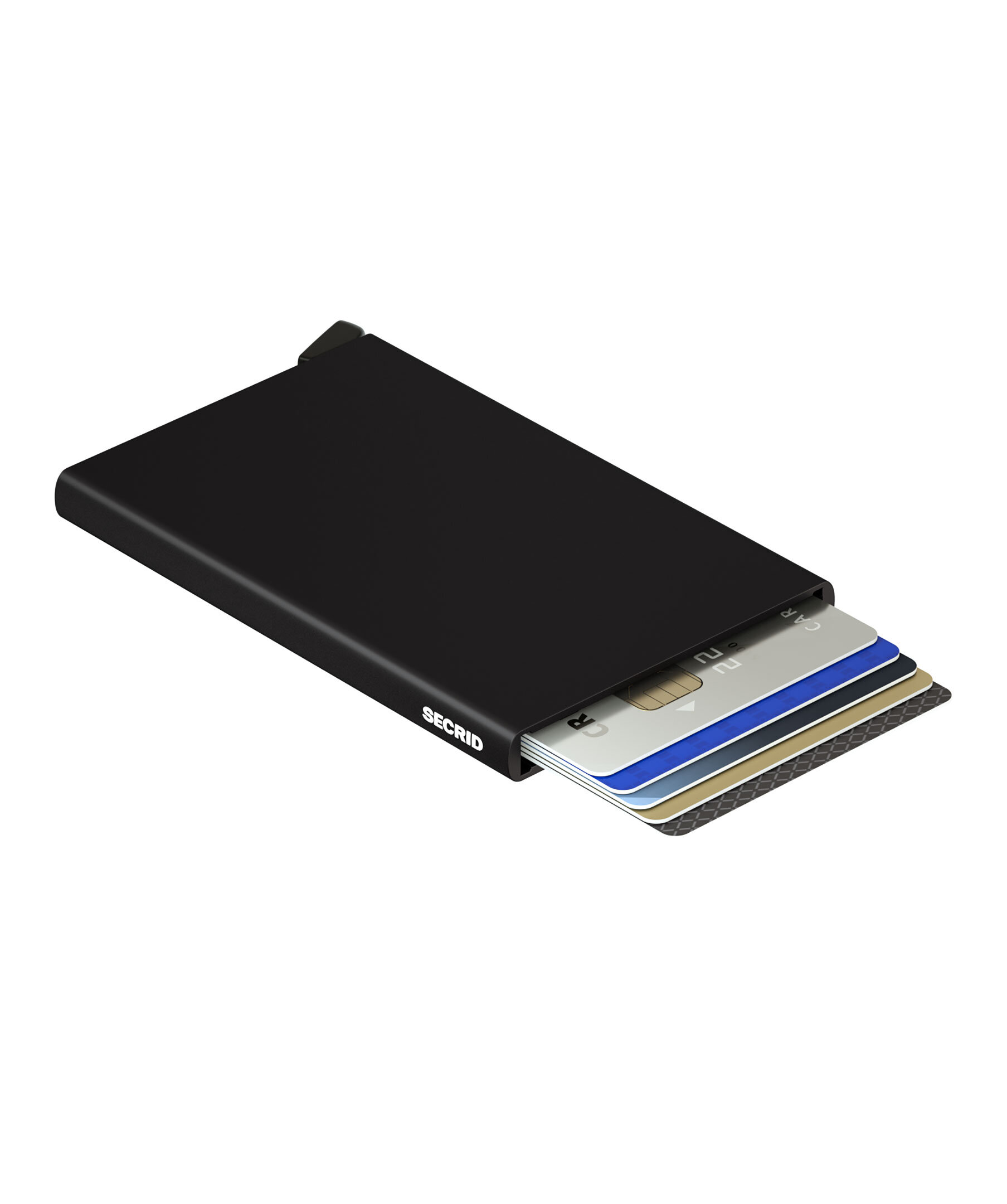 Cardprotector i färgen Black från Secrid. Den mest minimala plånboken och hjärtat av alla Secrid-produkter. Den patenterade mekanismen gör att du kan dra ut dina kort med en enkel rörelse, redo för omedelbar användning. Aluminiumhöljet skyddar från böjning, brott och oönskad trådlös kommunikation (RFID säker). Håller 4 präglade eller 6 platta kort. Tillverkad i anodiserad aluminium, plast och rostfritt stål och är ogenomtränglig för vatten. Mått: B: 6,3cm, H: 10,2cm, D: 0,8cm.