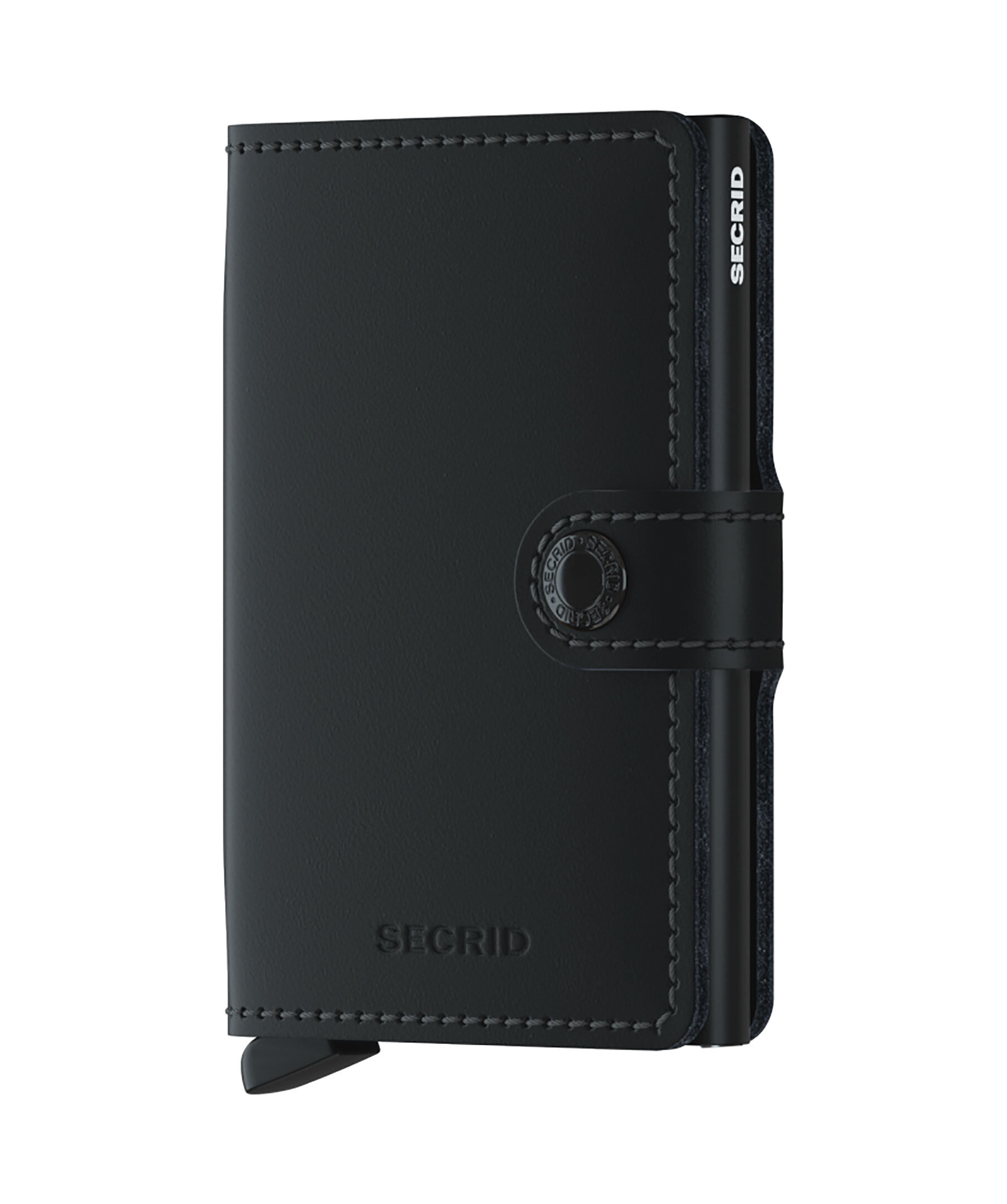 Miniwallet i stilen Matte Black från Secrid. Liten i storleken och förvånansvärt stor i lagringskapacitet, och kombinerar det bästa av två världar. Utsidan rymmer sedlar, kvitton och kort, medan Cardprotectorn i aluminium låter dig skjuta ut kort med en enkel rörelse och skyddar dem från böjning, brott och oönskad trådlös kommunikation. Den håller fyra präglade eller sex platta kort, fyra extra kort, sedlar samt visitkort. Tillverkad i vattenavvisande läder. Mått: B: 6,5 cm, H: 10,2 cm, D: 2,1 cm.
