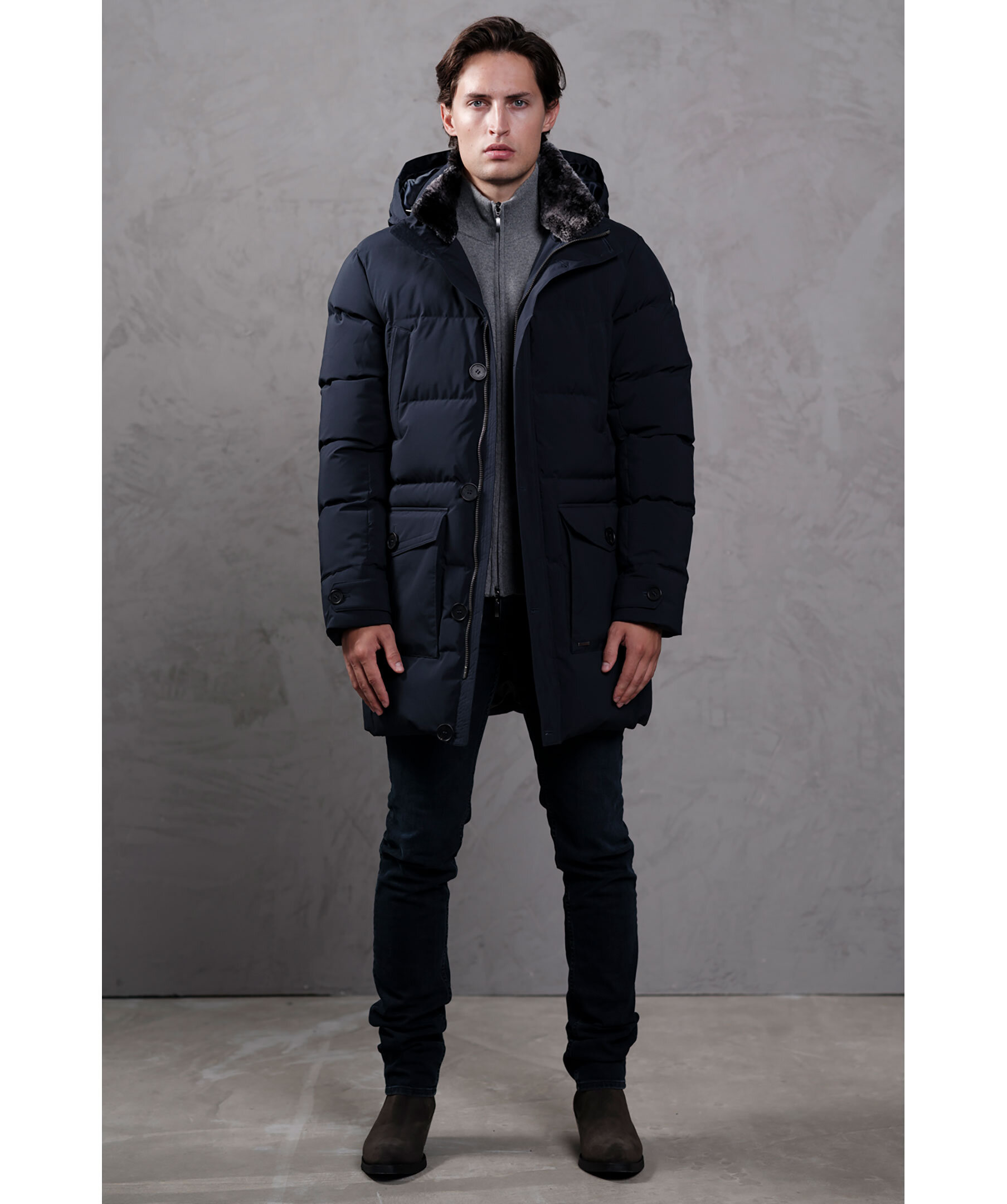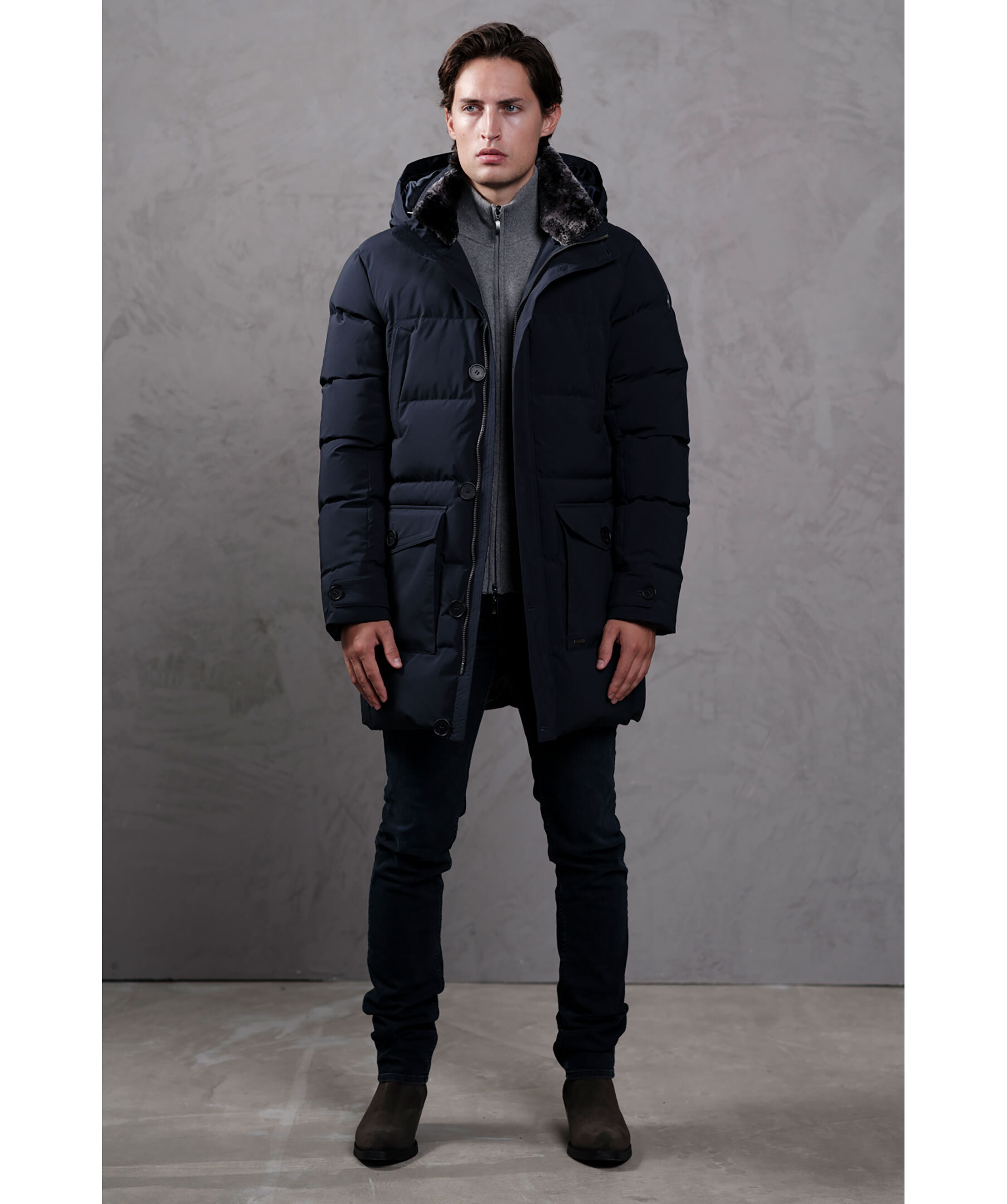 Agrigento jacka har en avtagbar huva, avtagbar pälskrage av hög kvalitet, bröstfickor och midjefickor. Jackan är utrustad med totalt sex exteriörer, två innerfickor och en justerbar midja för en bra passform. Denna jacka säkerställer den högsta standarden på vad vi vill kalla funktionell elegans.
