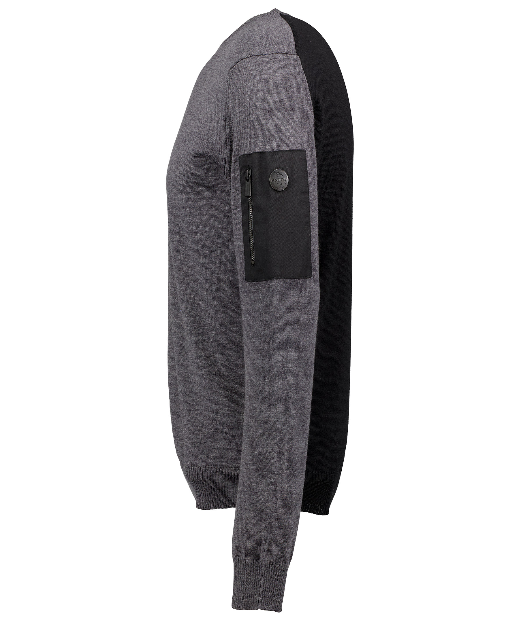 Mörkgrå finstickad rundhalsad tröja från Snoot. Tillverkad i 100% merinoull. Ribbade muddar vid ärm och plaggslut. Svart baksida. Patch och rund logotyp på vänster ärm. Begränsat antal, vi reserverar oss för eventuell slutförsäljning.