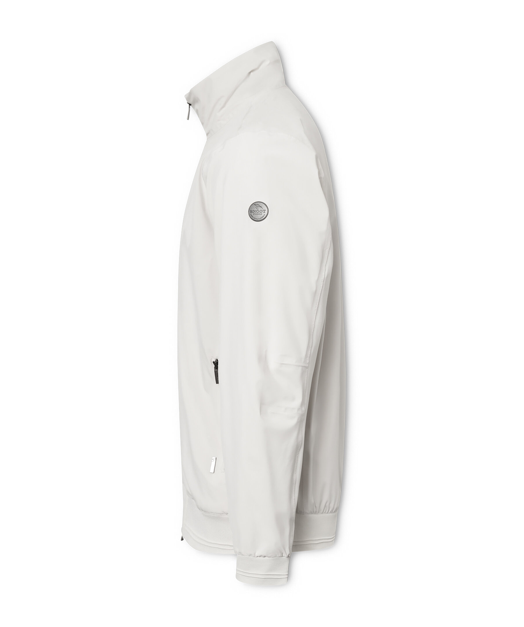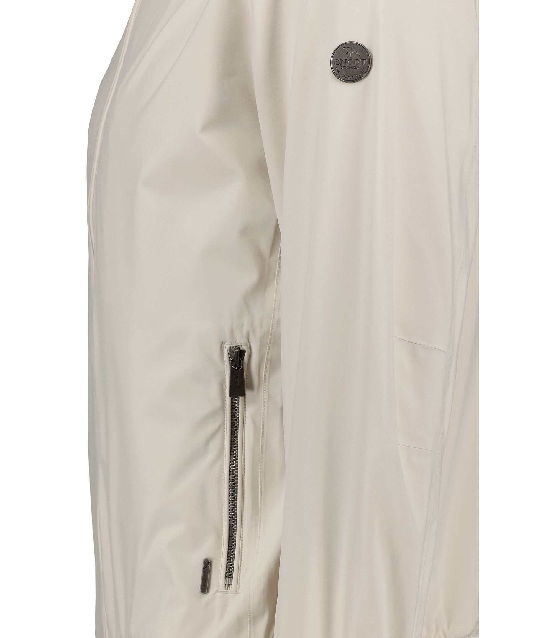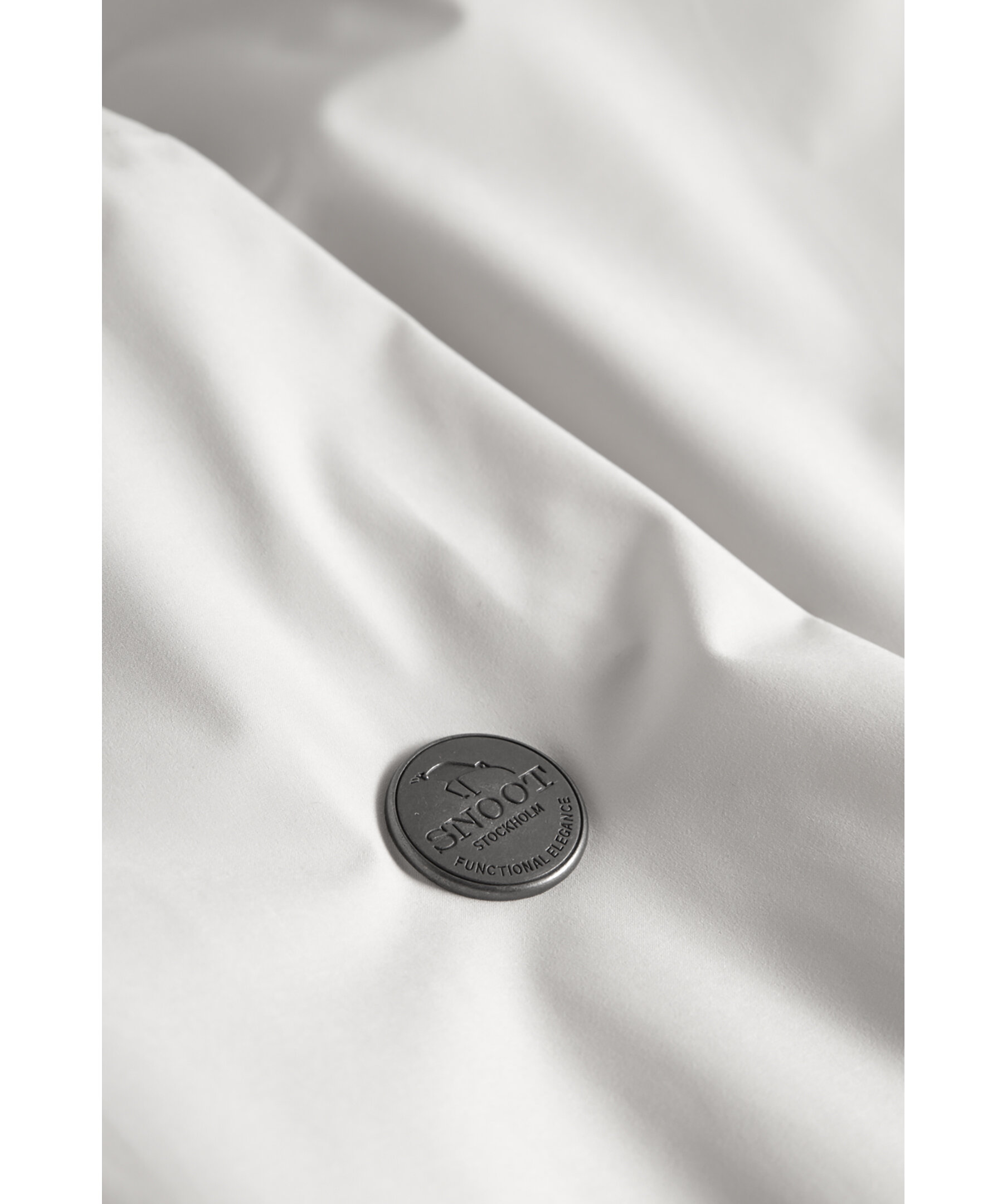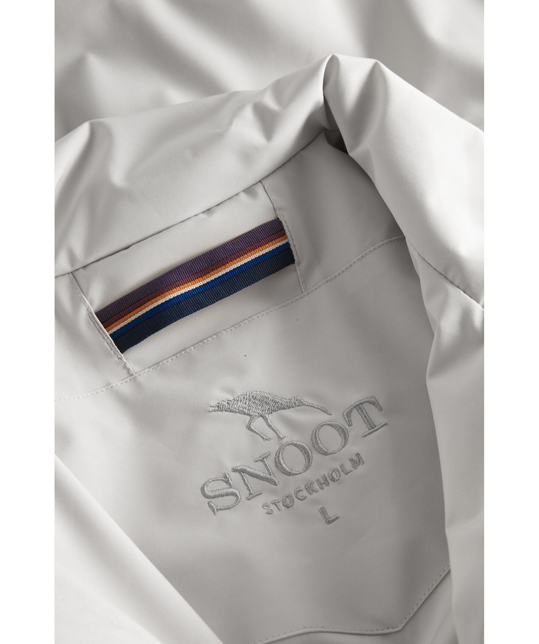 Sandfärgad jacka från Snoot. Stängs med tvåvägsdragkedja. Två sidfickor med dragkedja. Ribbstickade muddar vid ärm- och plaggslut. Liten rund metallogotyp på vänster ärm. Tillverkad i en polyesterblandning.