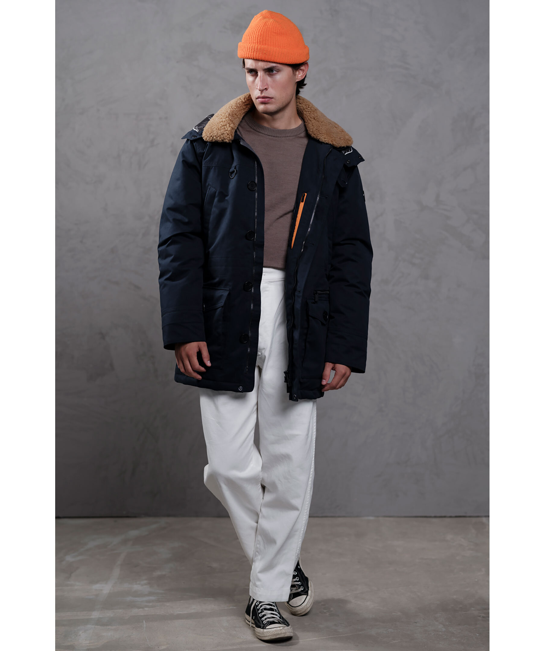 Livigno Classico är en storsäljare som vi har förbättrat år efter år, och det här är vår bästa version hittills. Skaltyget är polyester nylonblandning 15K/15K, helt vattentät, hel tejpade sömmar, vi höll inte tillbaka någonting. Sömmarna är hel tejpade för högsta regnskydd. Fyllningen 90% dun och 10% fjädrar håller dig väldigt varm och bekväm hela vintern. Naturligtvis har vi lagt till alla Snoots signaturdetaljer, som de bekväma fickorna, metallmärket på armen, avtagbar huva och karbinhake i bröstfickan. Det här är vår bästa parka hittills!