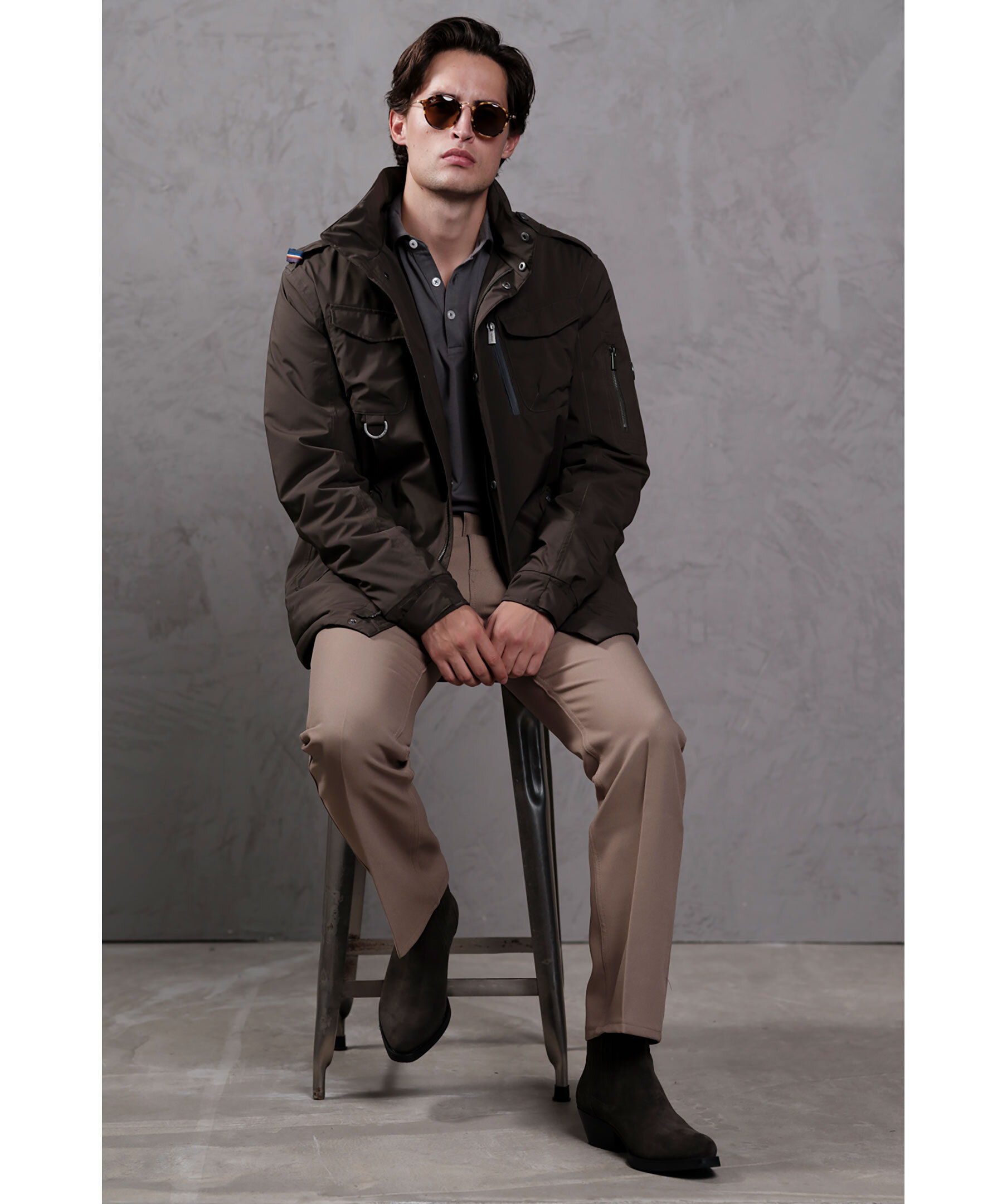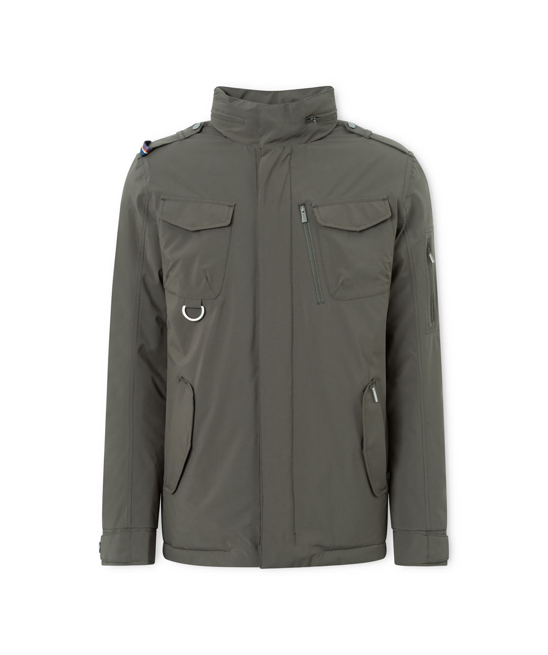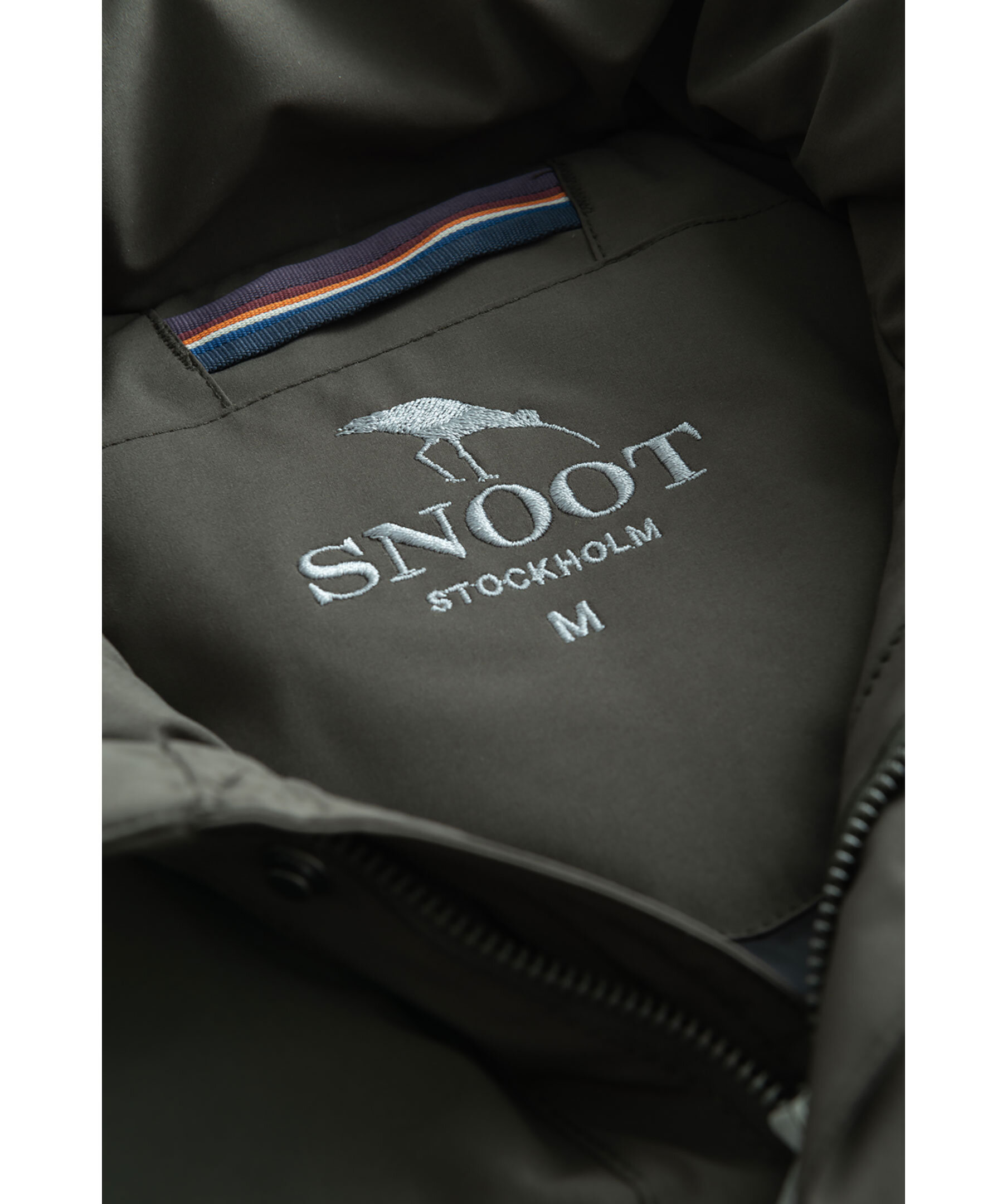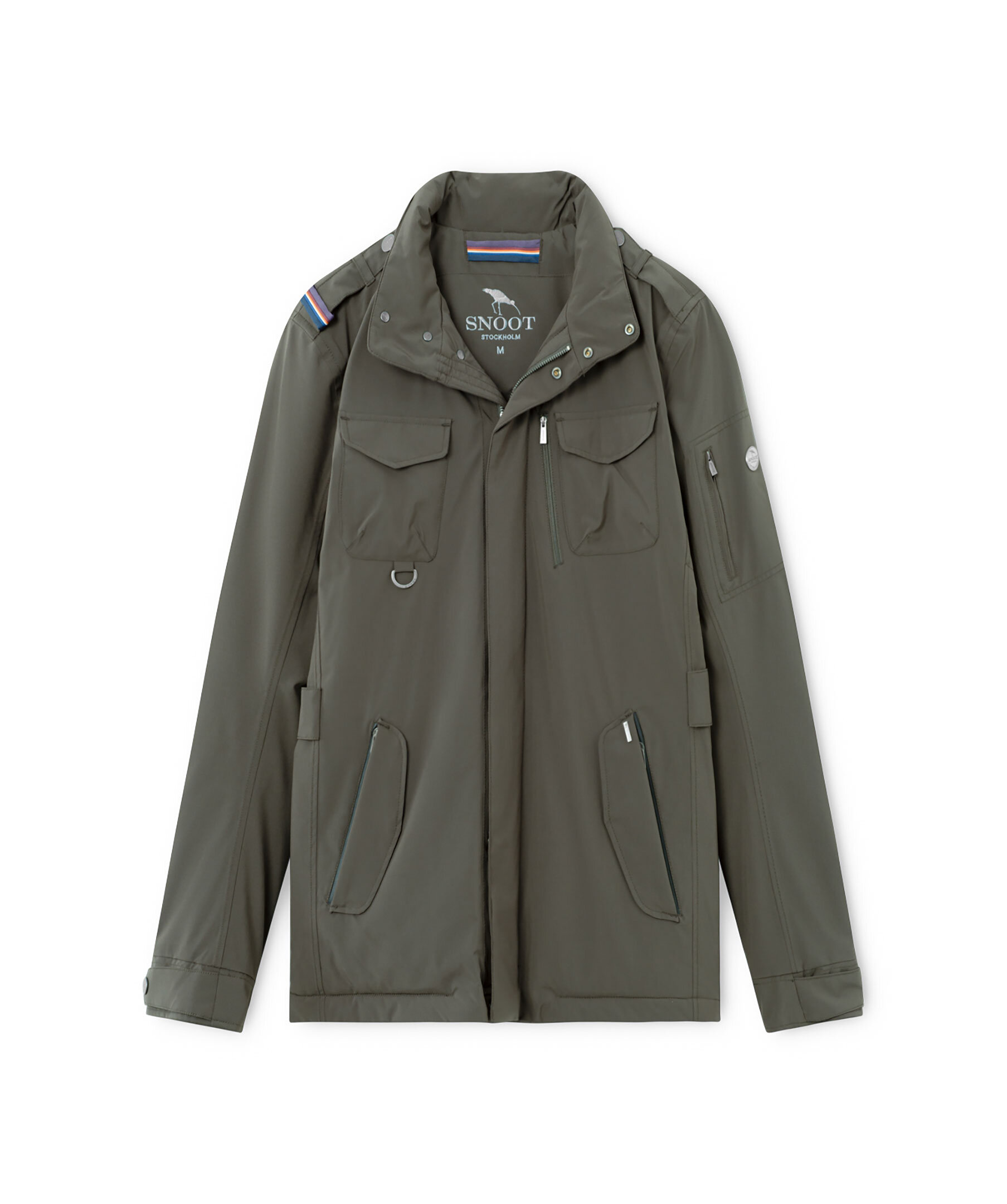 Vi introducerar vinterversionen av Livorno-jackan. Inspirerad av våra klassiska M65-jackor med totalt fem fickor framtill, varav tre har vattentäta dragkedjor. I kragen är jackan försedd med en gömd huva. Vi behåller våra signaturer på den här jackan som logotypstiftet i metall och karbinkroken. Alla sömmar är tejpade för att göra jackan helt vattentät.