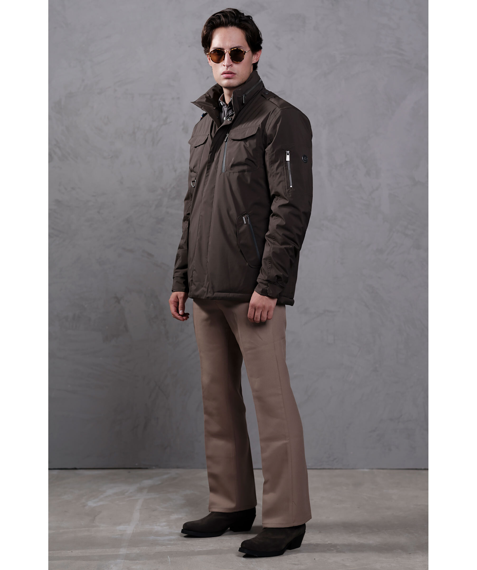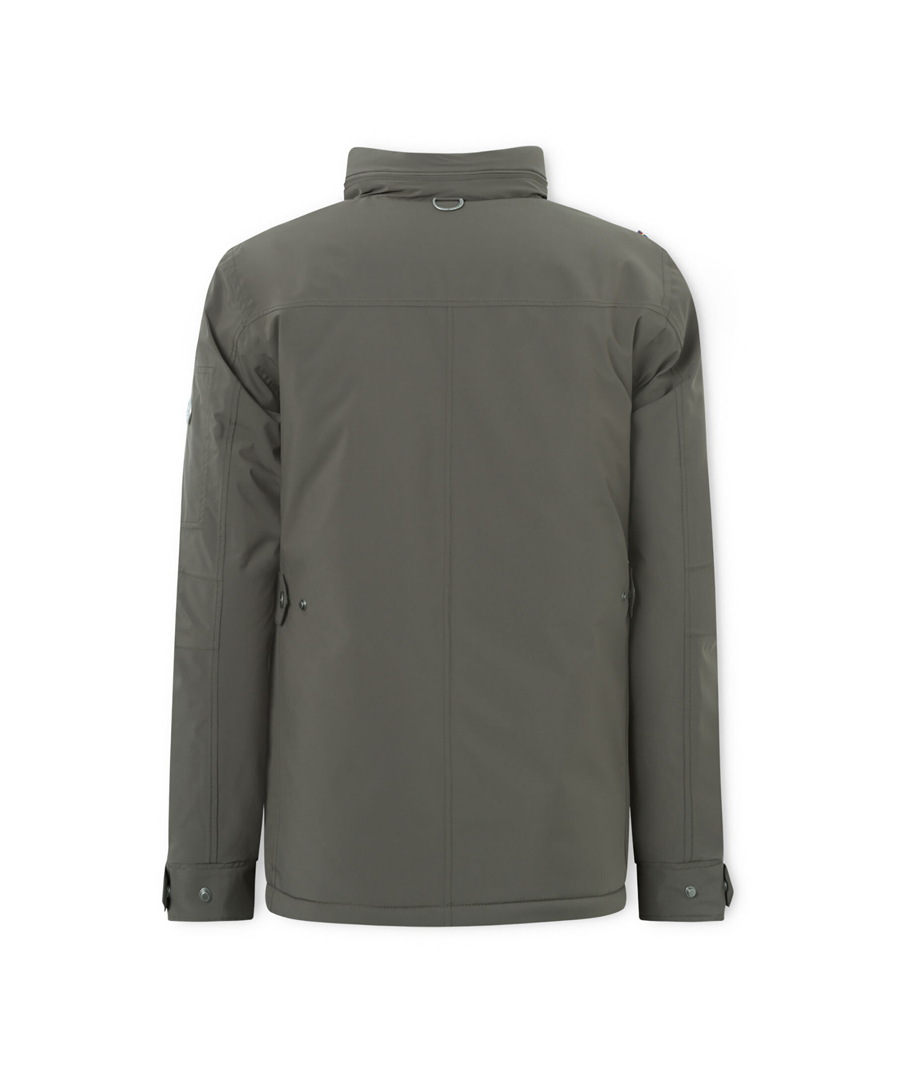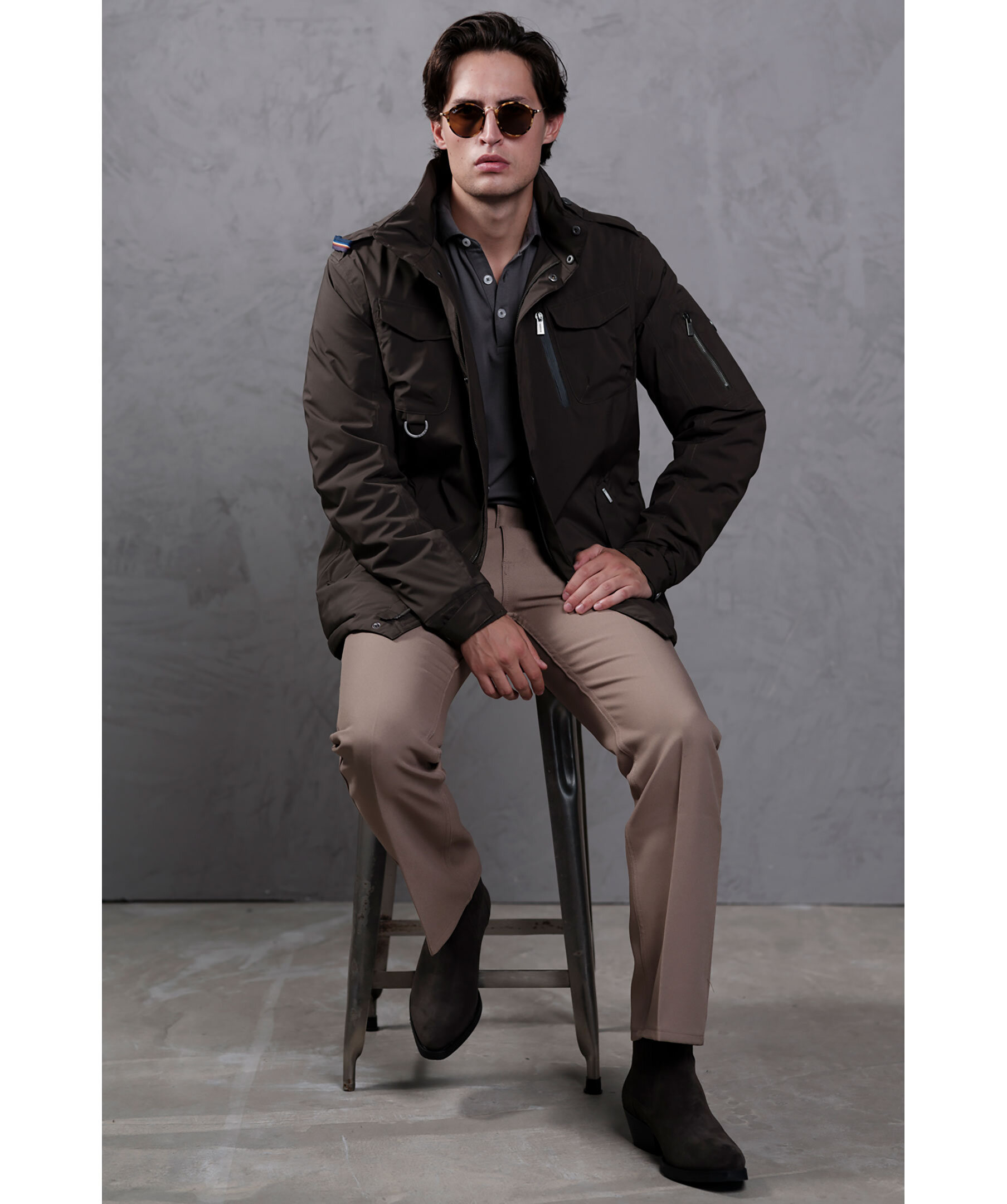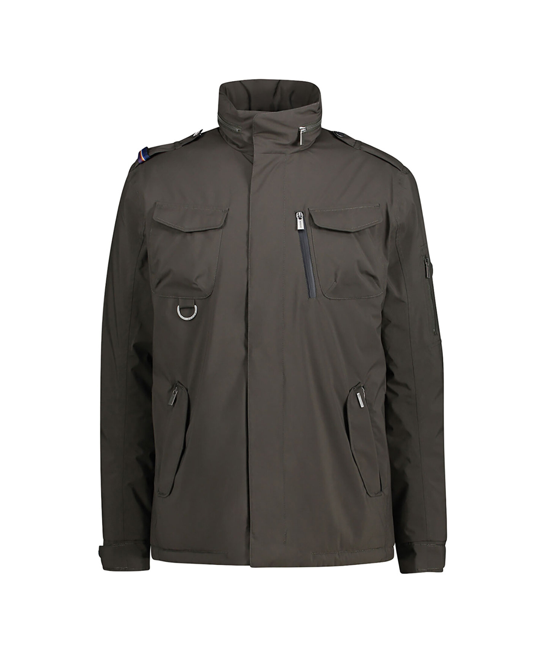 Vi introducerar vinterversionen av Livorno-jackan. Inspirerad av våra klassiska M65-jackor med totalt fem fickor framtill, varav tre har vattentäta dragkedjor. I kragen är jackan försedd med en gömd huva. Vi behåller våra signaturer på den här jackan som logotypstiftet i metall och karbinkroken. Alla sömmar är tejpade för att göra jackan helt vattentät.