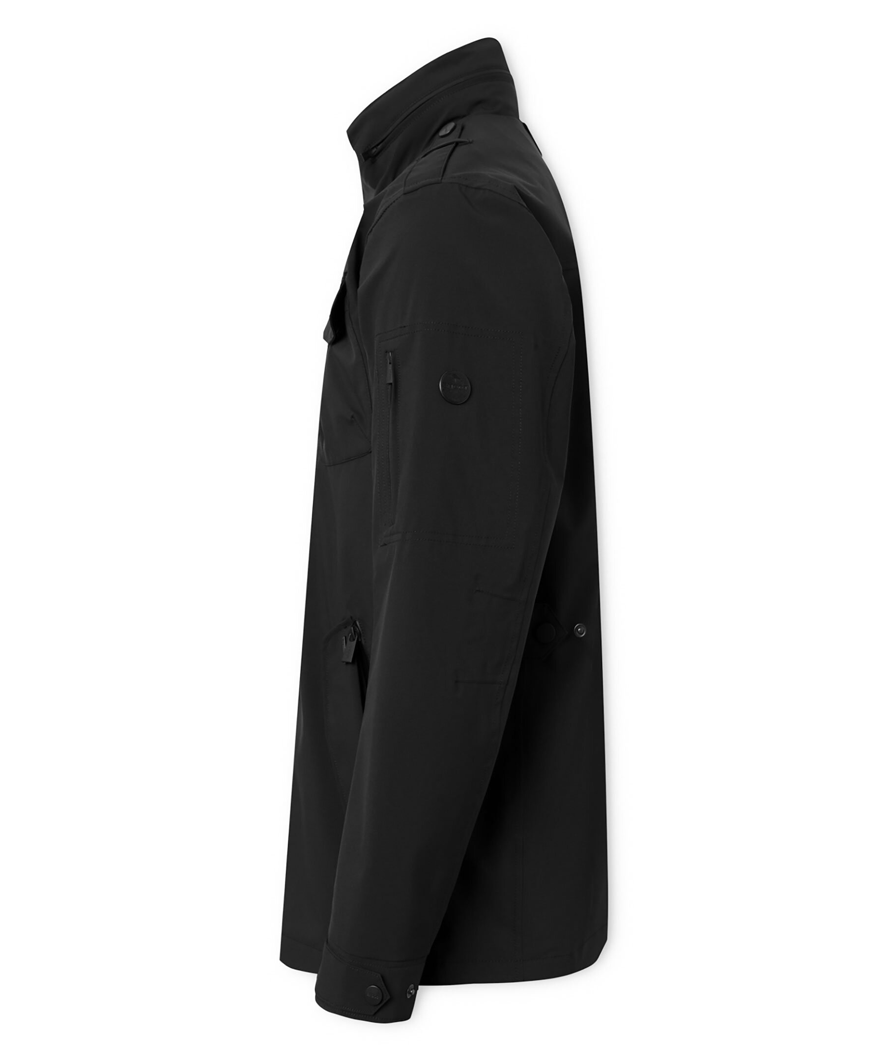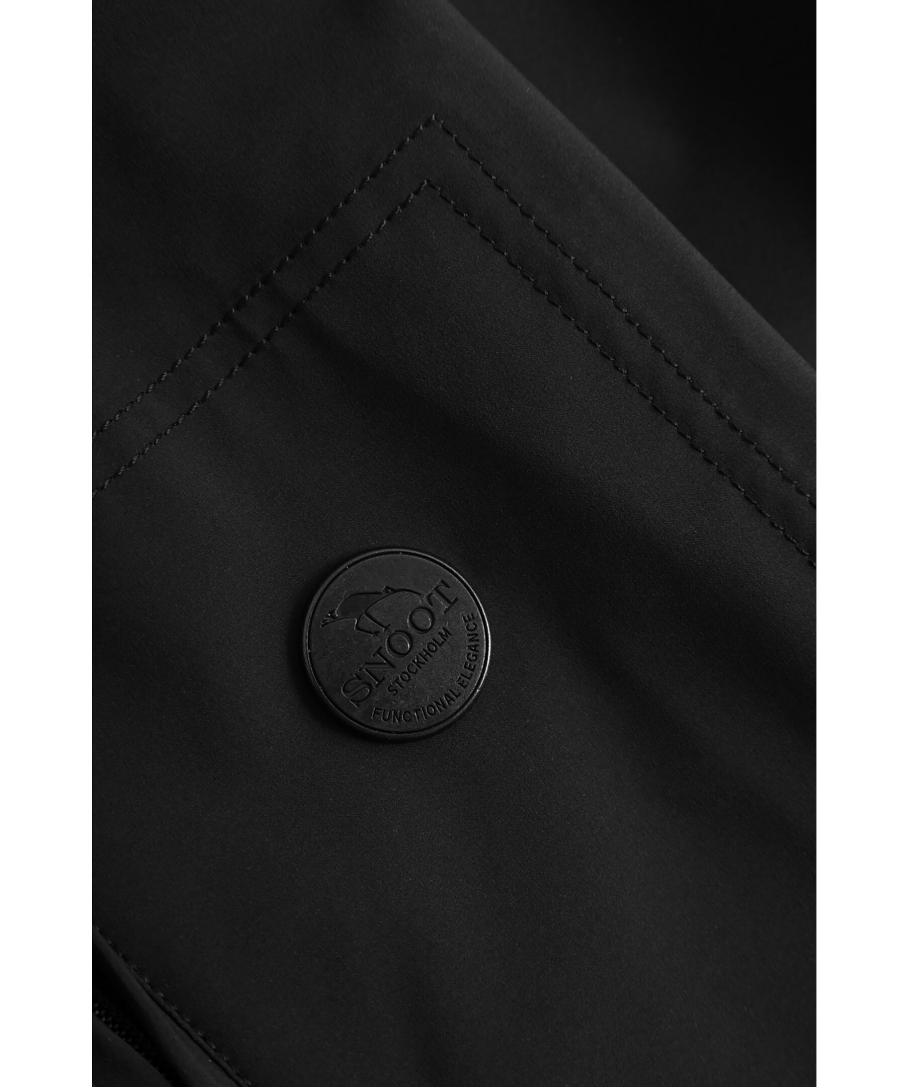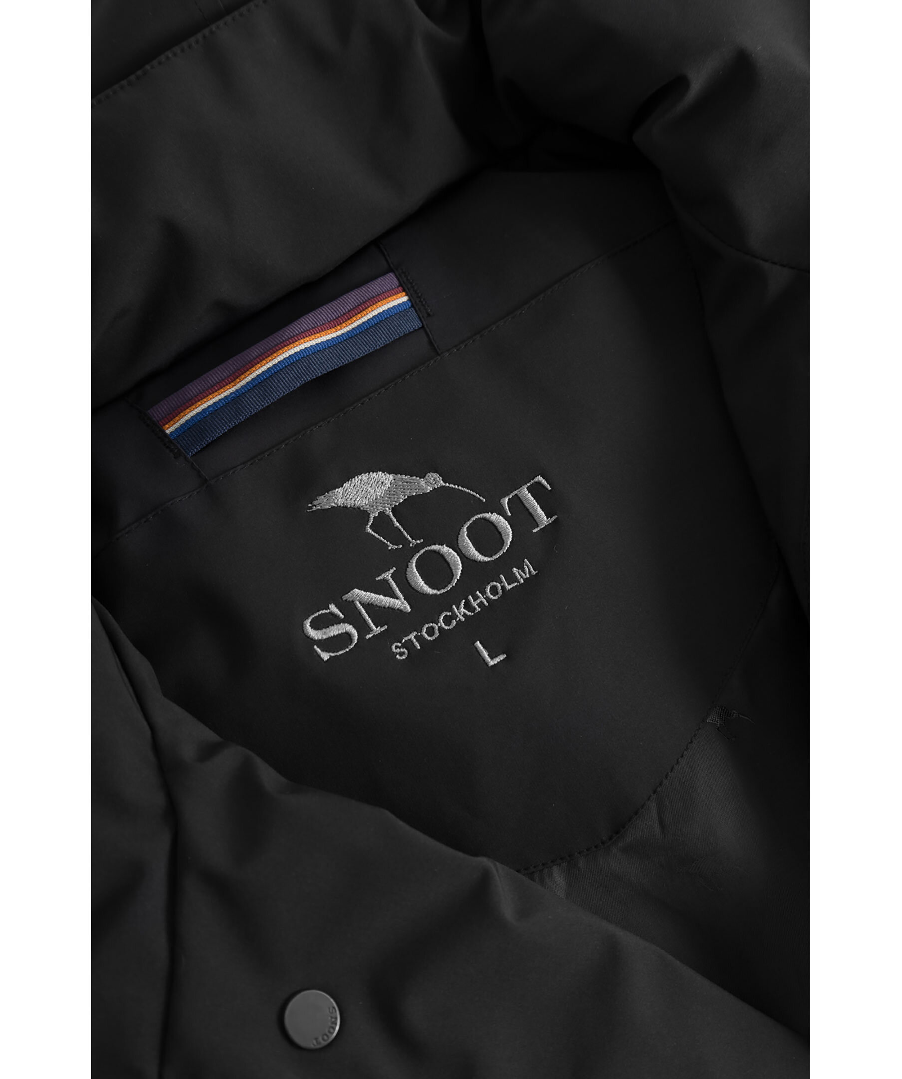 Svart jacka från Snoot. Stängs framtill med dragkedja och tryckknappar. Två bröstfickor som stängs med tryckknappar och en som stängs med dragkedja. Sidfickor som stängs med dragkedja och tryckknappar. Ficka med dragkedja på vänster ärm, logotyp i metall. Justerbara ärmslut. Utvikbar luva i kragen.