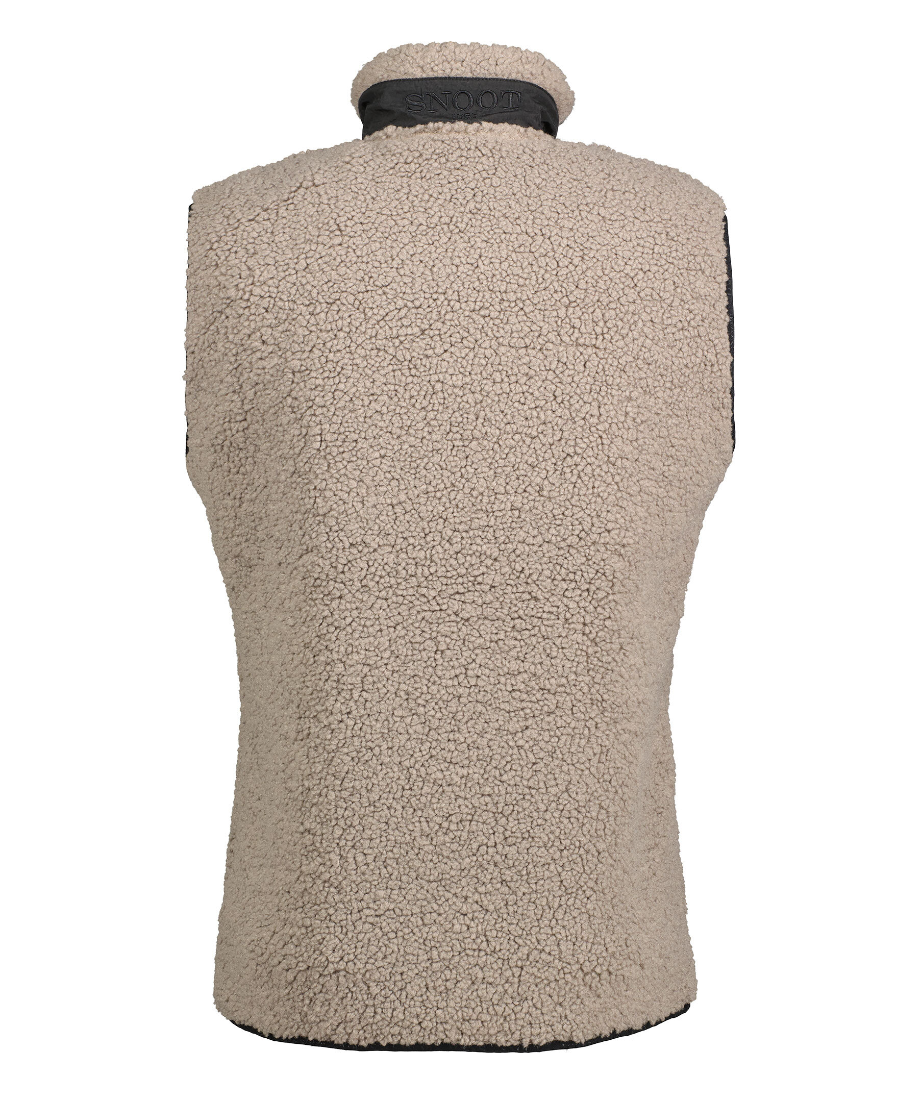 Gråbeige pileväst från Snoot med vävda detaljer i svart. Stängs framtill med tvåvägsdragkedja. Bröstficka i svart med logotyp som stängs med dragkedja. Två sidfickor som stängs med dragkedja. Broderad logotyp i nacken, smal elastisk mudd i ärm-plaggslut och längst dragkedjan med logotyper.