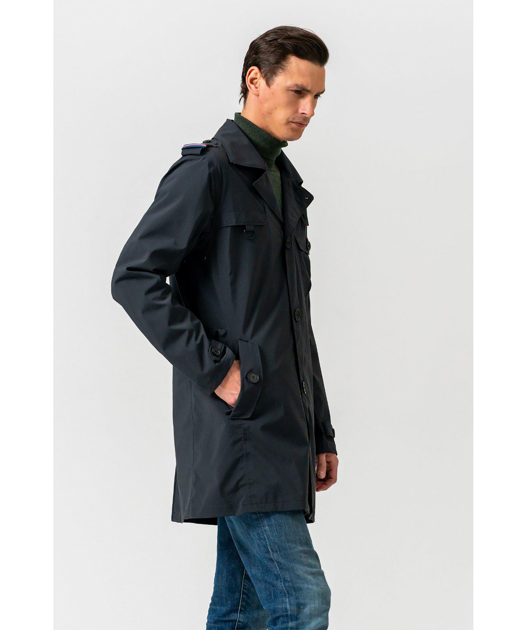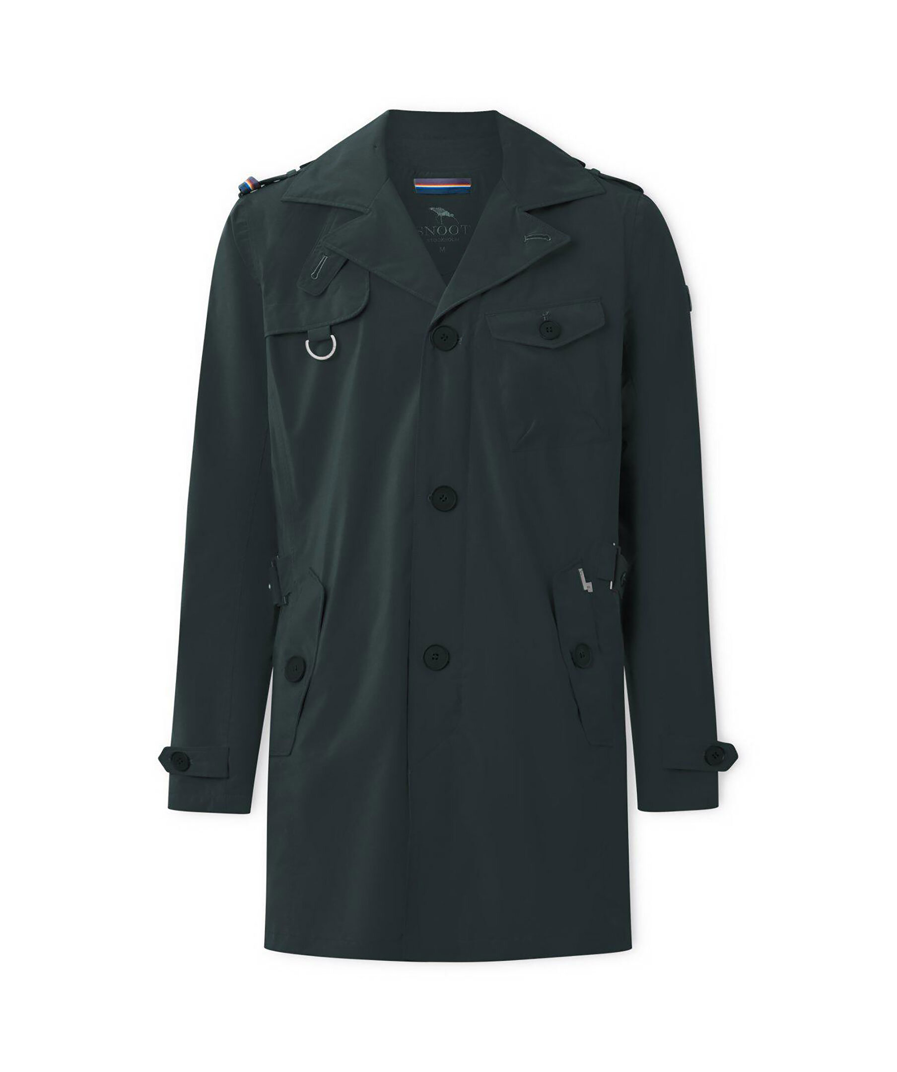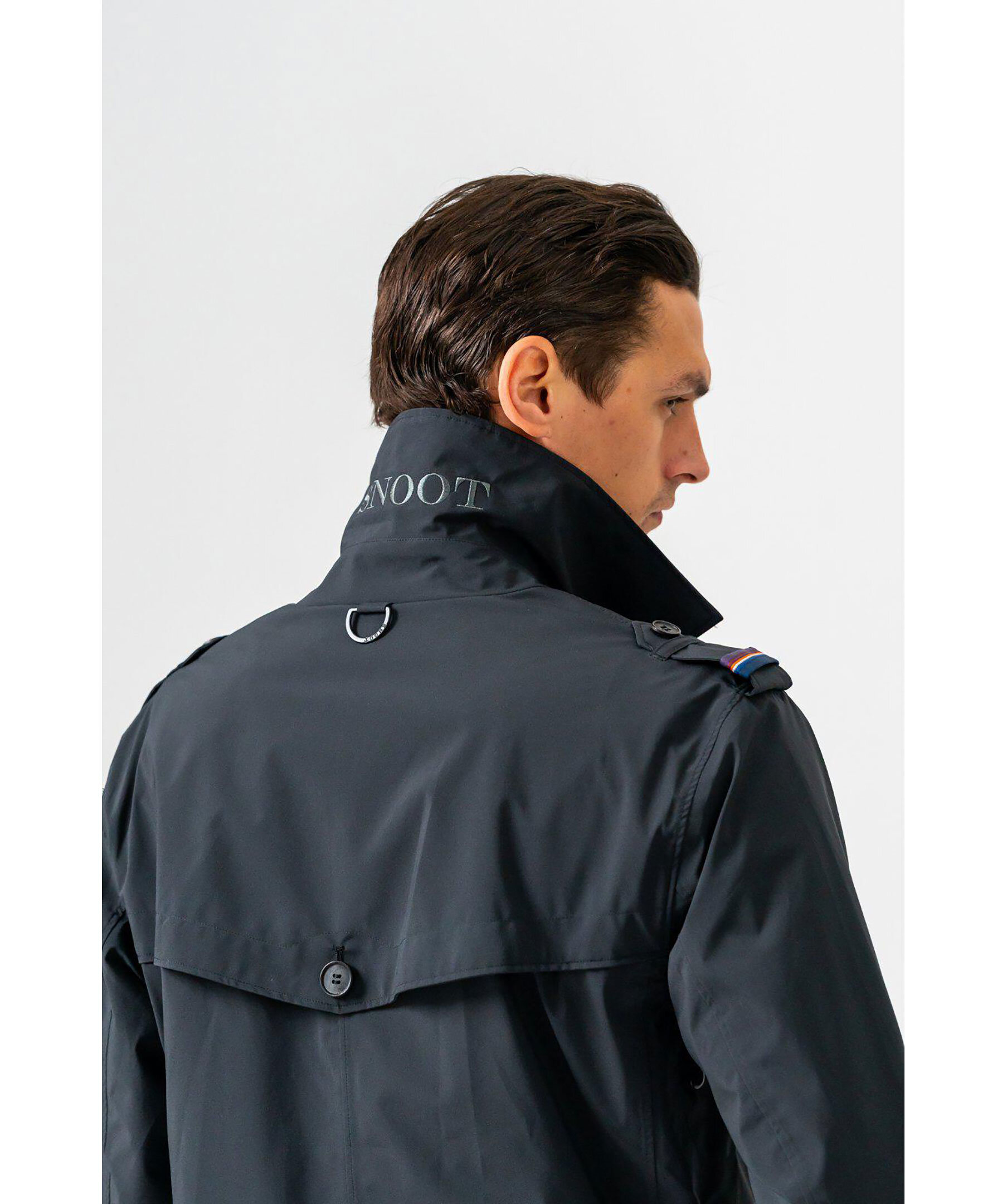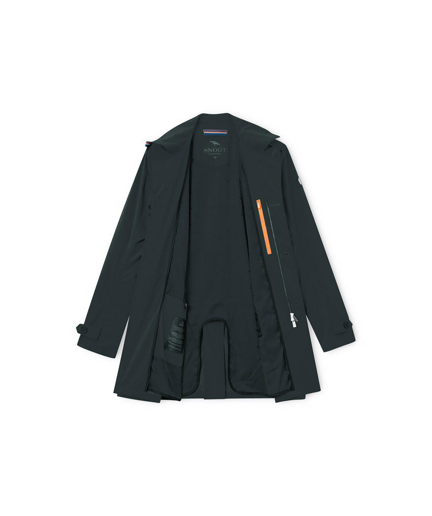 Svart trenchcoat från Snoot. Stängs framtill med dragkedja och knappar. Figurnära, modern passform, praktiska fickor, stormskydd. Justerbar i midjan. Axelklaffar.