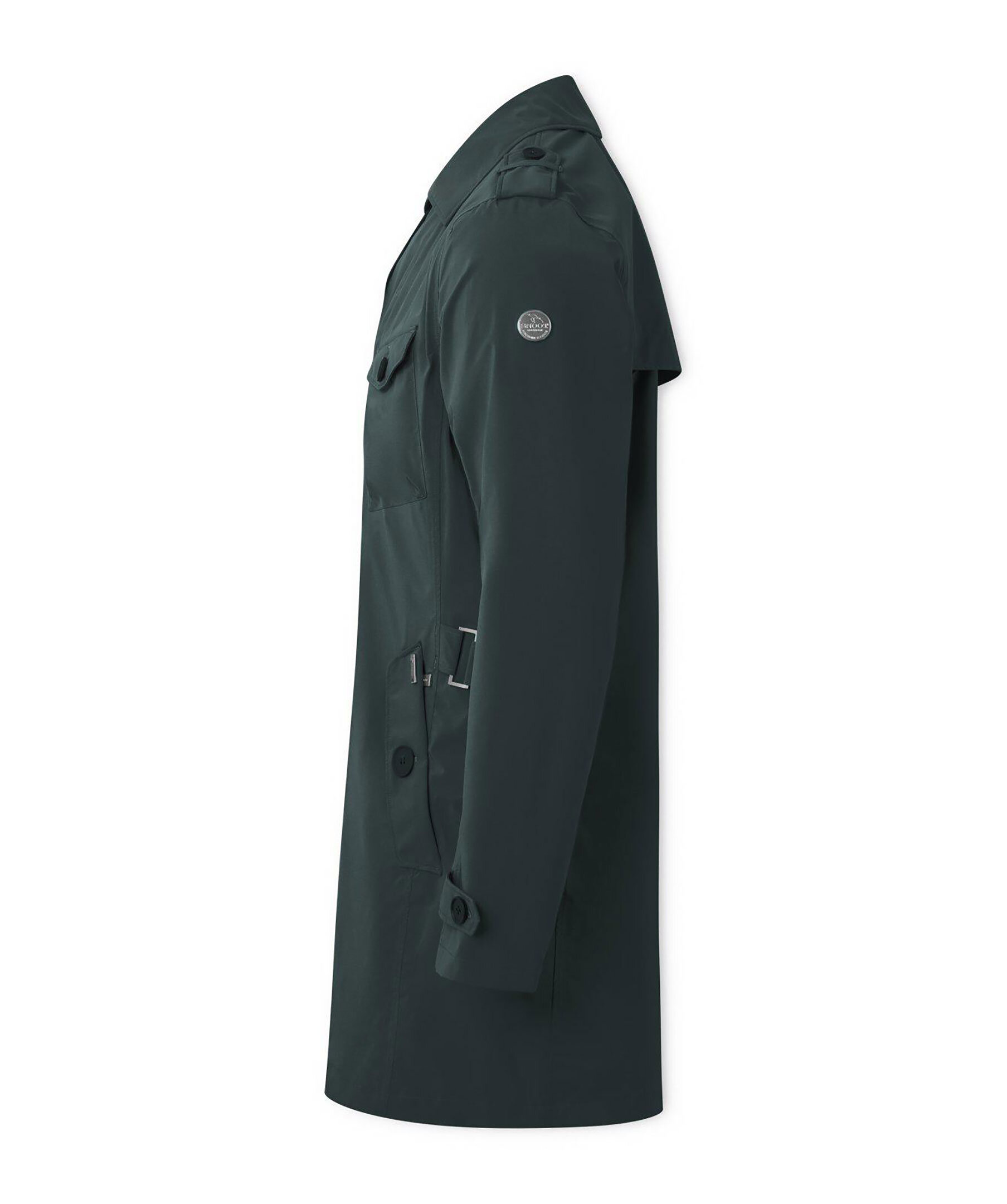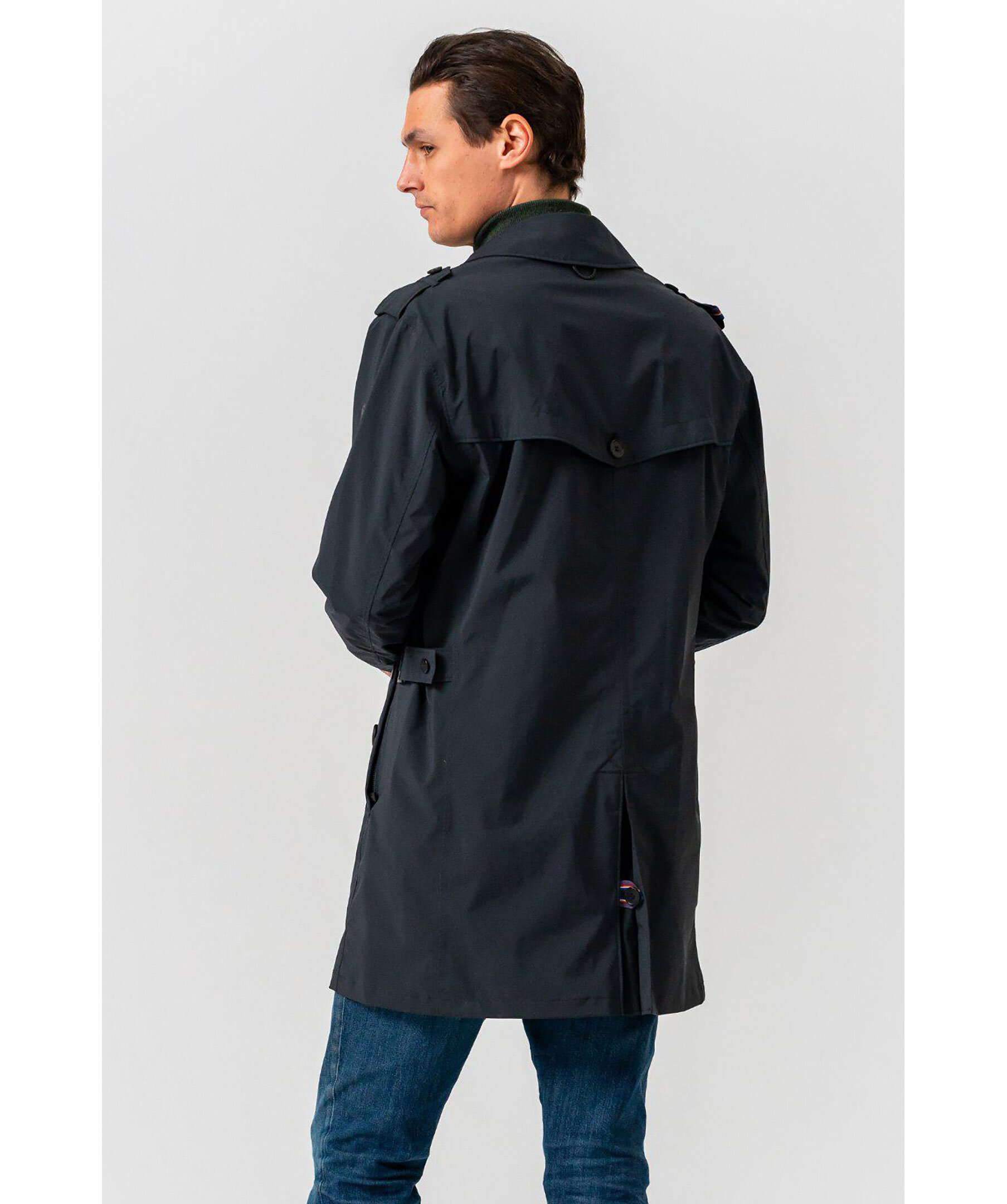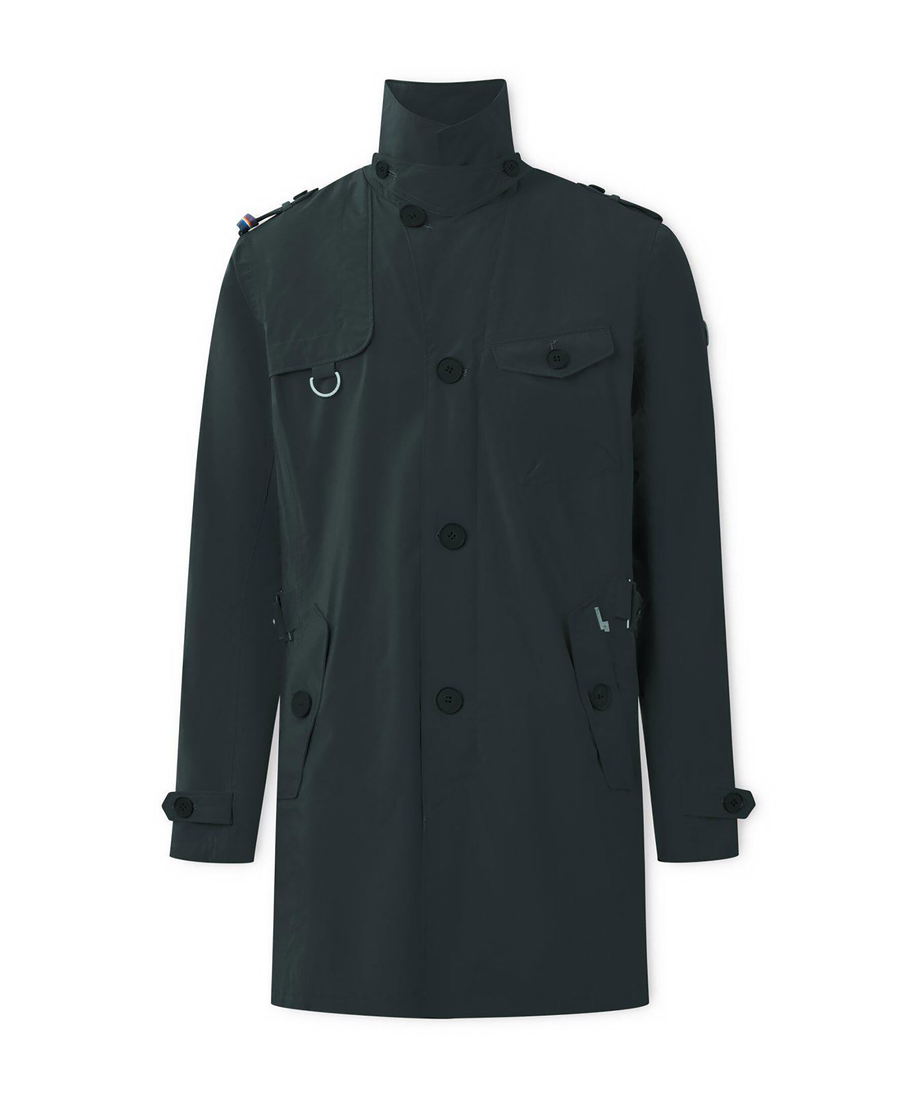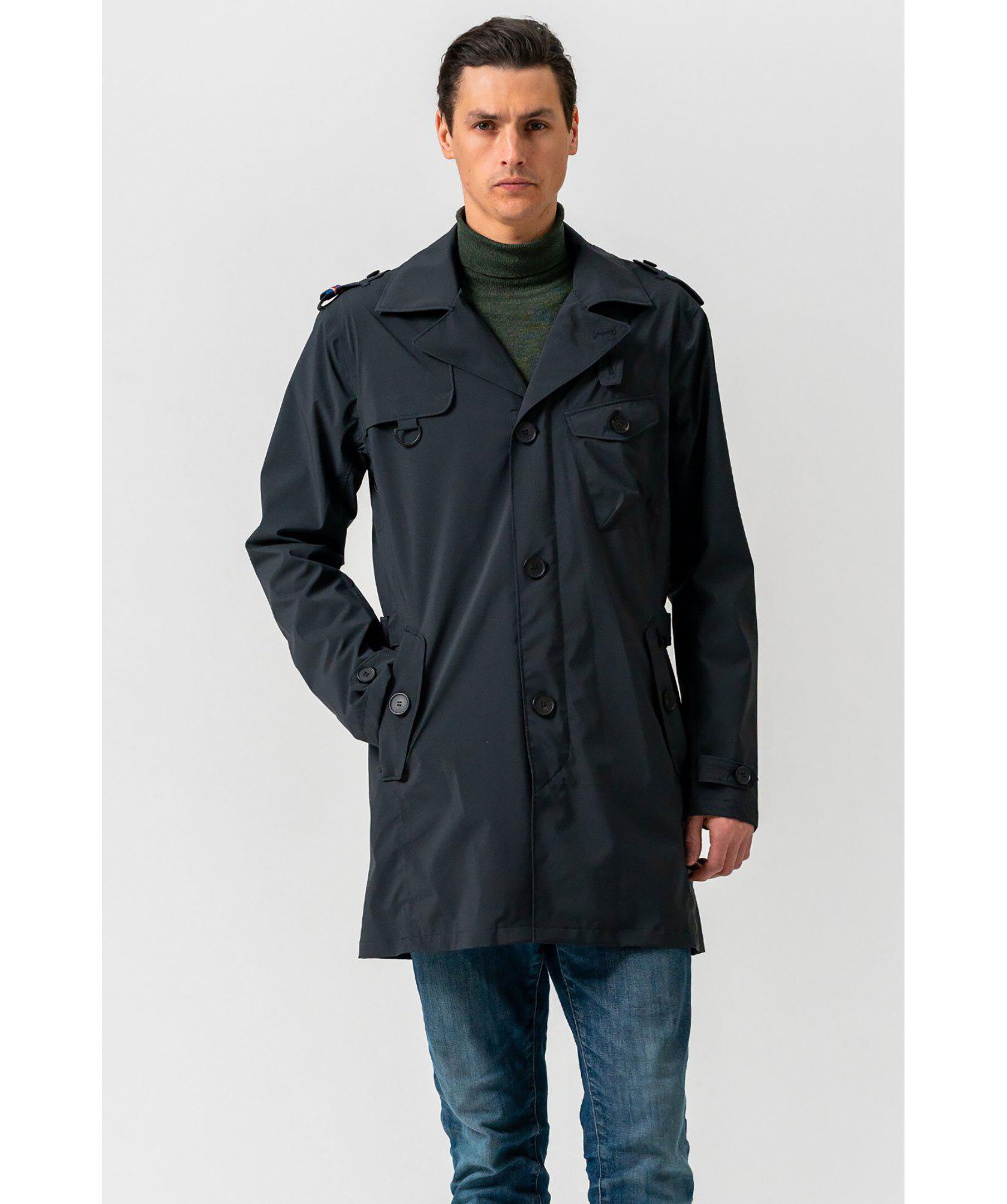 Svart trenchcoat från Snoot. Stängs framtill med dragkedja och knappar. Figurnära, modern passform, praktiska fickor, stormskydd. Justerbar i midjan. Axelklaffar.