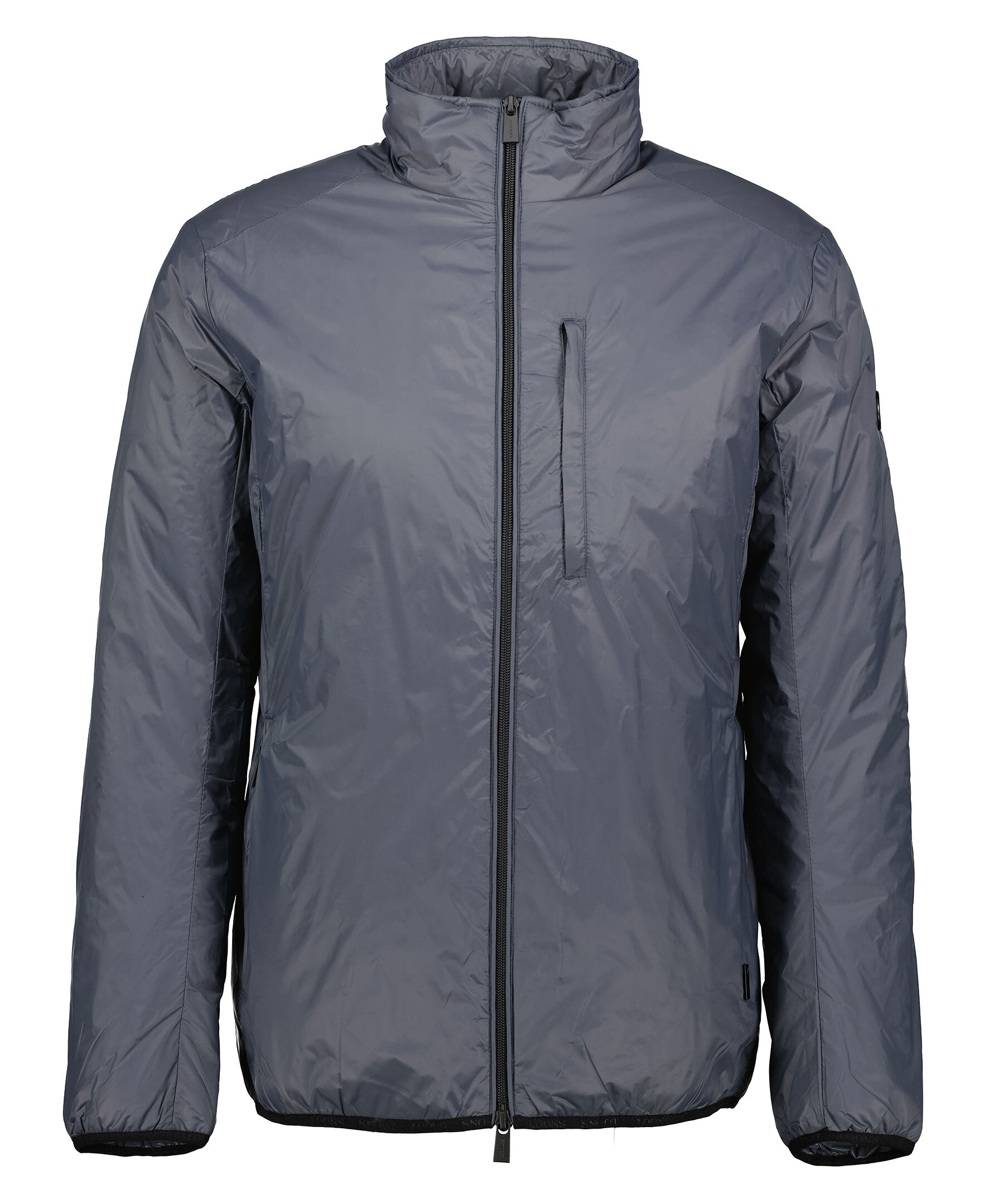 Mörkgrå jacka från Snoot. Stängs framtill med dragkedja. Bröstficka på vänster sida som stängs med dragkedja. Två fickor framtill som stängs med dragkedja. Logotyp i metall på vänster ärm. smala elastiska muddar i svart med logotyp i ärm- och plaggslut. Jackan är vattenavstötande.