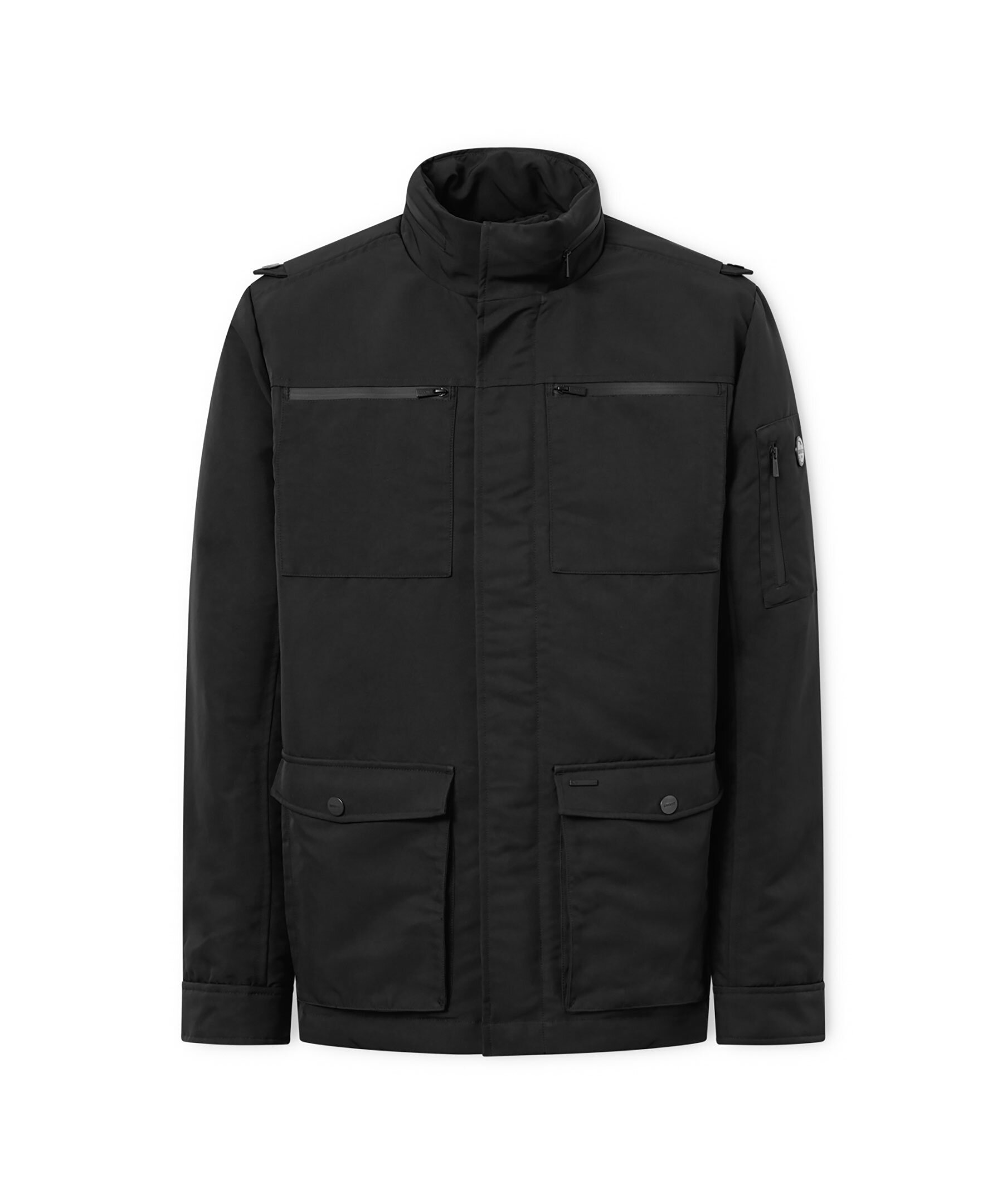 Vi introducerar Trissino-jackan. Inspirerad av våra klassiska M65-jackor i det traditionella SNOOT-utseendet. I kragen är jackan utrustad med en hopfällbar huva. Det finns totalt sex fickor på framsidan där bröstfickorna är kombinerade med vattentäta dragkedjor tillsammans med en vattentät dragkedja på ärm. I kragen är jackan utrustad med en hopfällbar huva, gömd under en vattentät dragkedja. Vi behåller våra signaturer på denna jacka, såsom metalllogomärket, D-ringen och karbinhaken inuti den nedre vänstra fickan.