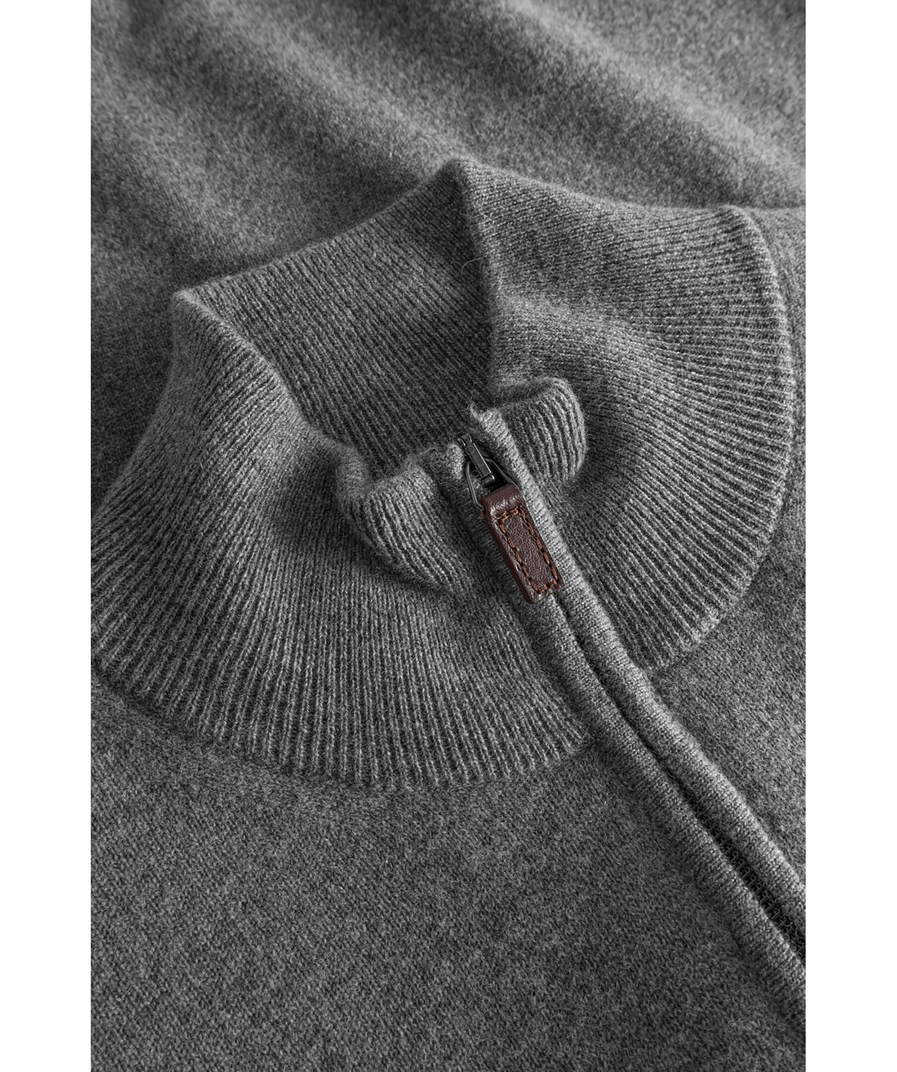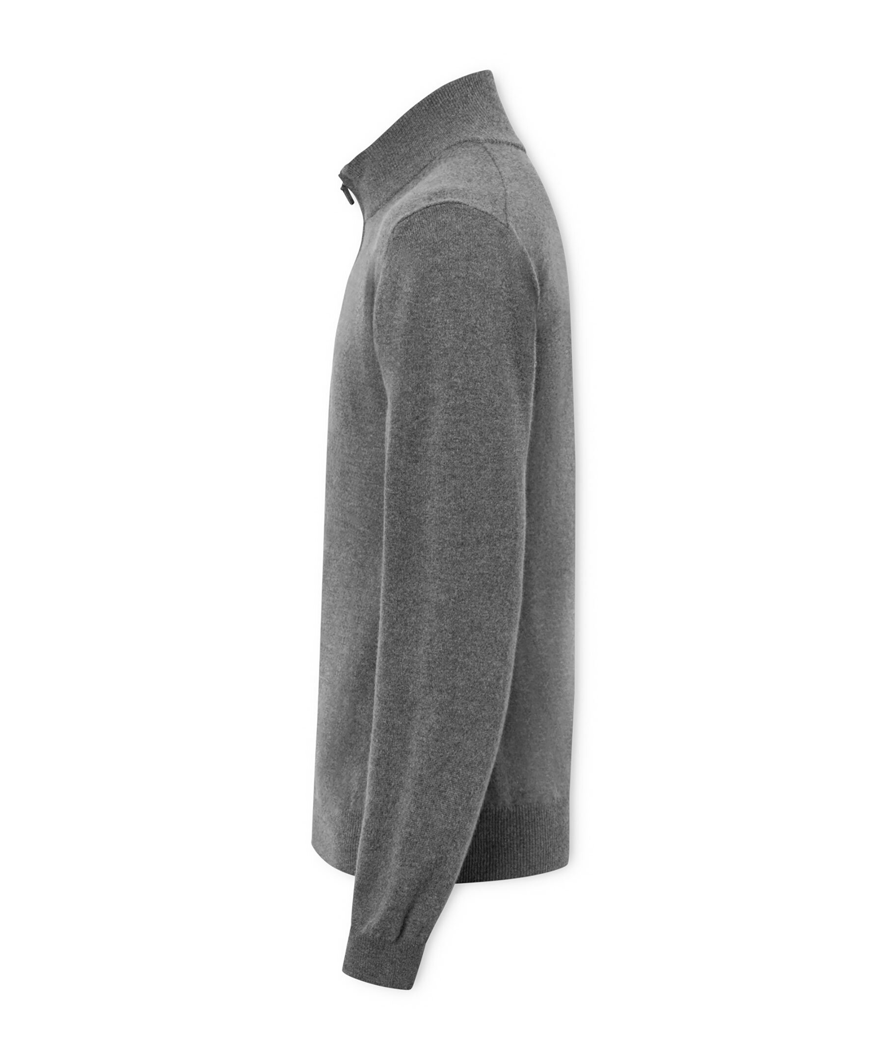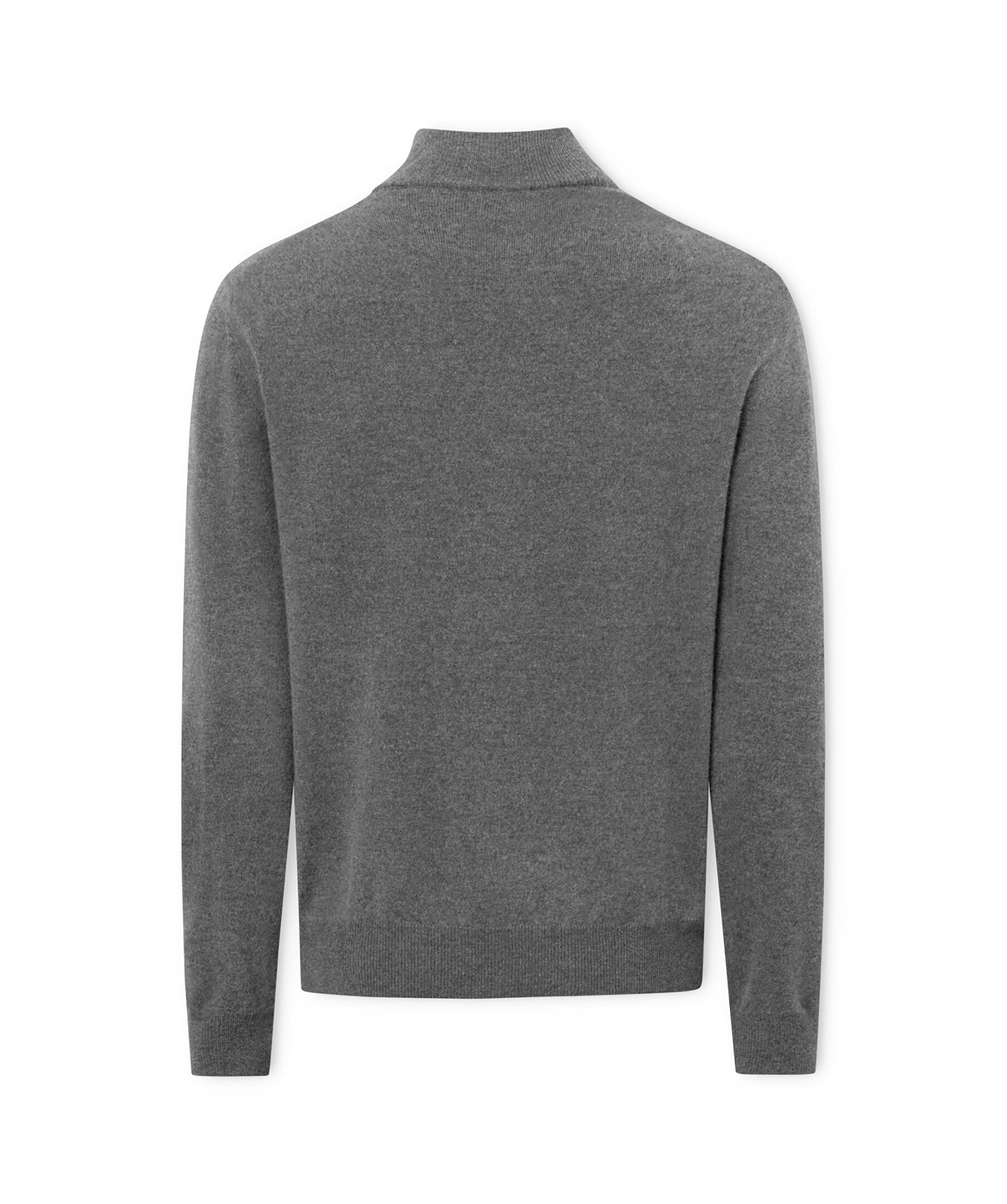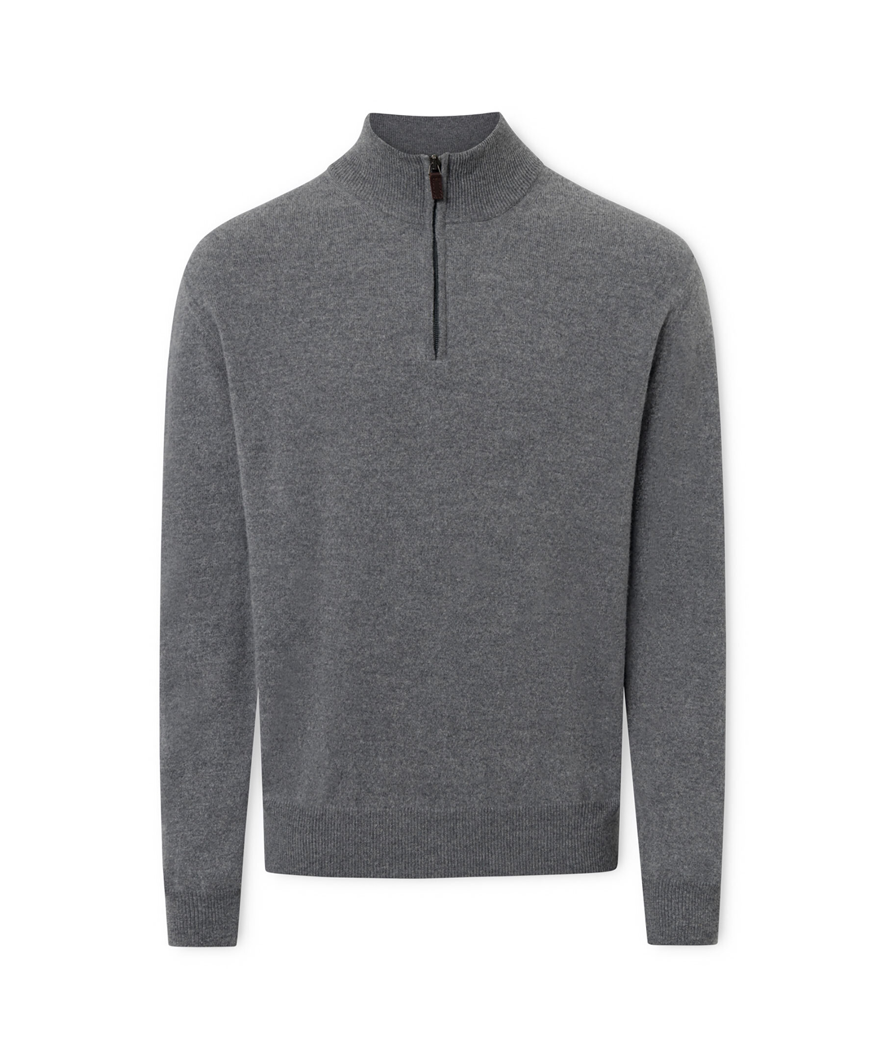 En bekväm stickad tröja med en half zipt dragkedja, ribbstickade muddar och nederkant. Kragen är tillräckligt hög för att ge skönt skydd och värme. Den är tillverkad i Europa med europeiskt garn.