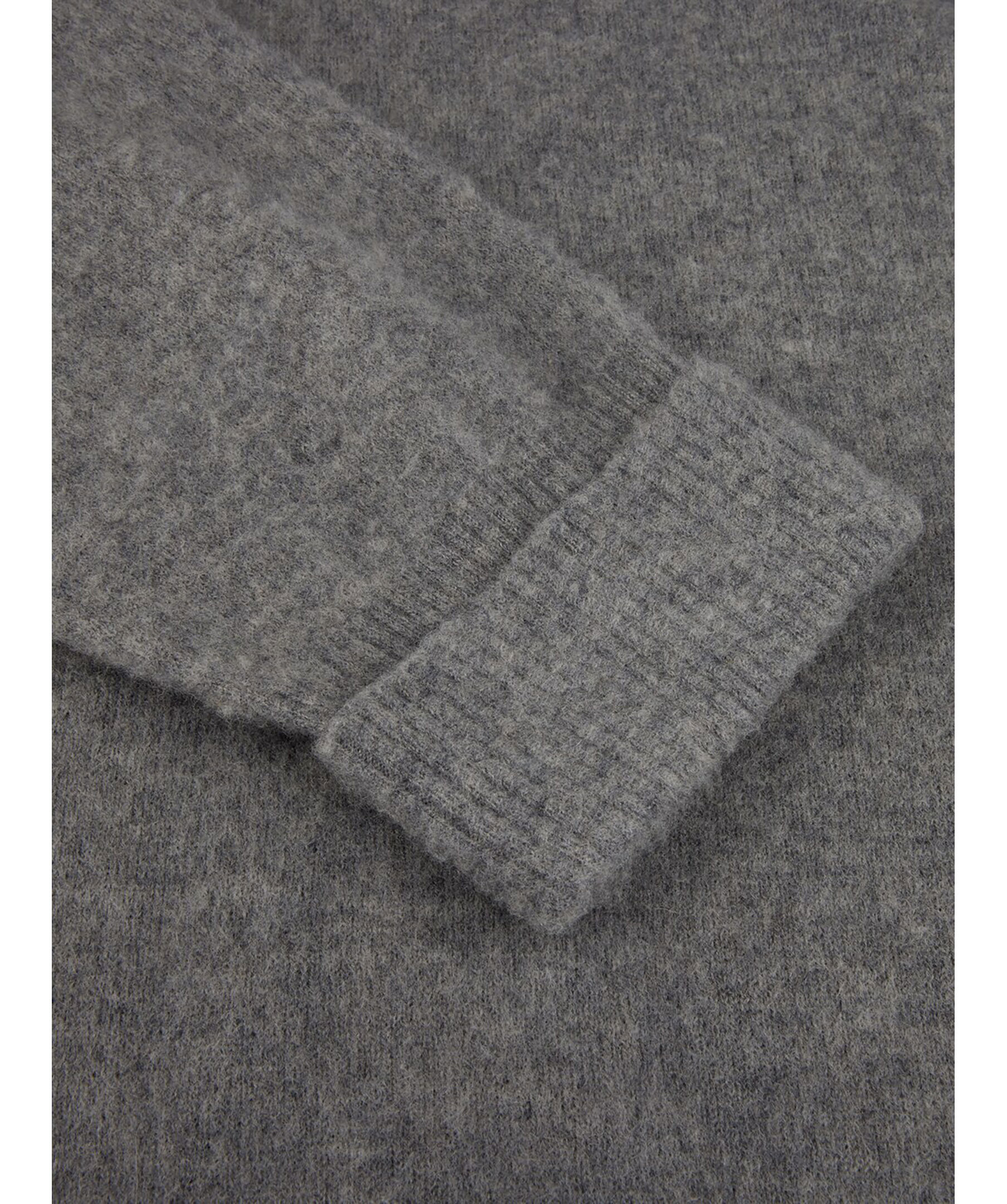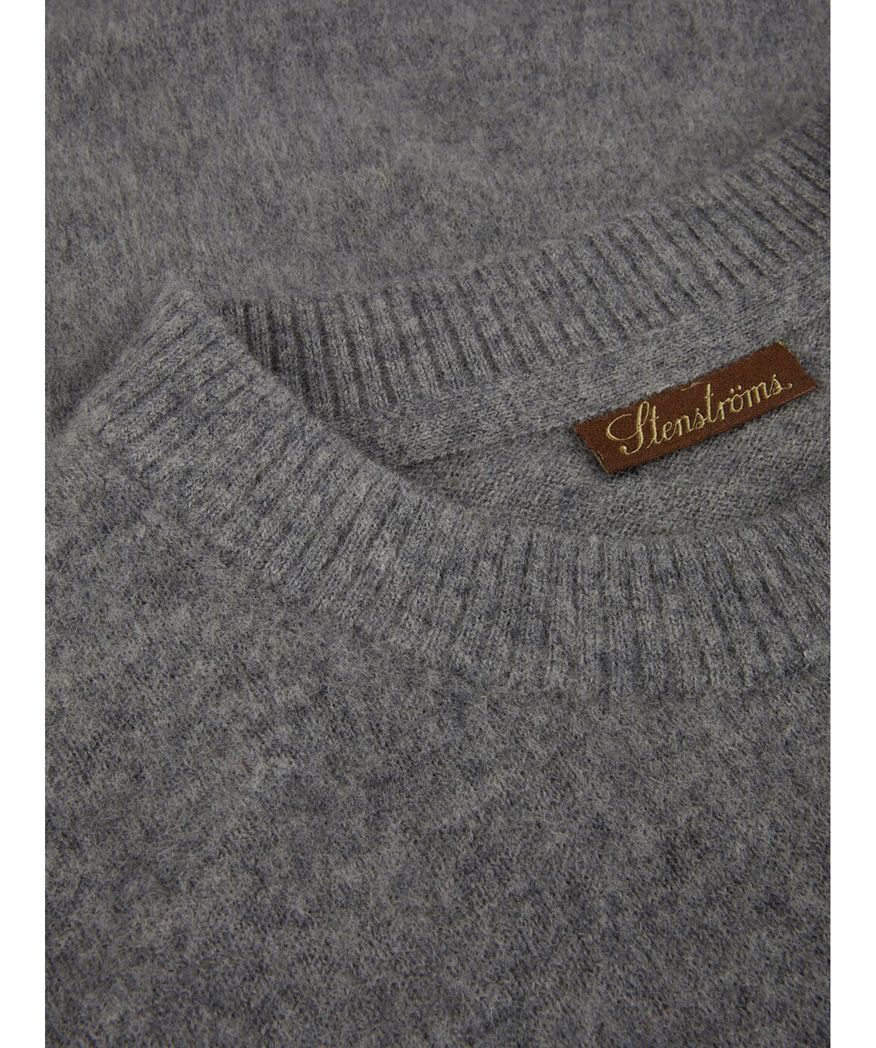 Grå, stickad tröja från Stenströms. Tröjan är tillverkad av merinoull och har ribbstickade detaljer vid krage, ärm- och plaggslut.