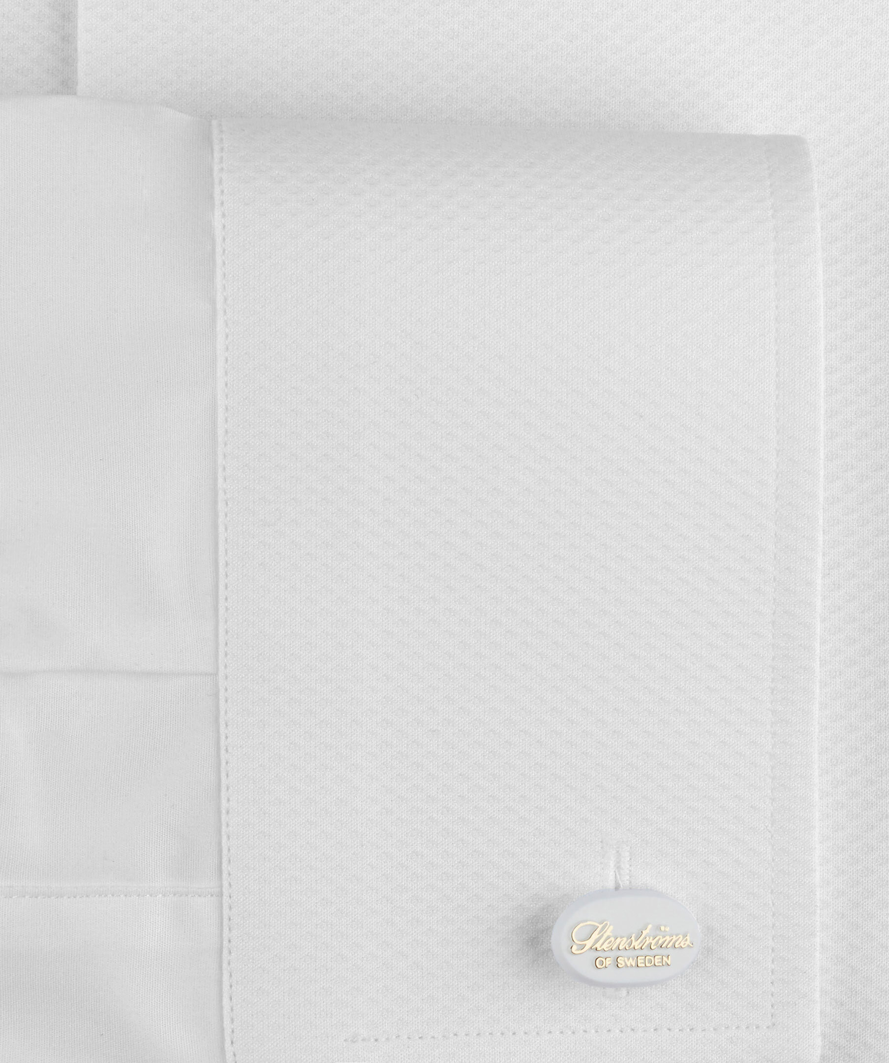 Vit frackskjorta från Stenströms i modell Classic som har en rymlig passform och är gjord av bolull twill med en lyxig bib i pique framtill. Detaljerad med pärl- och guldknappar, med fyra hål för studs, dubbla manschetter och en snibbkrage som passar till fluga.