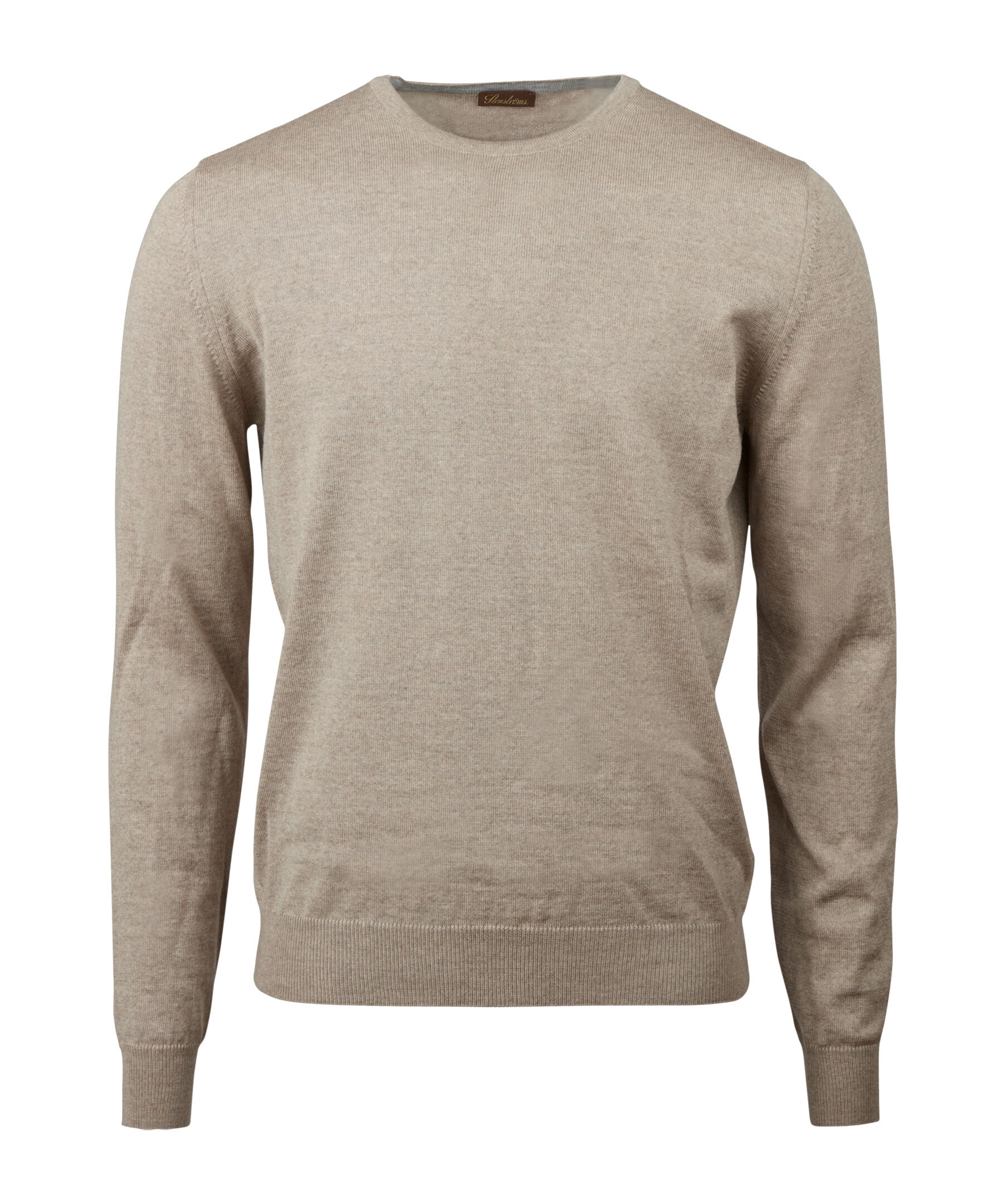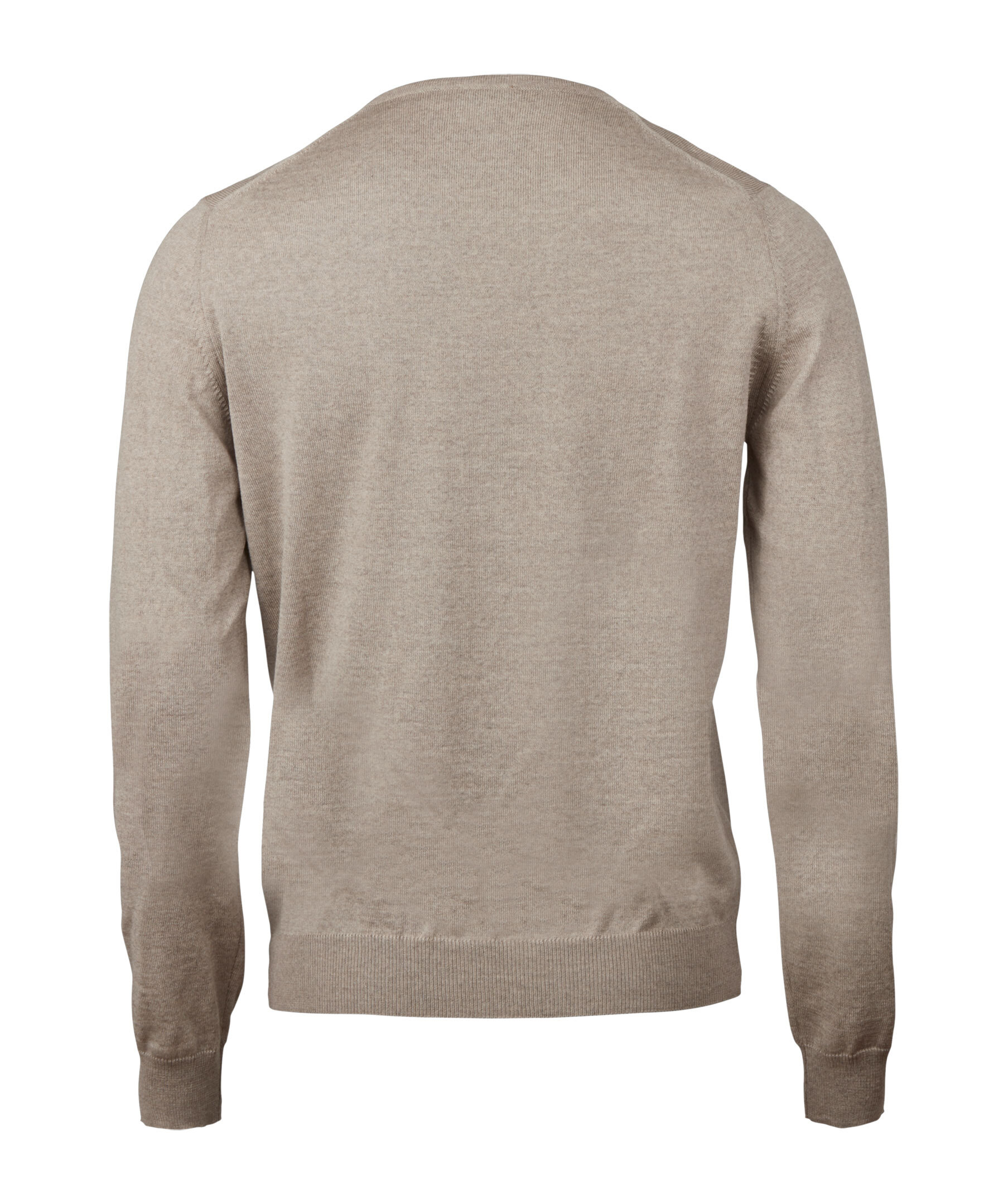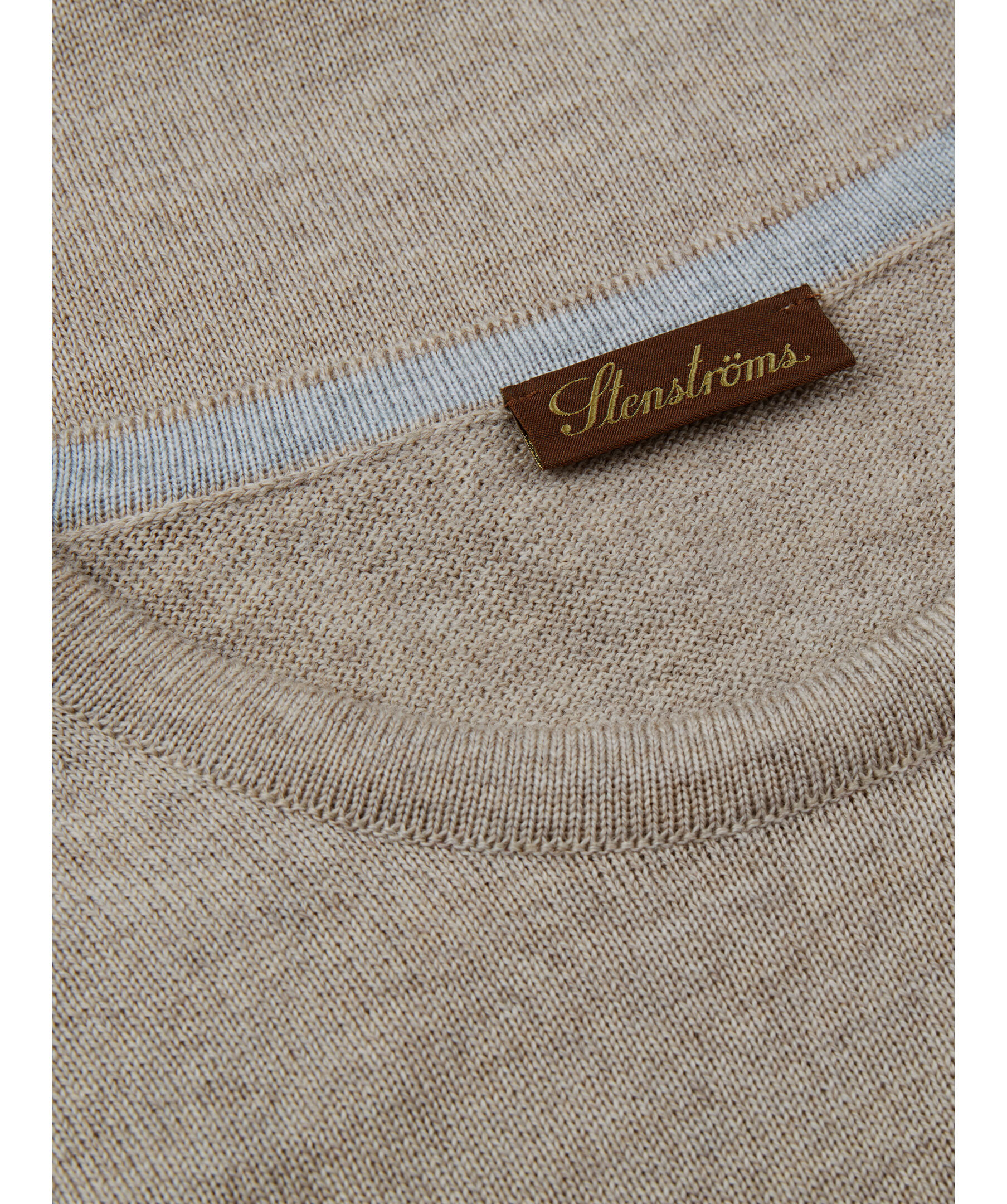 Denna rundhalsade tröja är tillverkad av merinoull och har ribbstickade detaljer vid krage, ärm- och plaggslut.