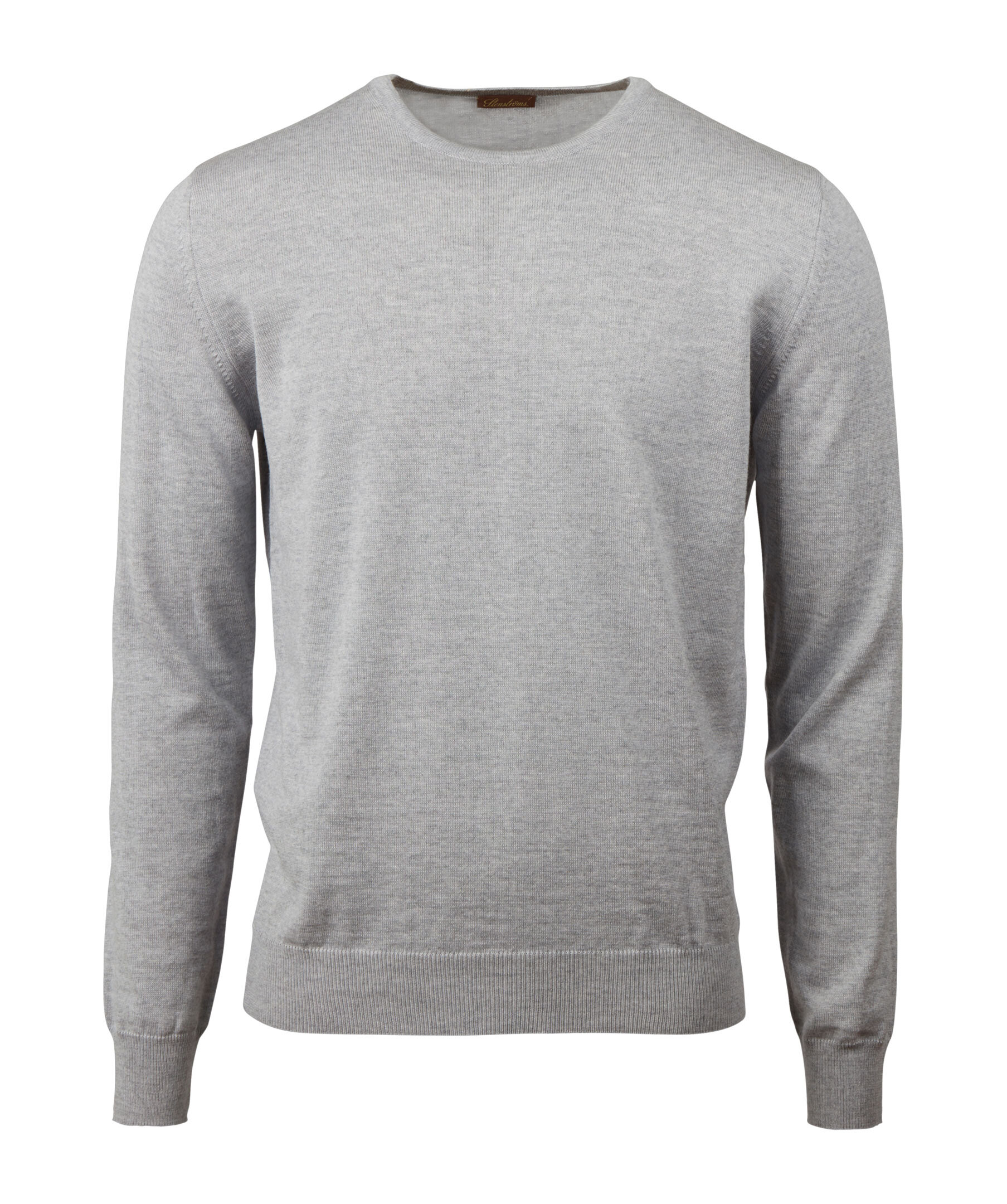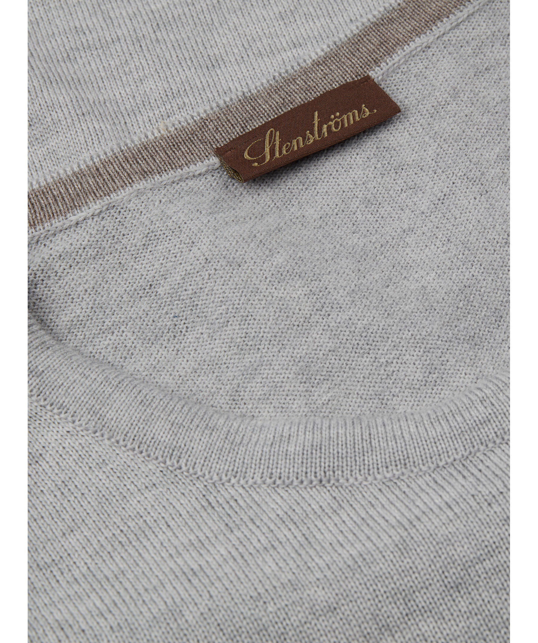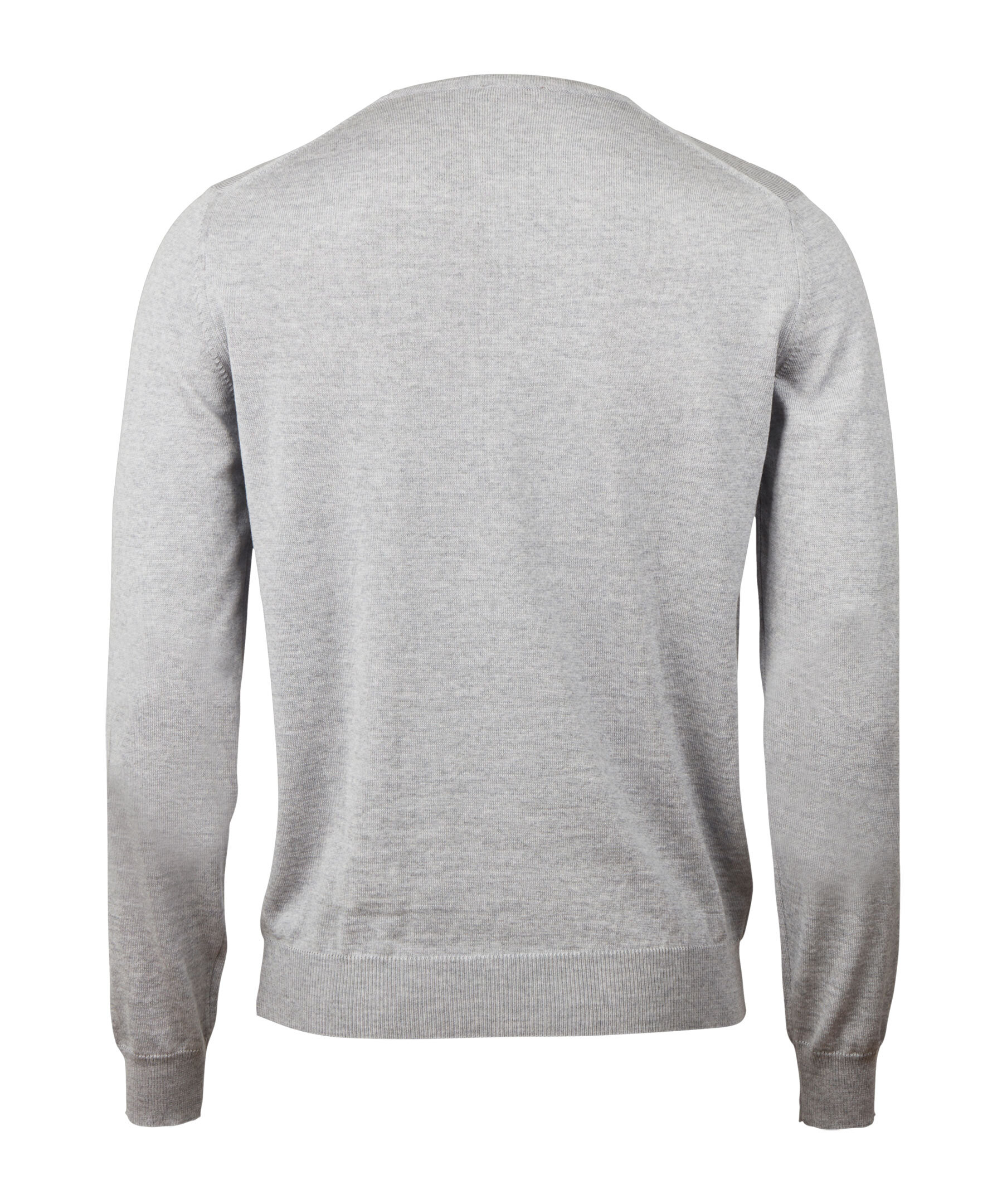 Denna rundhalsade tröja är tillverkad av merinoull och har ribbstickade detaljer vid krage, ärm- och plaggslut.