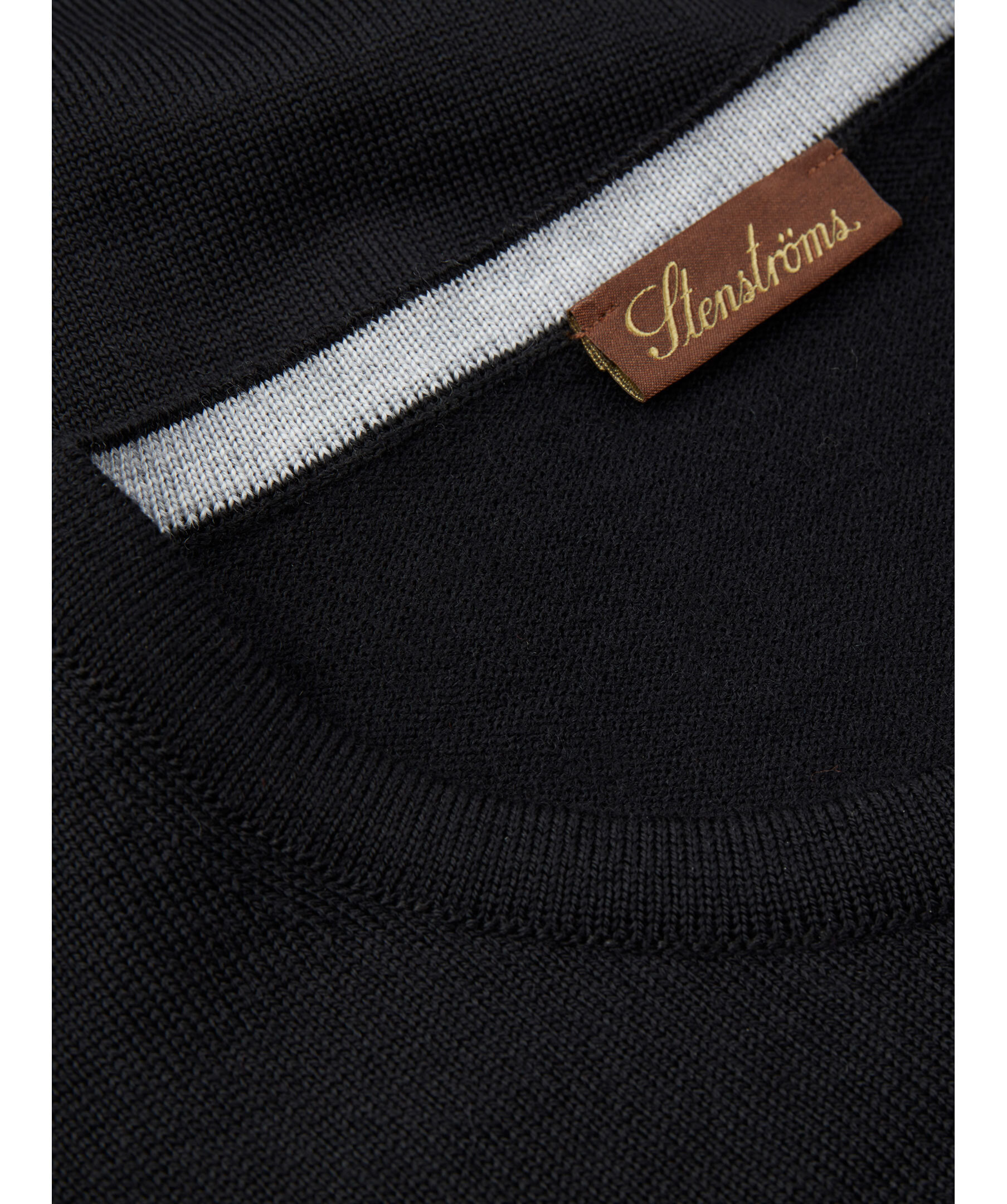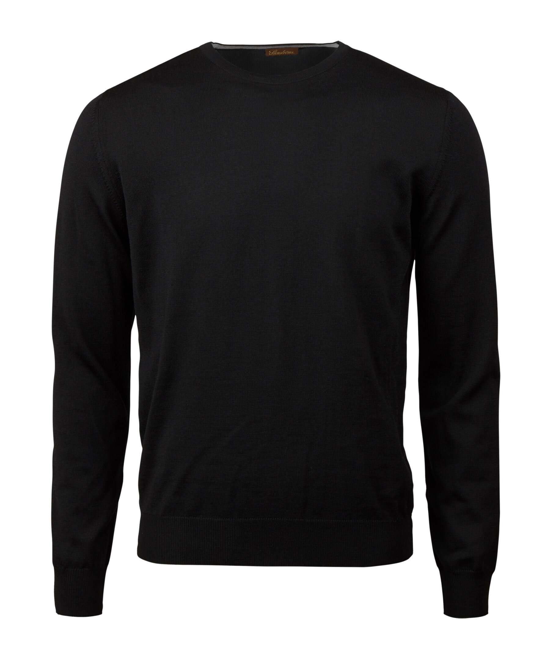 Denna rundhalsade tröja är tillverkad av merinoull och har ribbstickade detaljer vid krage, ärm- och plaggslut.