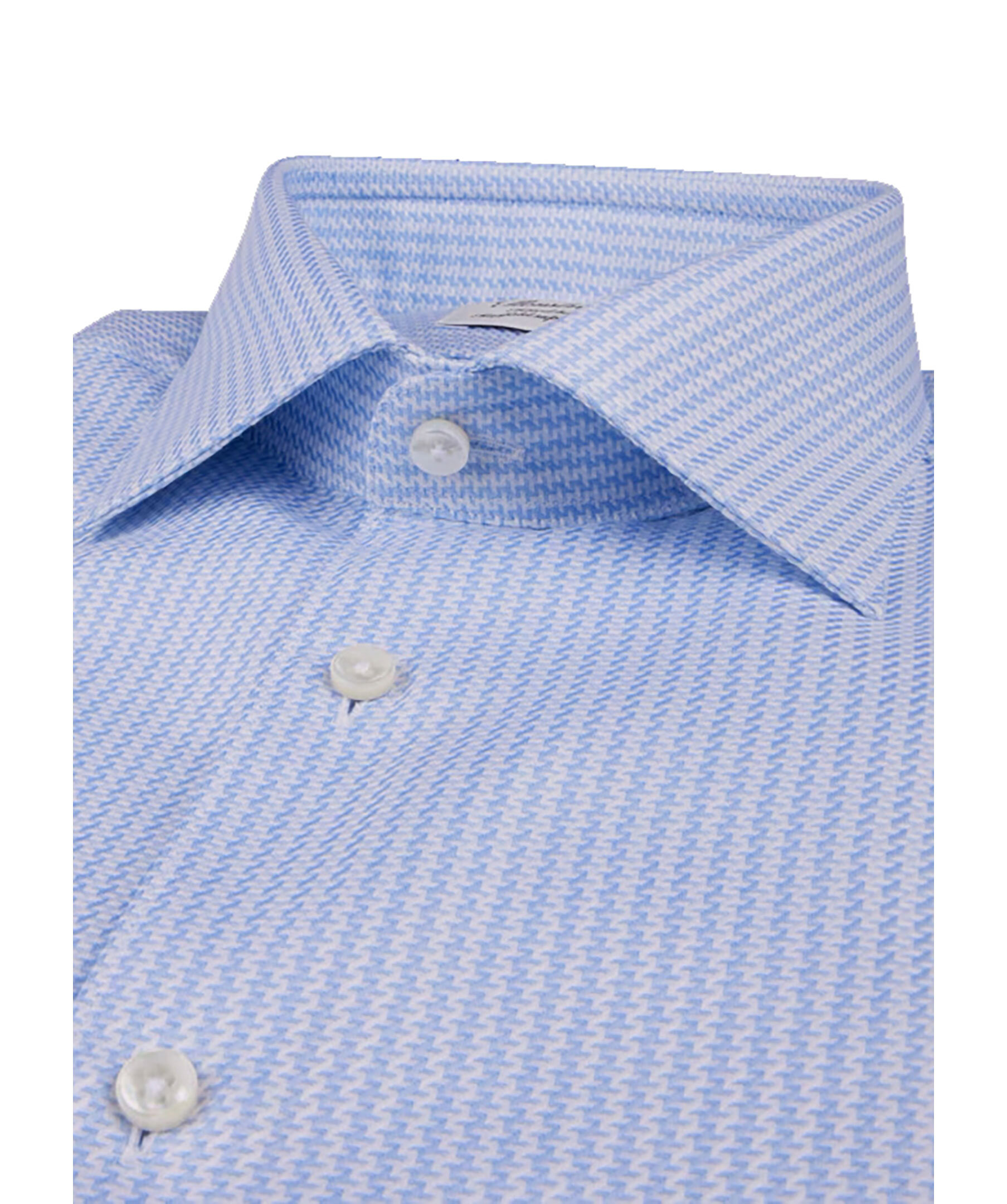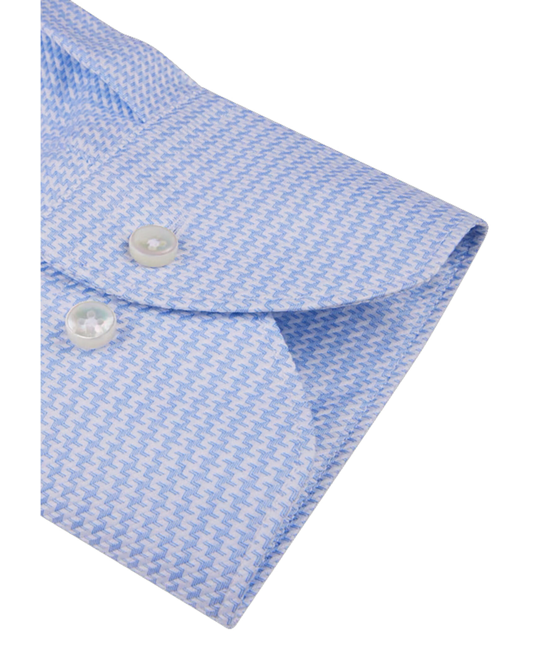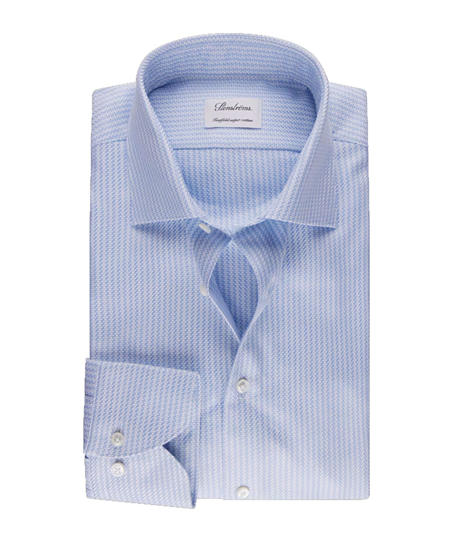 Ljusblå mönstrad twillskjorta från Stenströms. Skjortan har pärlemorknappar, enkla manschetter och en cut away krage. Tillverkad i 100% bomull. Fitted body passform.