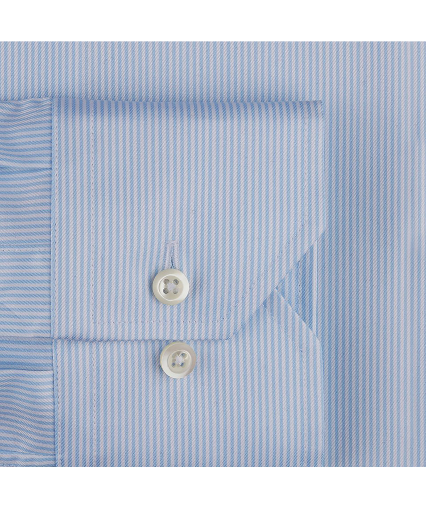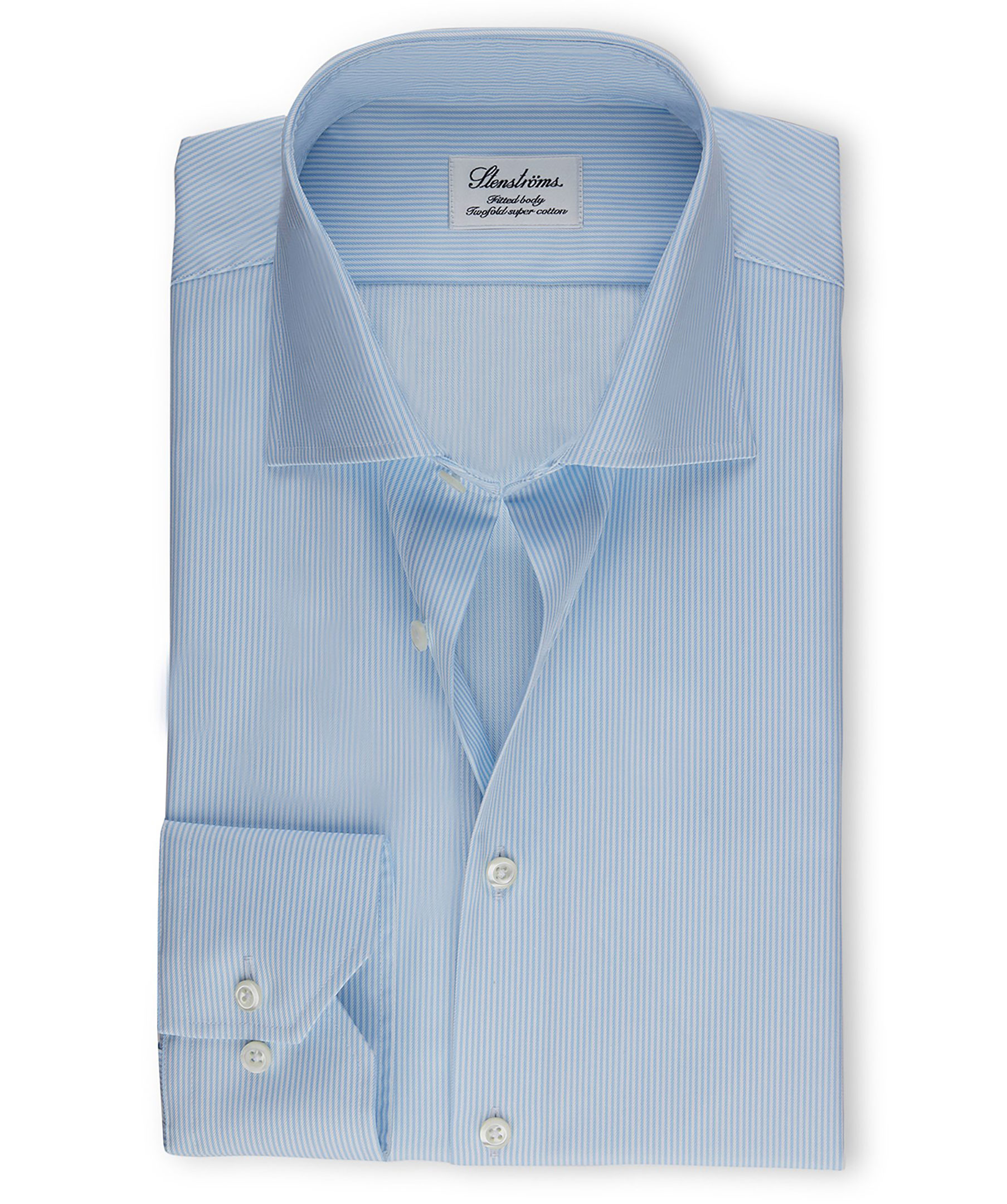 Ljusblå pinstriped skjorta från Stenströms. Fitted body, moderate cut away krage, pärlemorknappar, enkel manschett. Tillverkad i 100% bomull.