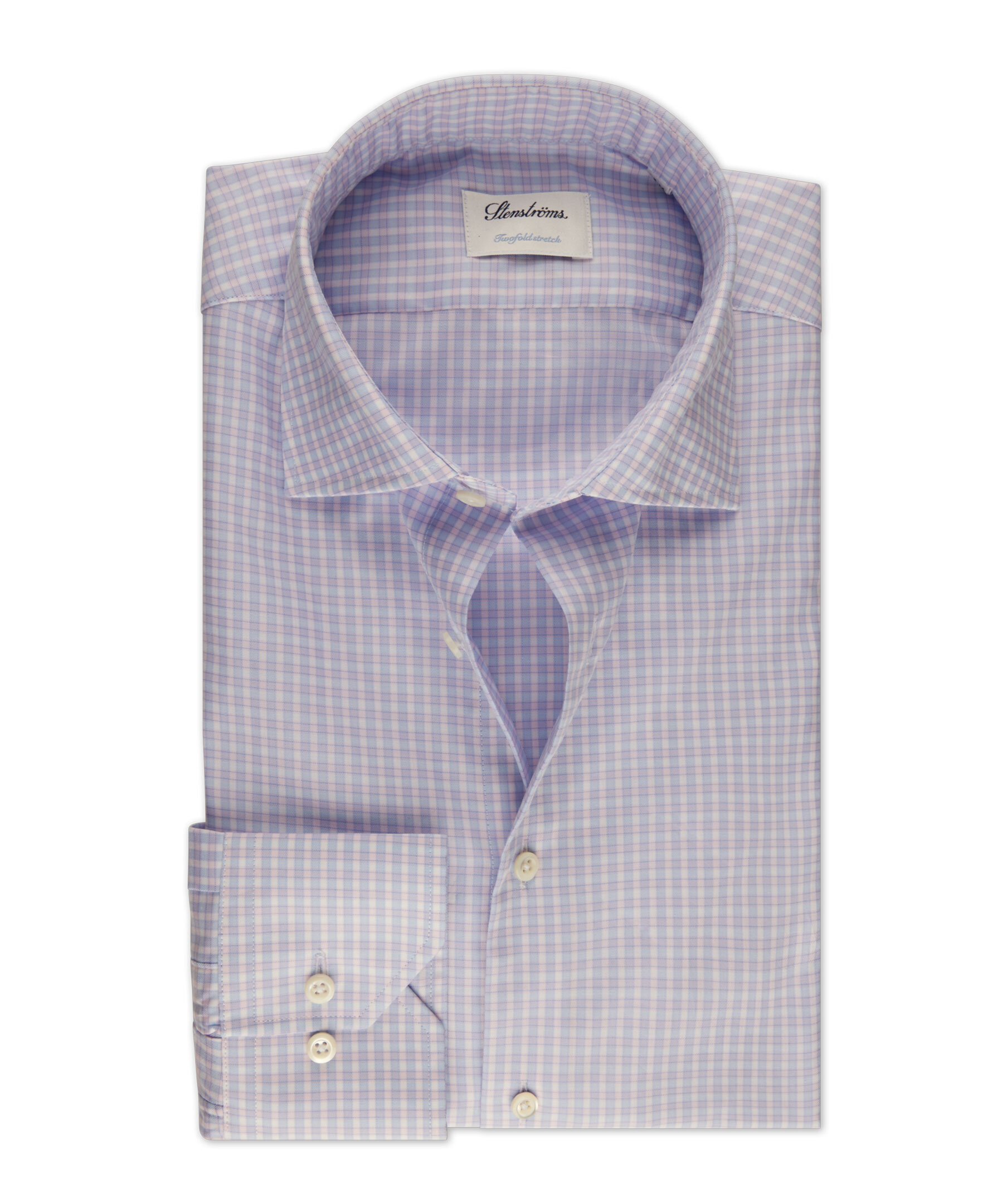 Denna rutiga skjorta är tillverkad av bomullsstretch och har pärlemorknappar, enkla manschetter och en cut away krage.