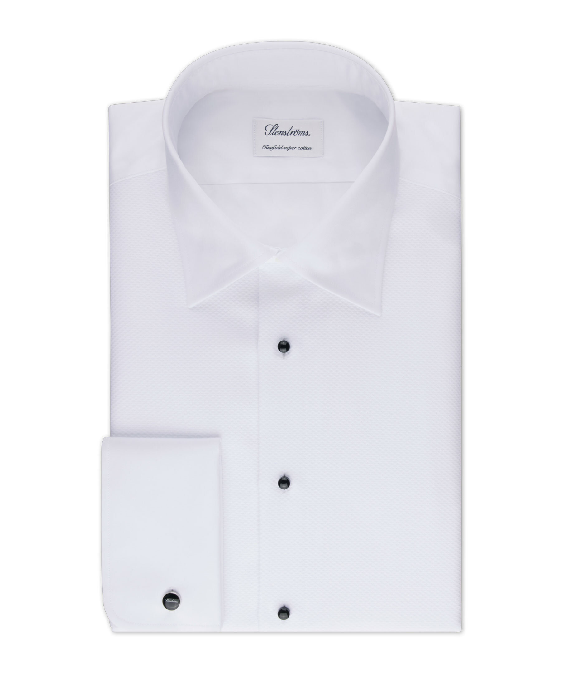 Denna smokingskjorta är tillverkad av twofold bomull med ett klassiskt bröstpiké. Skjortan har en Fitted Body passform och är detaljerad med bröstknappar, dubbla manschetter och en cut away krage.