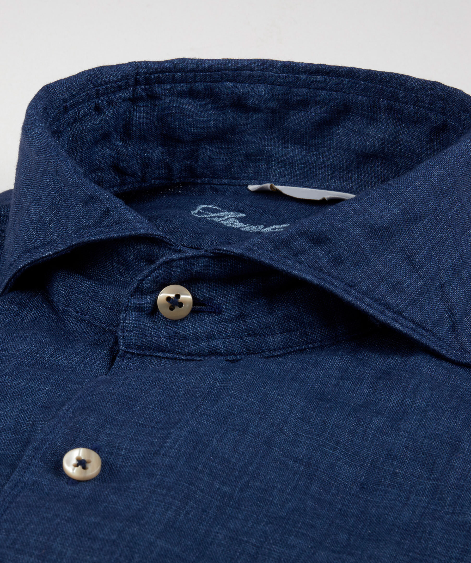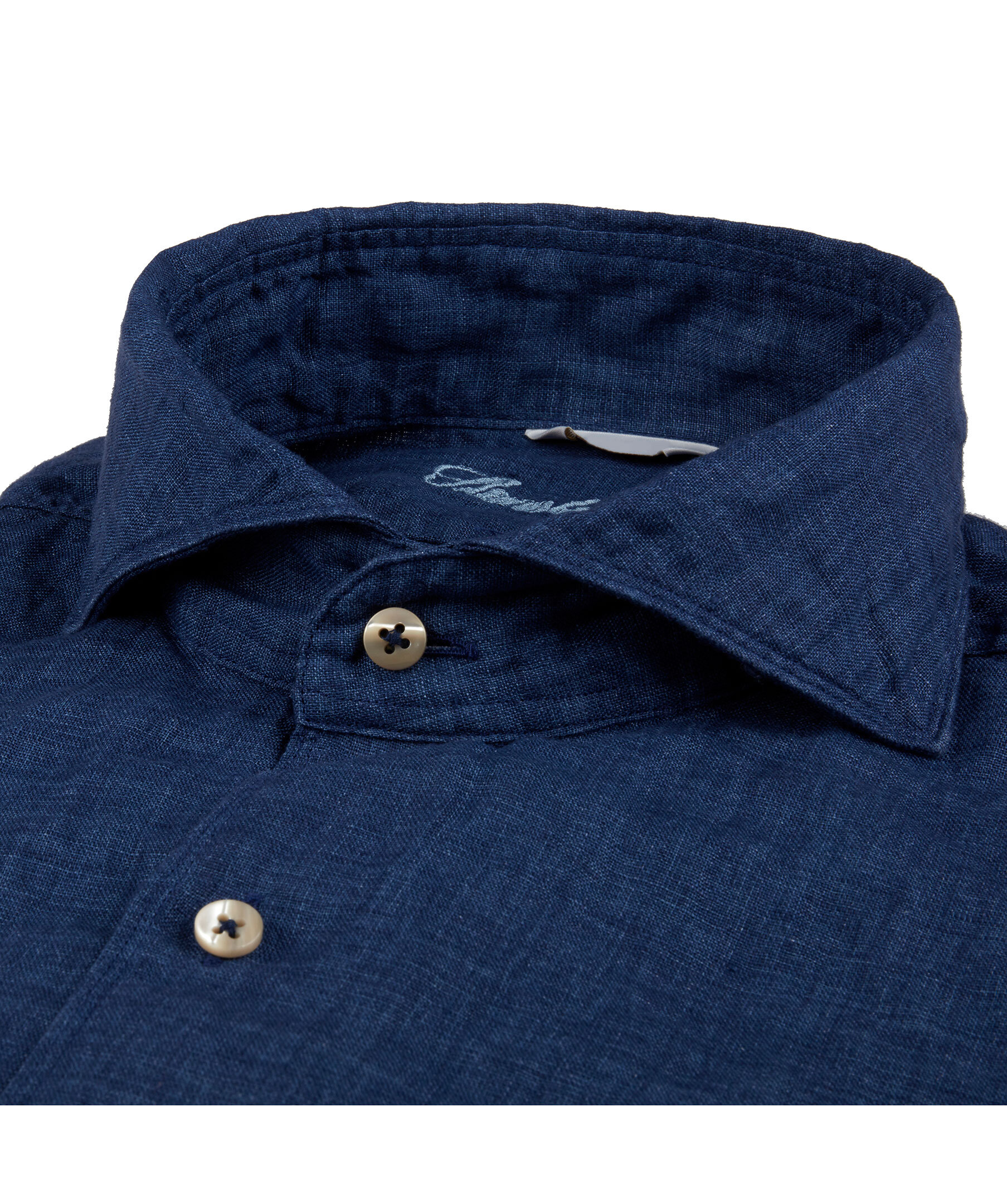 Linneskjortan är det idealiska plagget för varma sommardagar och kan bäras både på kontoret och på stranden. Den här skjortan är skuren i en något skräddarsydd passform och har en slät knappslå med beigea pärlemorknappar och enkla manschetter. Rulla upp ärmarna och bär skjortan till ett par shorts eller ett par jeans för en avslappnad stil.