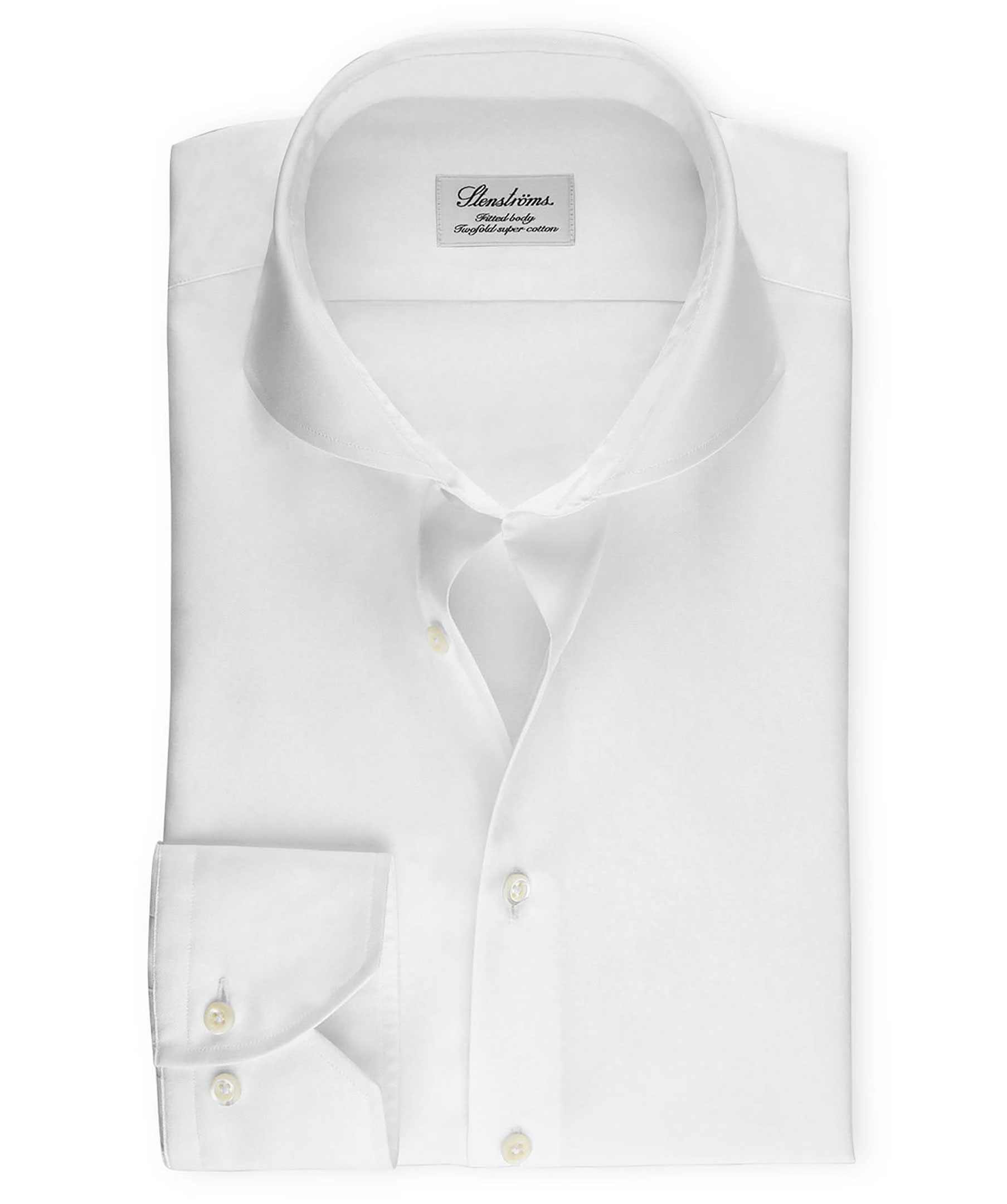 Vit skjorta från Stenströms. Fitted body, pärlemorknappar, cut away krage. Tillverkad i 100% bomull.